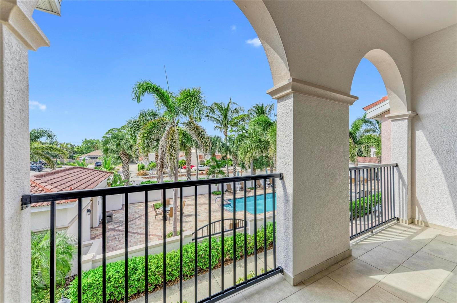 Imagine starting each morning with the soft sound of palm trees swaying and the Florida sunshine pouring through your impact-rated windows. Step out onto your private balcony overlooking the sparkling community pool and decide — will today begin with a stroll to historic Downtown Venice Avenue for coffee at a local café, or will you pour your own cup and take a short walk to the beach to feel the Gulf breeze? Welcome to Island Court of Venice, a rare and sought-after enclave offering the perfect blend of coastal charm and modern comfort. This stunning 2-bedroom, 2.5-bathroom townhome with a private elevator and two-car garage lives like a single-family home but with the ease of maintenance-free living. Inside, you’ll find a bright and open floor plan with modern finishes throughout — including impact-rated windows and sliders, high ceilings, hardwood flooring, and LED lighting. The chef’s kitchen features stainless steel appliances, quartz countertops, beautiful backsplash, and plenty of storage with generous cabinet space. The primary suite offers a spacious walk-in closet with built-ins, and a spa-like bathroom with a large walk-in shower, and double vanity. The guest suite includes its own ensuite bath and private porch, providing comfort and privacy for visiting friends or family. Additional highlights include a beautiful balcony overlooking the community pool, Impact windows and sliders, laundry room, and an oversized two-car garage. Built in 2015, this intimate community features just 26 residences, a heated courtyard pool, and beautifully landscaped walkways — all located just steps from Venice Avenue’s dining, shopping, farmers markets, and the Venice Art Center and Library. This is more than a home — it’s a lifestyle where every day feels like vacation.