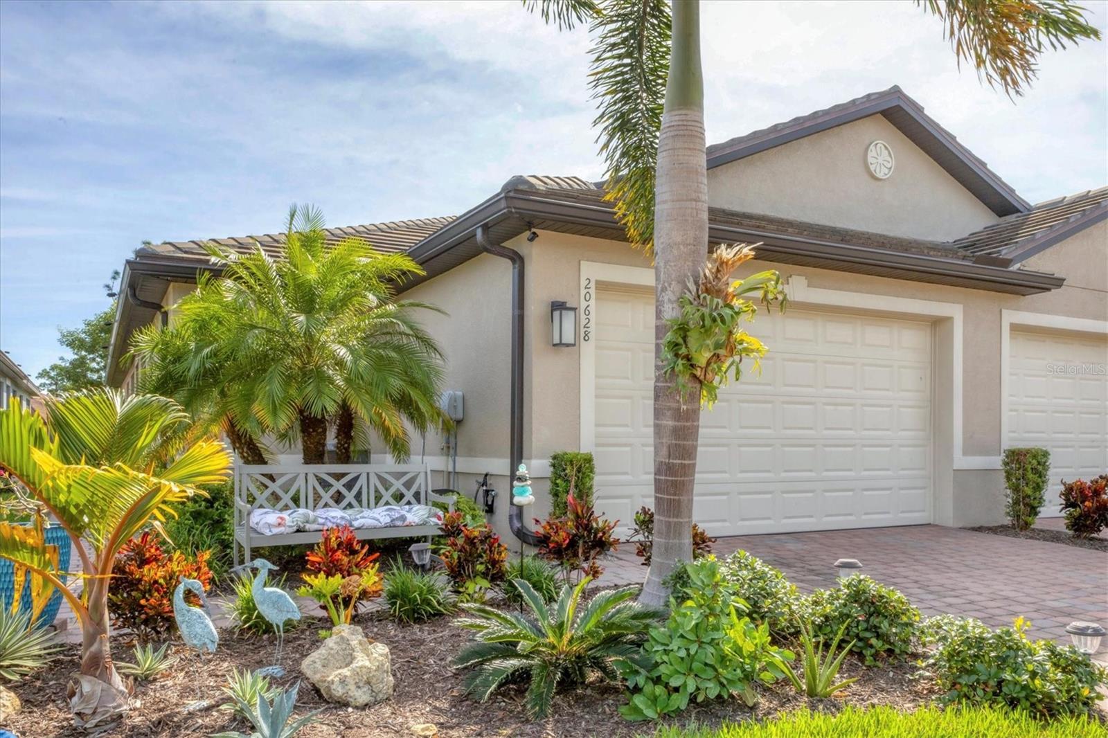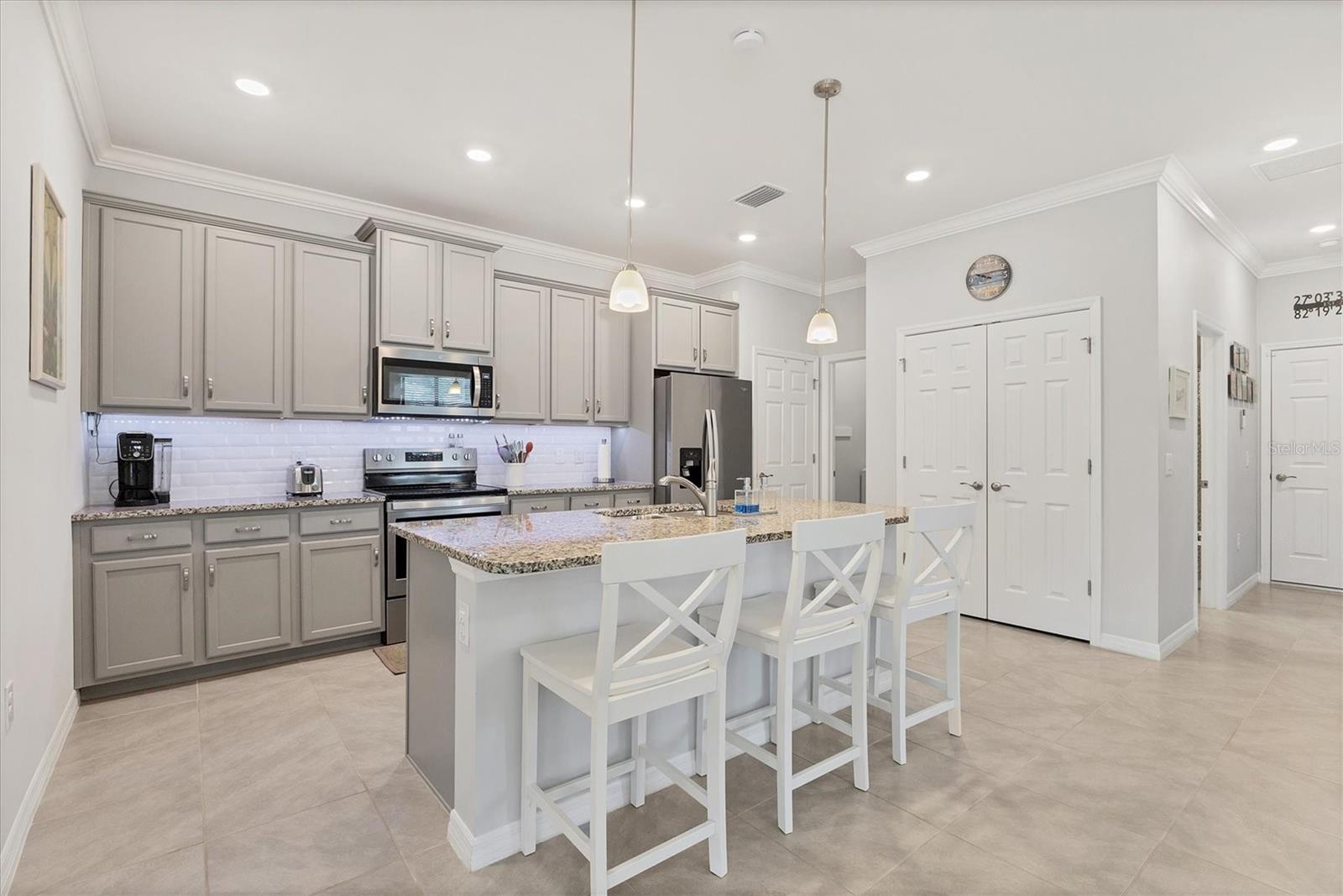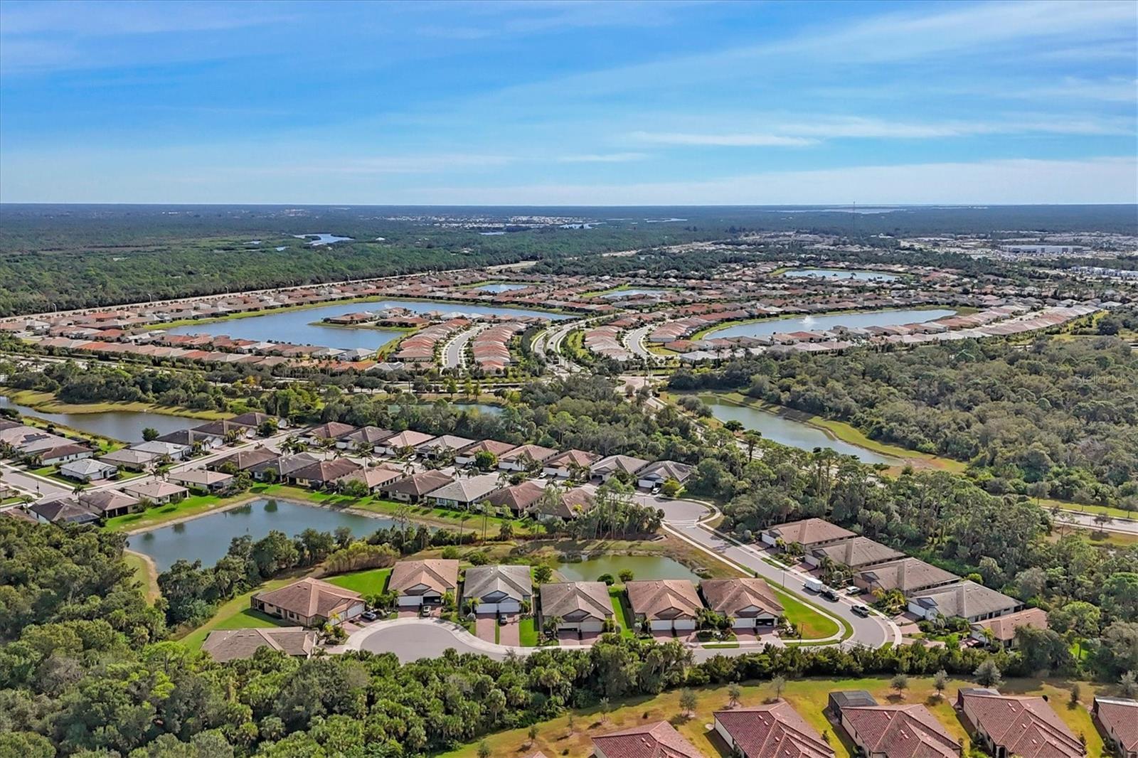 Waterfront Move-in Ready in the Heart of Wellen Park. This newer 2/2 +FLEX ROOM home offers a bright, spacious, and highly upgraded interior located on a cul de sac with a preserve front view!! Multiple upgrades include: tile roof, sealed pavers, crown molding, and smart light switches with dimmers. The kitchen includes stainless steel appliances, granite countertops, pantry, subway tile backsplash, soft-close cabinetry, and under-cabinet lighting—perfect for everyday living and entertaining. An open great room with dedicated dining space is filled with natural light and opens to a private enclosed lanai overlooking a peaceful water view. The primary bedroom features his-and-hers closets, dual sinks and a large walk-in shower. The guest bedroom comfortably fits two twin beds or easily accommodates a queen. Outside, the home offers an additional paver area ideal for grilling plus solar walkway lights. Additional upgrades include four upgraded ceiling fans with lighting, a SimpliSafe security system, smart lock and video doorbell, epoxy-coated garage floor, garage overhead storage, hurricane shutters, and the convenience of a newer home. Located in a gated Wellen Park community, residents enjoy a heated pool, clubhouse, fitness center shuffleboard and a secure mailbox—all with low HOA fees and CDD included within the property taxes. A short distance to CoolToday Park, shopping, dining, medical facilities, and just a short drive to the Gulf Coast beaches. Move-in ready, highly upgraded, and ideally located—this home offers the best of Florida living.