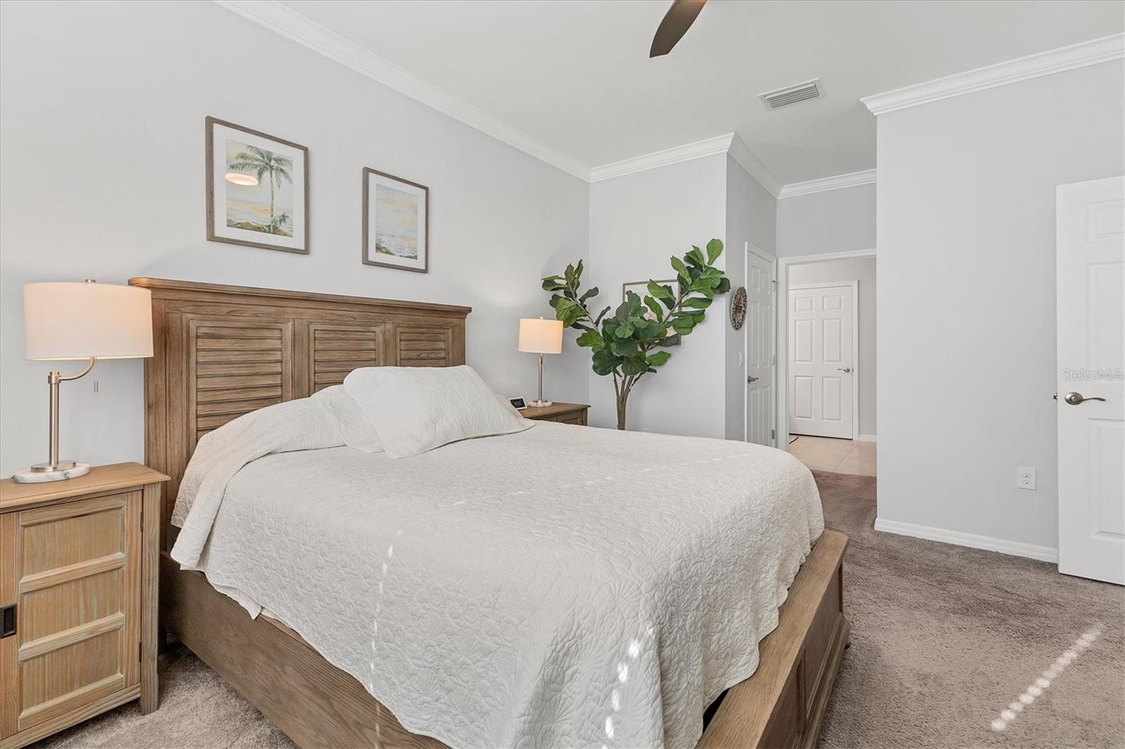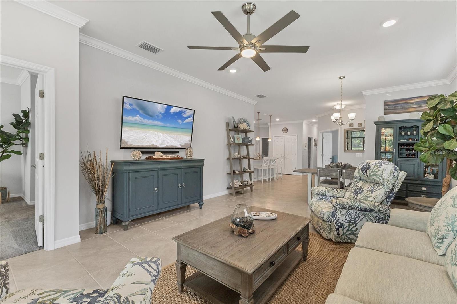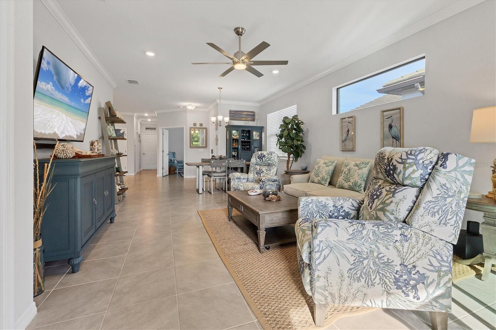 Waterfront Move-in Ready in the Heart of Wellen Park. This newer 2/2 +FLEX ROOM home offers a bright, spacious, and highly upgraded interior located on a cul de sac with a preserve front view!! Multiple upgrades include: tile roof, sealed pavers, crown molding, and smart light switches with dimmers. The kitchen includes stainless steel appliances, granite countertops, pantry, subway tile backsplash, soft-close cabinetry, and under-cabinet lighting—perfect for everyday living and entertaining. An open great room with dedicated dining space is filled with natural light and opens to a private enclosed lanai overlooking a peaceful water view. The primary bedroom features his-and-hers closets, dual sinks and a large walk-in shower. The guest bedroom comfortably fits two twin beds or easily accommodates a queen. Outside, the home offers an additional paver area ideal for grilling plus solar walkway lights. Additional upgrades include four upgraded ceiling fans with lighting, a SimpliSafe security system, smart lock and video doorbell, epoxy-coated garage floor, garage overhead storage, hurricane shutters, and the convenience of a newer home. Located in a gated Wellen Park community, residents enjoy a heated pool, clubhouse, fitness center shuffleboard and a secure mailbox—all with low HOA fees and CDD included within the property taxes. A short distance to CoolToday Park, shopping, dining, medical facilities, and just a short drive to the Gulf Coast beaches. Move-in ready, highly upgraded, and ideally located—this home offers the best of Florida living.