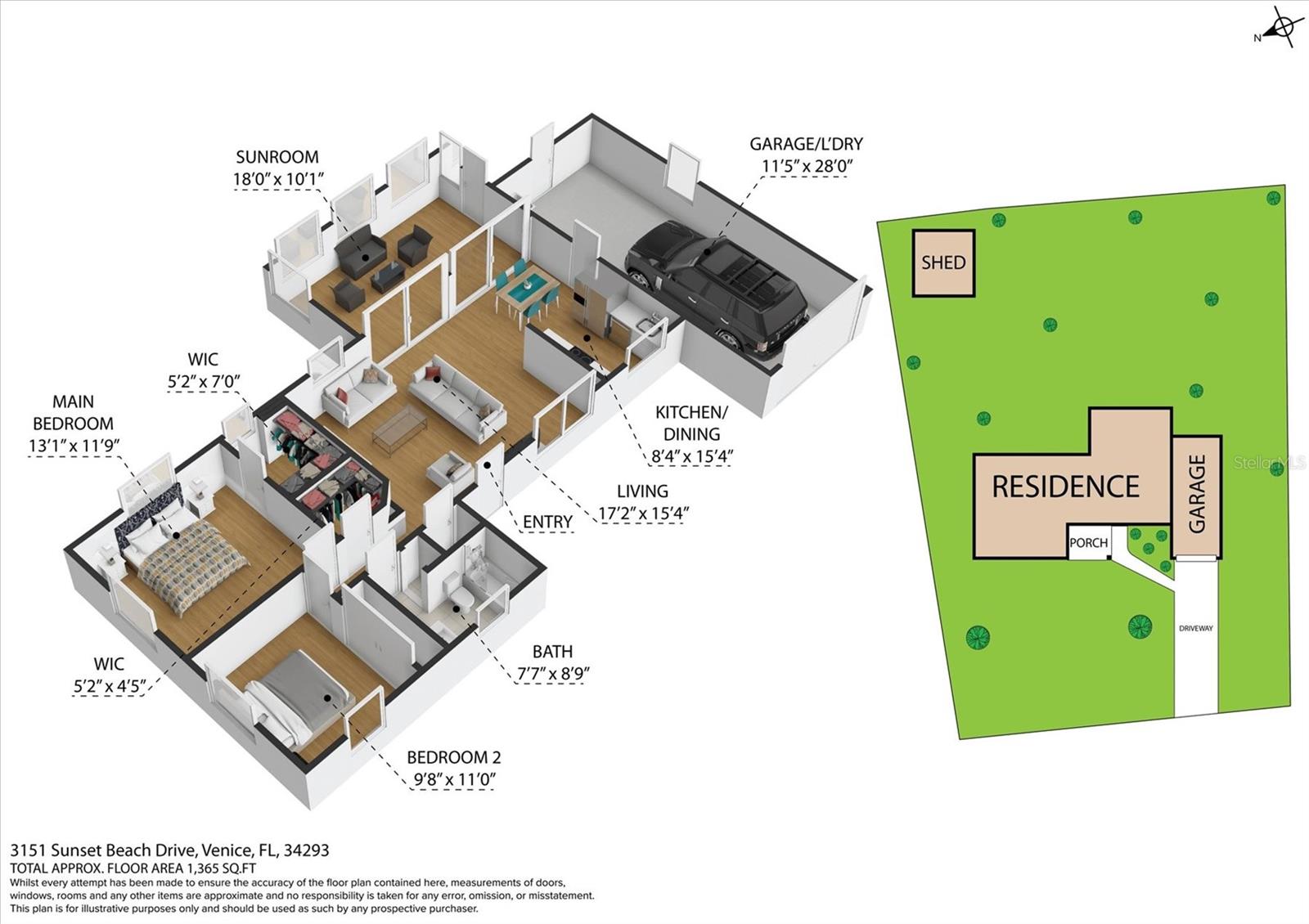 Welcome to your charming Florida retreat! This beautifully updated home blends character with modern comfort. The roof is just 7 years old, and the home features an all-new HVAC system and wiring for reliable performance. Inside, enjoy fresh updates across the board, including new plumbing supply lines and a new water heater, plus a new water filtration system. The kitchen shines with new tile and cabinets, while the bathrooms also showcase refreshed finishes. The garage benefits from a new garage door and an epoxy floor, and newer lighting and electrical devices illuminate the space throughout the home. The Florida sunroom offers a serene spot to unwind, sip your morning coffee, or enjoy indoor–outdoor living year-round. Outside, the expansive yard invites you to create your own private oasis. Centrally located, you’re just minutes from shops, dining, Caspersen Beach, and Shamrock Park & Nature Center, delivering the quintessential Florida lifestyle. Whether you’re seeking a full-time residence, a seasonal escape, or a smart investment, this updated Florida charmer checks all the boxes.