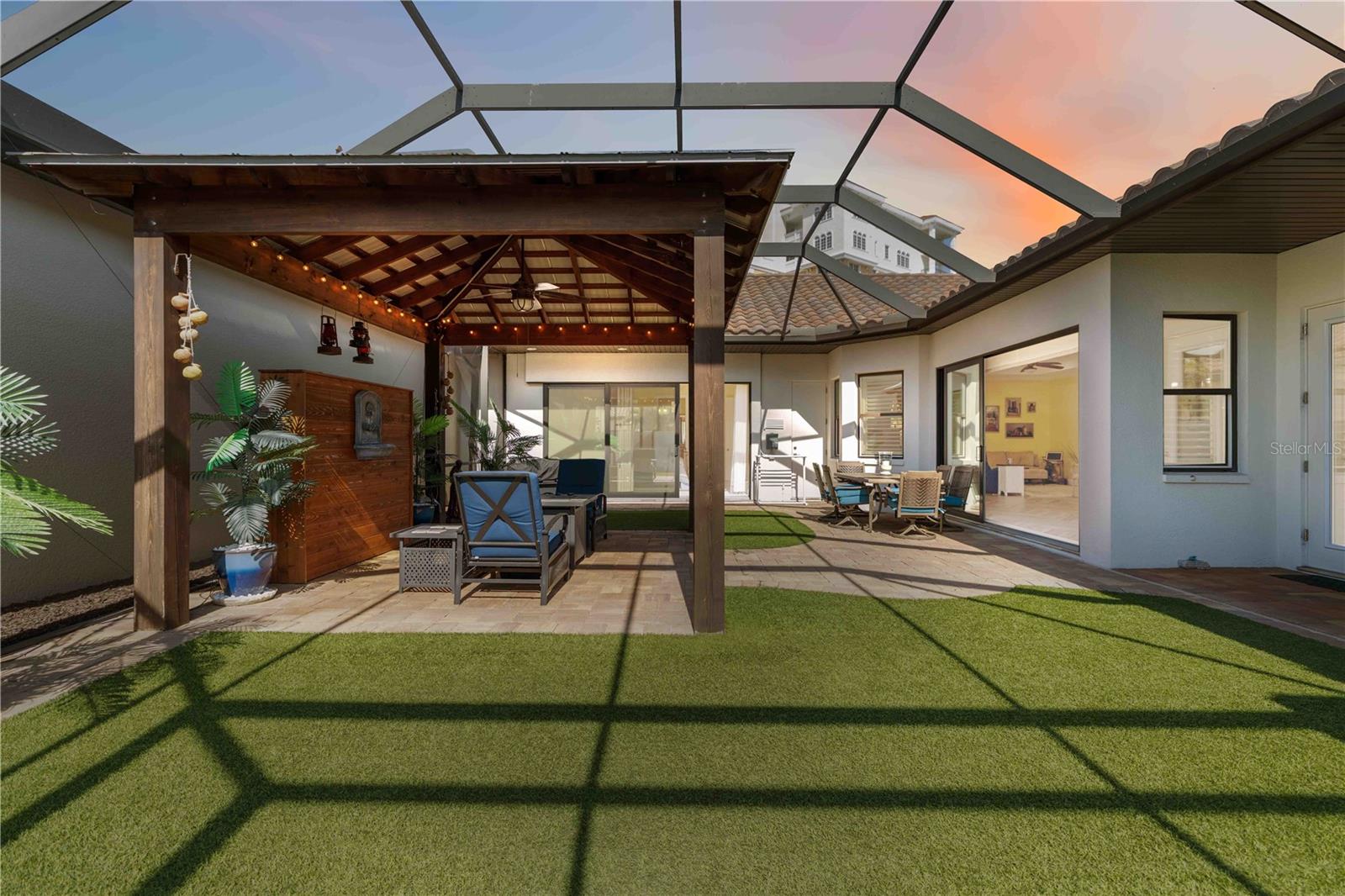 Located on Venice Island at 146 E. Tampa Avenue, this exceptional residence delivers the perfect blend of coastal convenience and refined living just moments from downtown Venice, Venice Avenue, the Intracoastal Waterway, and the Gulf beaches. Set within Tra Ponti Villaggio—a boutique, deed-restricted, fee-simple community of only 19 courtyard homes and four multilevel townhomes—this property features the desirable Acerra II floor plan, thoughtfully designed to maximize privacy, natural light, and seamless indoor-outdoor living. Built with quality at every turn, the home includes full hurricane-impact windows and sliding glass doors, custom wood cabinetry, granite countertops, and a luxury appliance package with natural gas service available. A two-car garage and X-flood-zone location offer additional peace of mind. The backyard is a true highlight, offering a private, resort-style setting under the screened enclosure. A stunning covered pavilion anchors the space, complete with warm wood accents, decorative lighting, and room for lounging or dining. The surrounding turf courtyard keeps the area low-maintenance and usable year-round, while wide sliding glass doors connect the outdoor retreat to the interior living areas—perfect for entertaining, relaxing, or enjoying the island breeze. The unmatched convenience of this Venice Island location places you minutes from Venice Beach, Caspersen Beach, and Brohard Paw Park—the region’s only dog-friendly beach. Outdoor enthusiasts will appreciate the adjacent Venetian Waterway Trail, Legacy Trail access, and nearby nature parks such as Centennial Park, Graser Park, Sleeping Turtles Preserve, and Shamrock Park & Nature Center. Dog lovers enjoy close proximity to Paw Park and Woodmere Park’s dog amenities. Everyday essentials are within easy reach, including Publix, Venice Farmers Market, and specialty shops throughout downtown Venice. Venice Regional Medical Center and Sarasota Memorial Hospital Venice Campus provide trusted medical services. Public transportation options include SCAT and downtown trolley routes. Major roads such as Tamiami Trail, Laurel Road, and I-75 connect you quickly to Sarasota, Nokomis, Osprey, Englewood, North Port, and beyond. For longer trips, choose from Venice Municipal Airport for private aviation or Sarasota-Bradenton International Airport for commercial flights. Blending island charm, walkability, and a refined courtyard-home lifestyle, this property offers a rare opportunity to own on Venice Island in a highly desirable community.