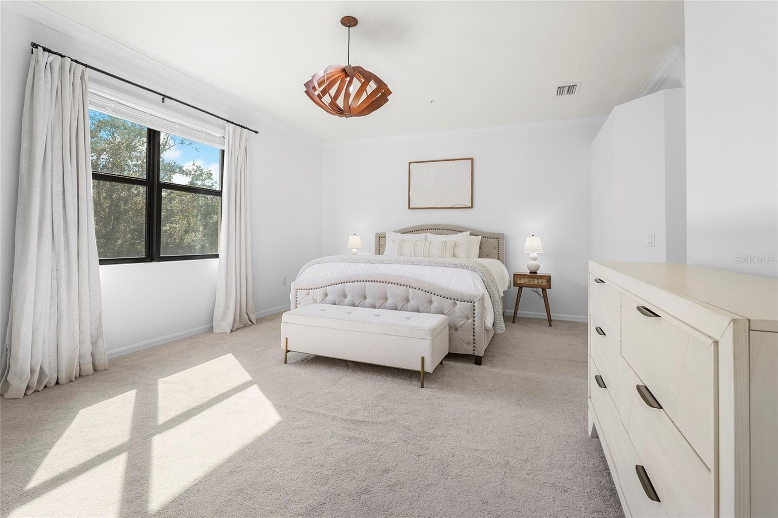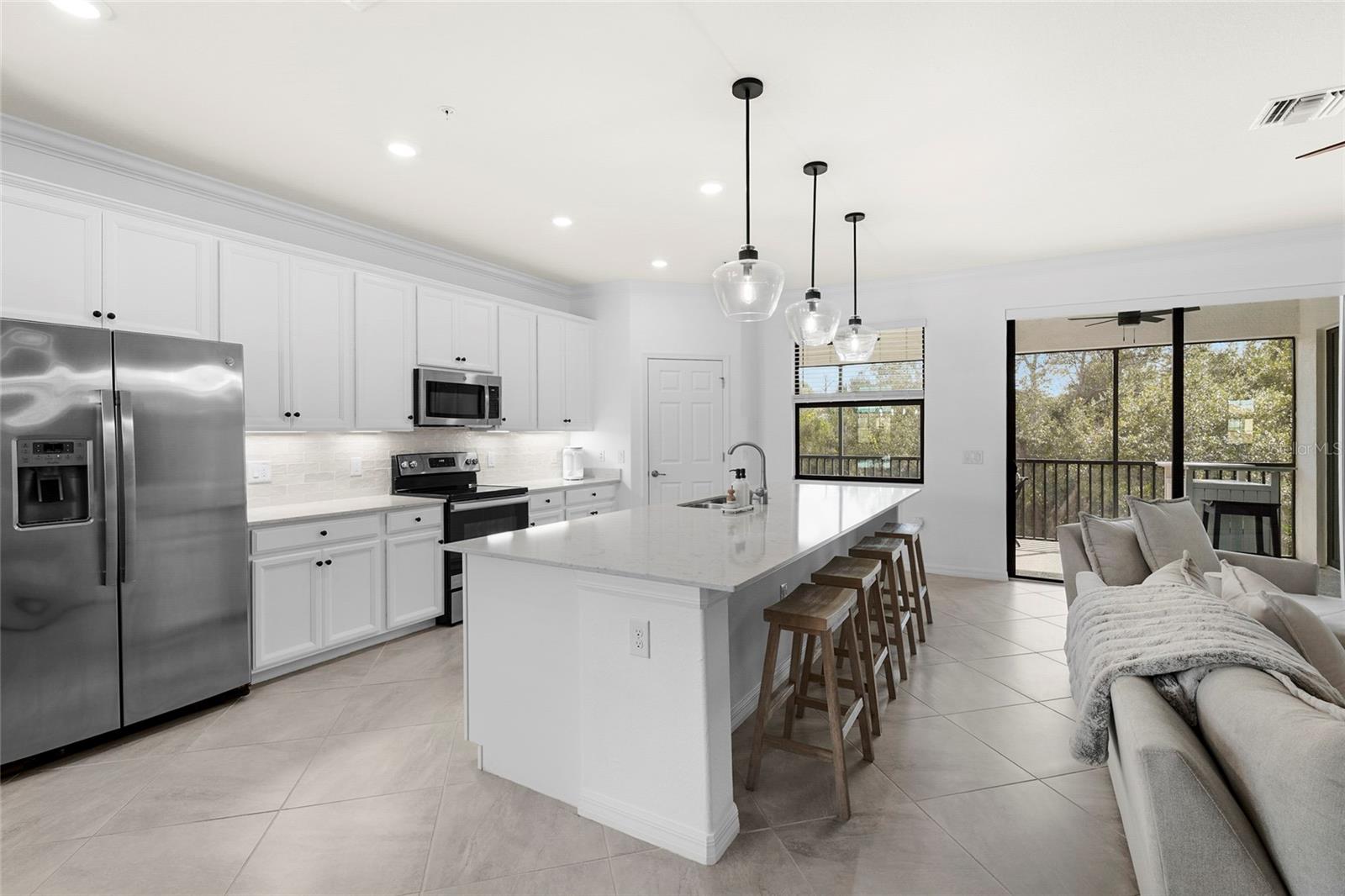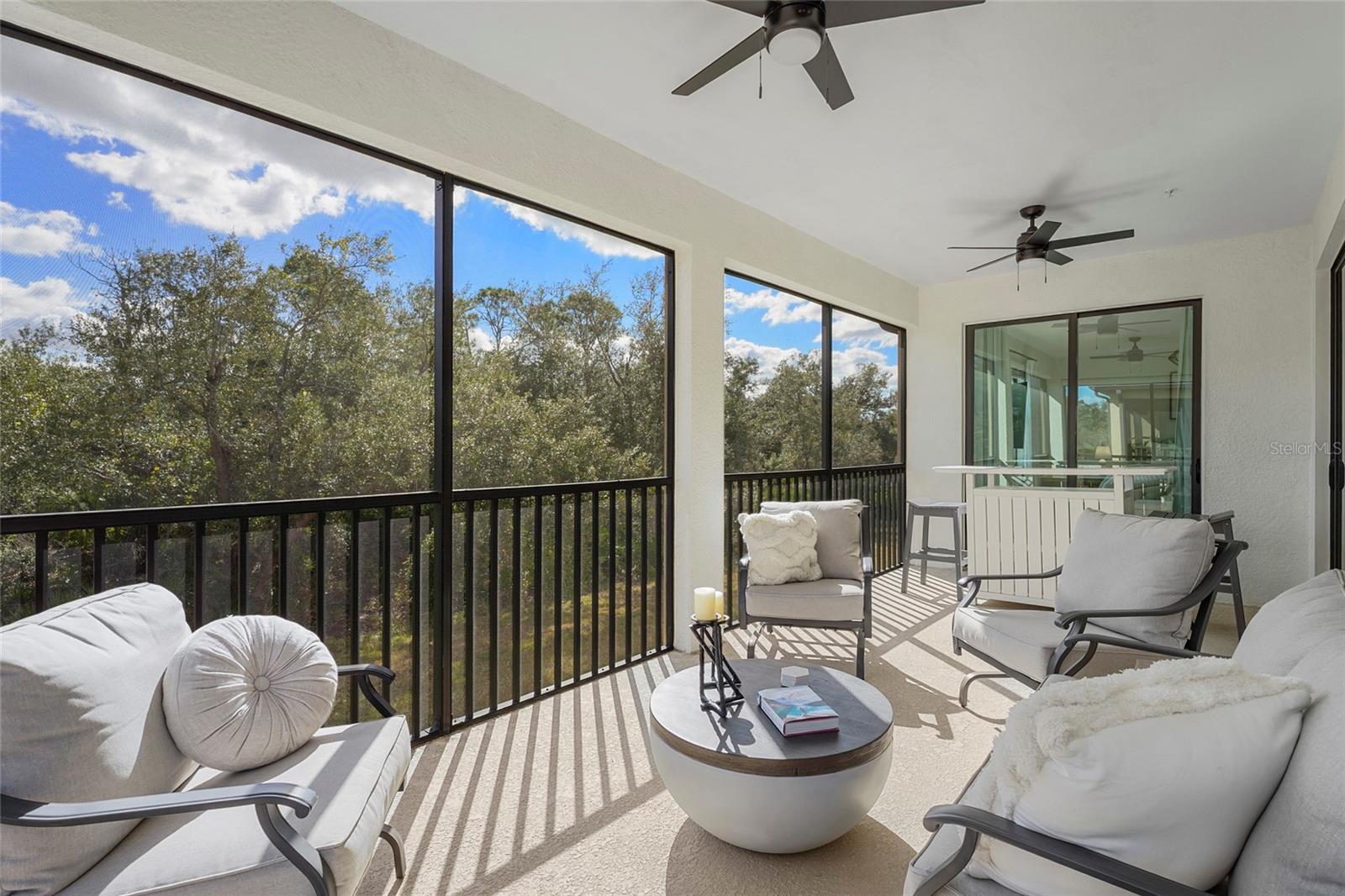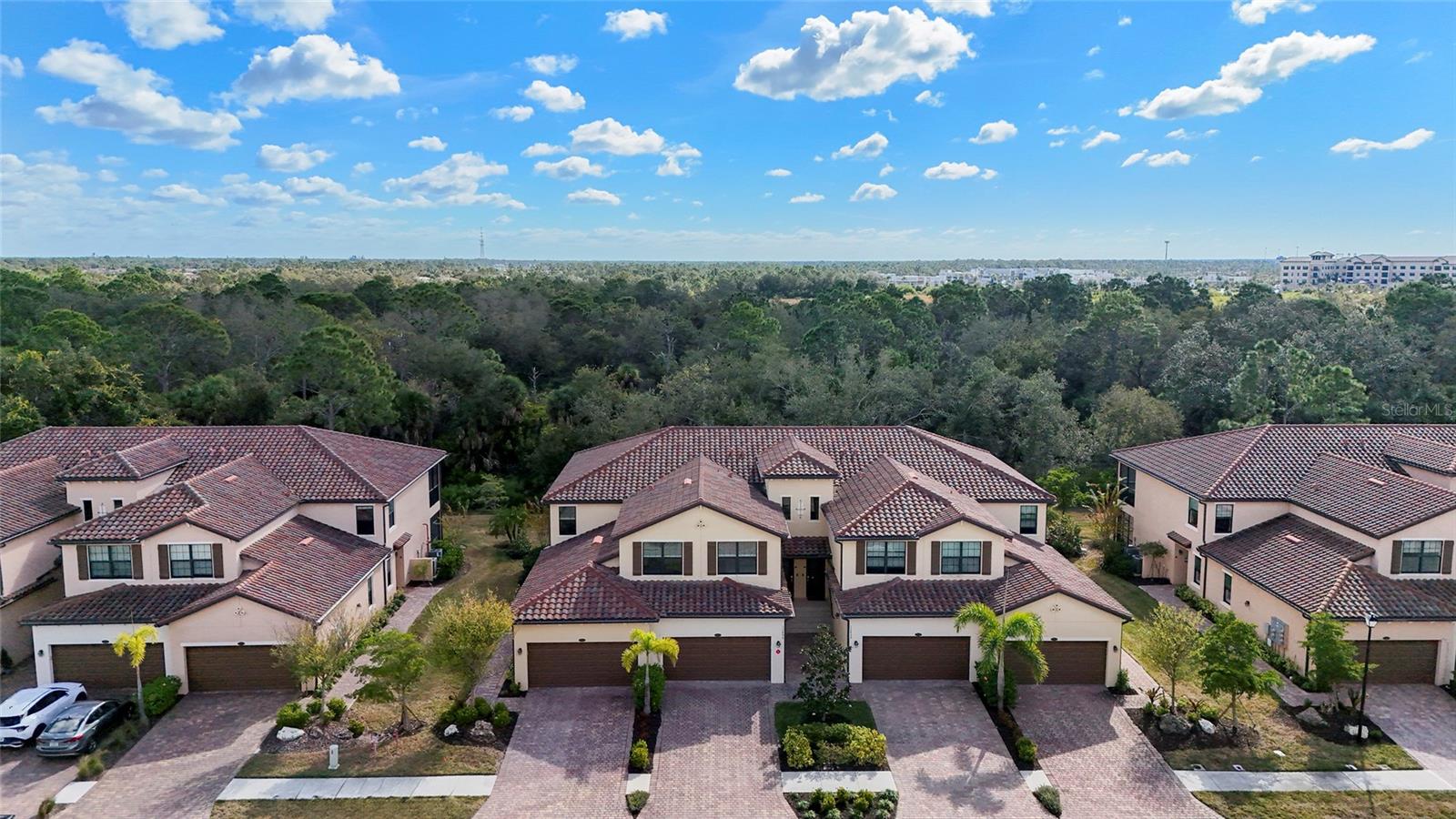 Welcome to refined Florida living in Gran Paradiso, a 24 hour guard gated community inspired by Mediterranean elegance and elevated by resort-style amenities. This beautifully maintained second-floor coach home offers three bedrooms and two bathrooms, blending comfort, style, and low-maintenance luxury. Recently repainted in a soft, neutral palette, the residence is move-in ready and provides the perfect canvas for your personal touch. The thoughtfully designed open-concept layout is ideal for both everyday living and entertaining. The kitchen is an entertainer’s dream, featuring granite countertops, a spacious center island, custom backsplash, and cabinetry with abundant storage. Hurricane-impact windows and doors throughout the home provide peace of mind and enhanced energy efficiency. The primary suite serves as a private retreat with sliding glass doors leading to a private screened lanai overlooking a tranquil preserve, two walk-in closets, and a spa-inspired en-suite bathroom with dual vanities and a seamless glass walk-in shower. A split floor plan enhances privacy, with two spacious guest bedrooms located on the opposite side of the home—each offering walk-in closets and generous storage. A full-size laundry room is thoughtfully designed with additional cabinetry for organization, while under-stair storage provides added convenience and functionality rarely found in coach homes. Additional highlights include a two-car garage with dedicated golf cart space, perfect for embracing the community’s resort-style lifestyle. Gran Paradiso spans over 1,000 acres and offers an impressive clubhouse, resort-style pool, fitness center, yoga studio, sauna, tennis and pickleball courts, scenic preserves, and a full-time activity coordinator who curates a vibrant social calendar. This exceptional residence presents a rare opportunity to enjoy elegant, carefree living within one of Wellen Park’s most desirable gated communities.