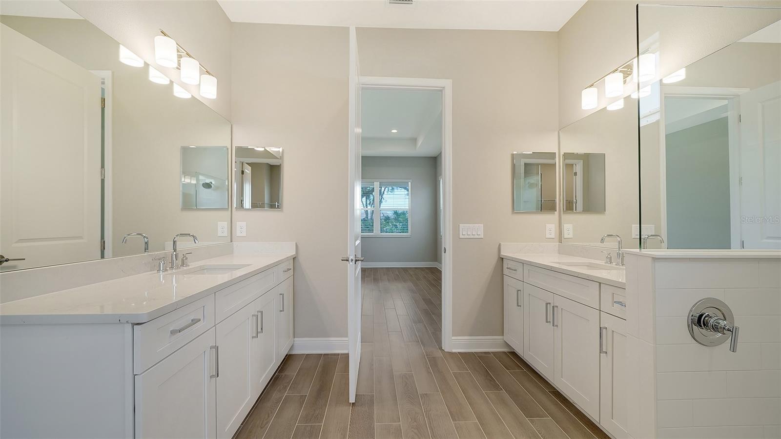 Welcome to the Captiva, an elegant, move-in-ready home designed for comfortable everyday living and entertaining. A welcoming 90-degree sliding glass door expands the spacious great room and opens to serene views of the adjacent conservation area. Wood-look tile flooring runs throughout the main living areas, complemented by a bright white kitchen featuring quartz countertops, which are also found in the bathrooms. The thoughtfully designed floor plan provides privacy for all occupants, including a guest suite conveniently located within the bedroom wing, creating an ideal retreat for visitors. A versatile club room enhances the layout, offering flexibility as a den, office, or game room. Grand Palm is a resort-style, amenity-rich, natural gas community conveniently located near Downtown Venice, Gulf Coast beaches, Downtown Wellen Park, and offers easy access to I-75.