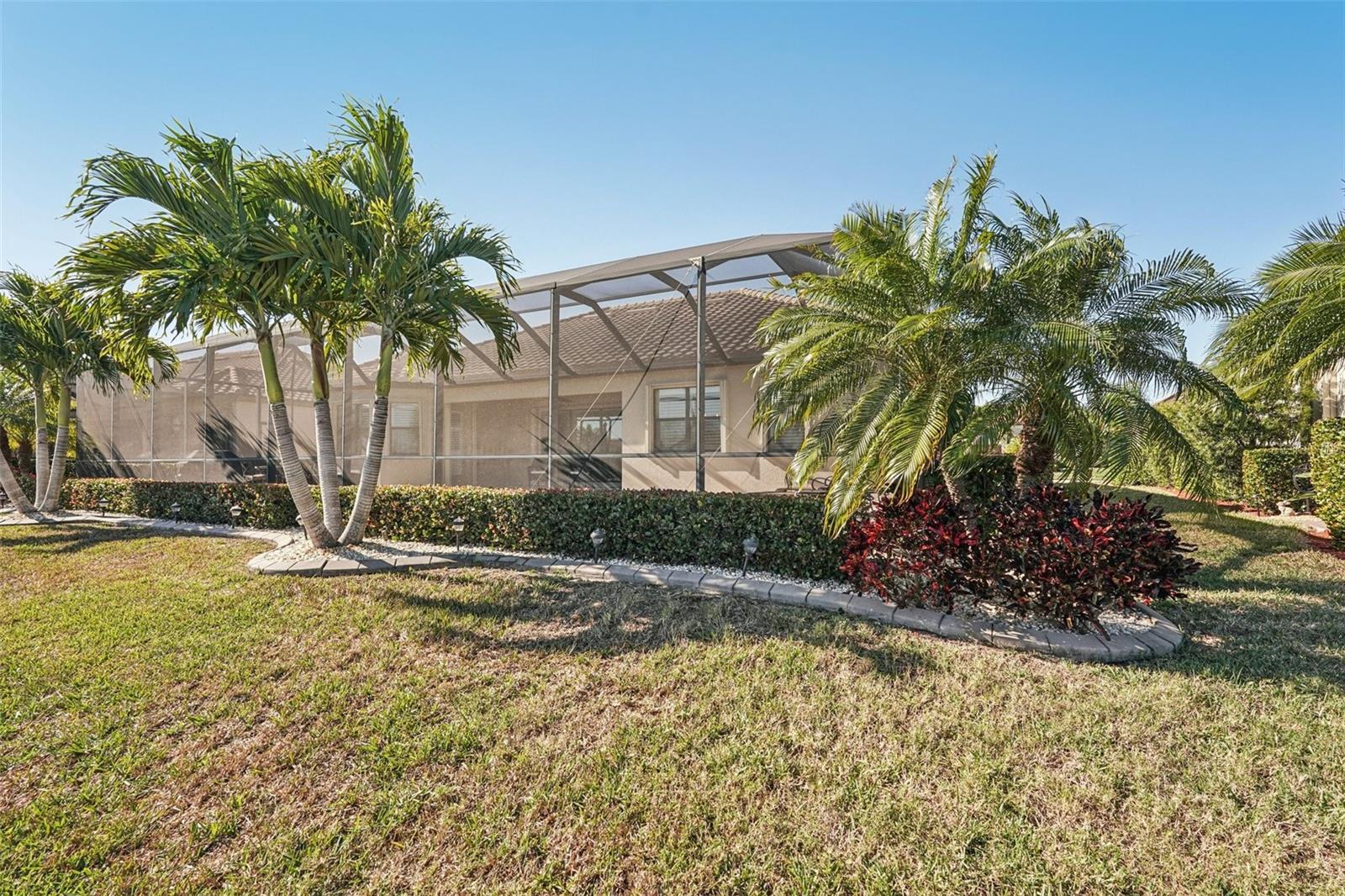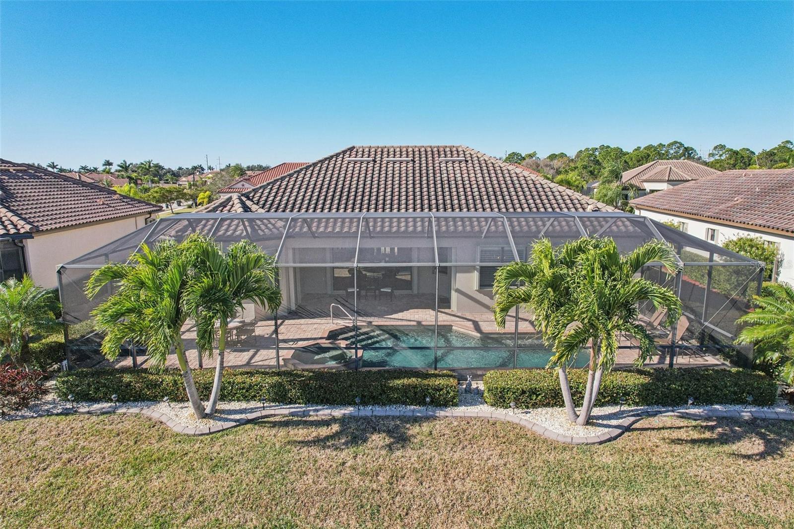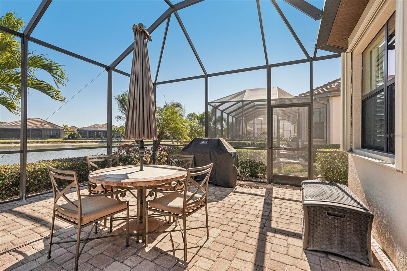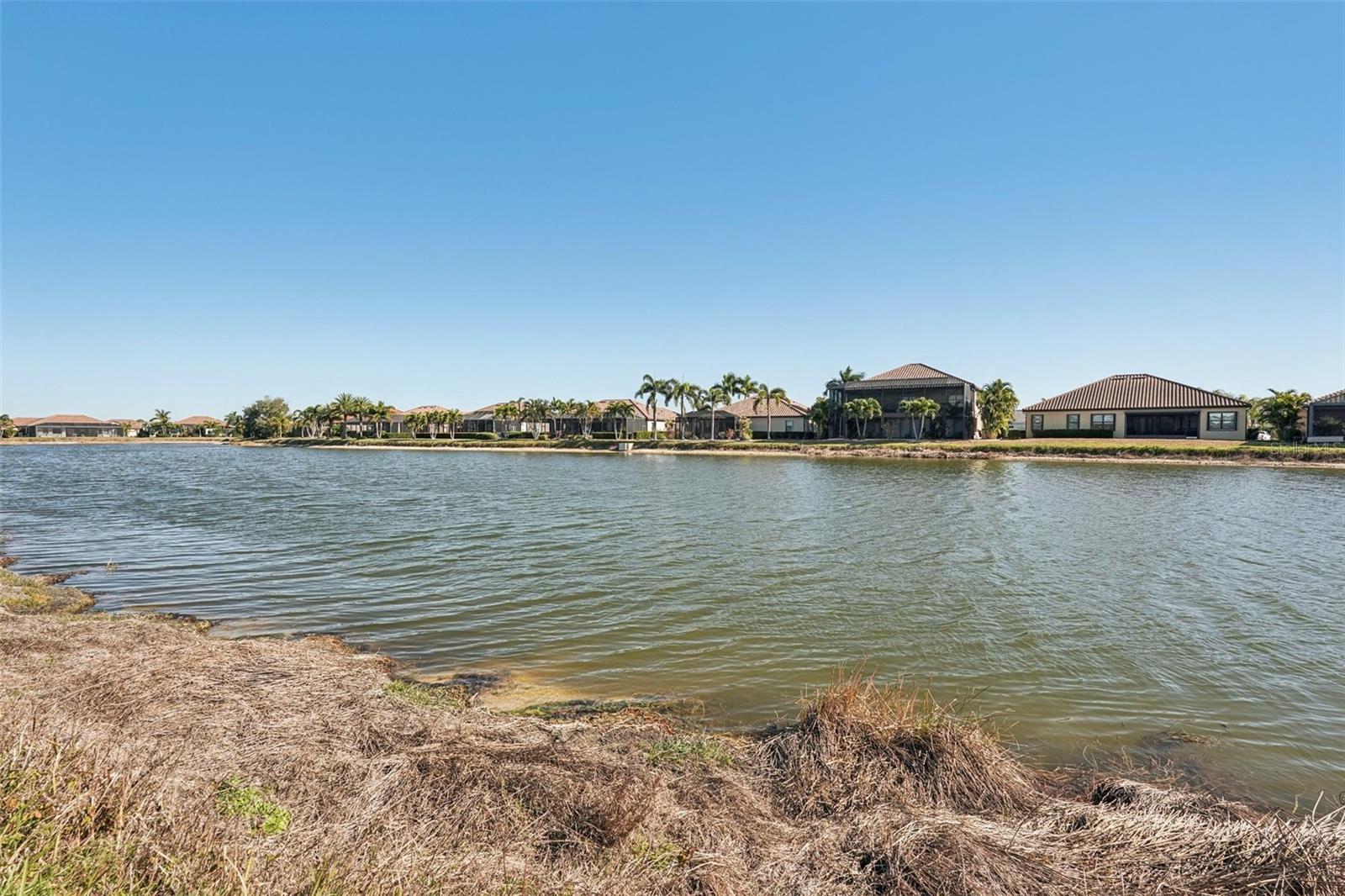 One or more photo(s) has been virtually staged. Elegant lake-front living in Wellen Park! This one owner 4 bedroom, 2.5 bath, 3-car garage Estate-series pool/spa Oakmont home is situated on a beautifully landscaped homesite with sweeping water views that will bring you hours of peace and tranquility. The owners have spared no expense in upgrading this magnificent residence. As you step into this beautiful home, you will love the open floor plan, abundance of natural light, soothing neutral color palette (recently custom painted inside and out!), high-end custom built-in cabinetry, crown molding, decorative moldings, tray ceilings, designer fixtures, Plantation shutters and exquisite tropical landscaping, including custom outdoor lighting and decorative curbing. Accordion hurricane shutters provide valuable peace of mind during storm season. The home features 10' ceilings and 8' doorways and a split layout that allows for privacy when family & friends come to visit. The flooring throughout your home is 20" porcelain tile on the diagonal (no carpet in the entire home!) The Chef's kitchen offers 42" wood cabinets, upgraded quartz countertops, custom backsplash, stainless-steel appliances, new Bosch dishwasher, built-in double ovens, pantry with a custom etched glass door and a breakfast area with a view. Enjoy your morning coffee at the breakfast bar, overlooking your spacious lanai and sparkling pool/spa, enjoying the serene lake view. Your Primary Bedroom Suite has a sitting area, access to the lanai & pool/spa, a large walk-in closet with luxurious custom built-ins and the En-Suite Master Bath offers dual vanities, a convenient walk-in shower and corner garden tub for relaxing baths. The adjacent wing of the home features 2 guest bedrooms that share a guest bath. There is another half-bath with pool access in your second guest bedroom. The 4th bedroom is utilized as a home office, complete with built-in cabinetry, granite countertops and waterfall desk, making it an ideal set-up for working at home. Your Great Room has a built-in wall unit with shelving and granite countertops (TV will stay!), another beautiful customization in this gorgeous residence. Step onto your lanai through the large sliding glass doors and enjoy Florida living with gentle breezes and chirping birds. The covered sitting area on your lanai is an Entertainer's paradise. Your generously sized pool and spa will provide many days and evenings of enjoyment. An oversized laundry room with utility sink and upgraded washer & dryer is just off of the 3-car garage. Your garage has been upgraded with insulated garage doors, attic access (pull-down aluminum stairs) and attic grid flooring. New water heater with circulating pump (instant hot water!). Gran Paradiso is an amenities-rich, maintenance-free community, situated in the master-planned Wellen Park area with restaurants, shopping, entertainment and the Atlanta Braves Spring Training stadium. Your new home is only 10 min away from the amazing Gulf beaches! Gran Paradiso residents enjoy a magnificent community pool, Tuscan-inspired Clubhouse, tennis, pickle ball, pool & card rooms, well-stocked library, state-of-the art fitness center, sauna/steam rooms, massage room & a myriad of activities, organized by a full-time Lifestyle Director. Gran Paradiso is golf-cart friendly and offers fabulous neighborhood events. This home is not in a flood zone and doesn't require flood insurance. Leave the cold Northern winters behind and enjoy life in paradise!