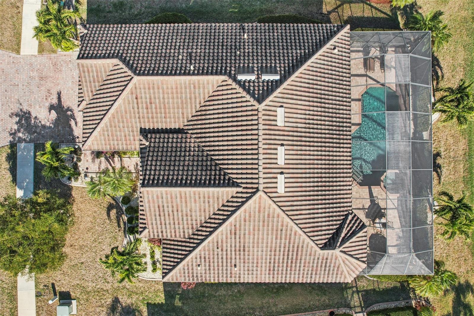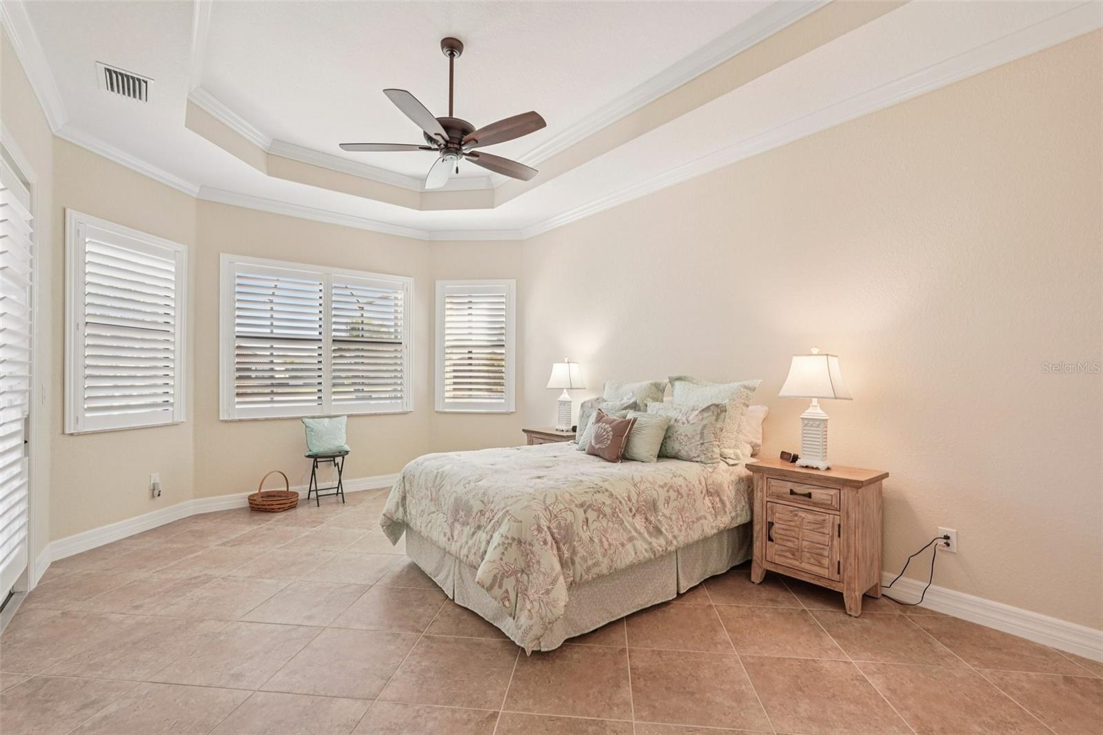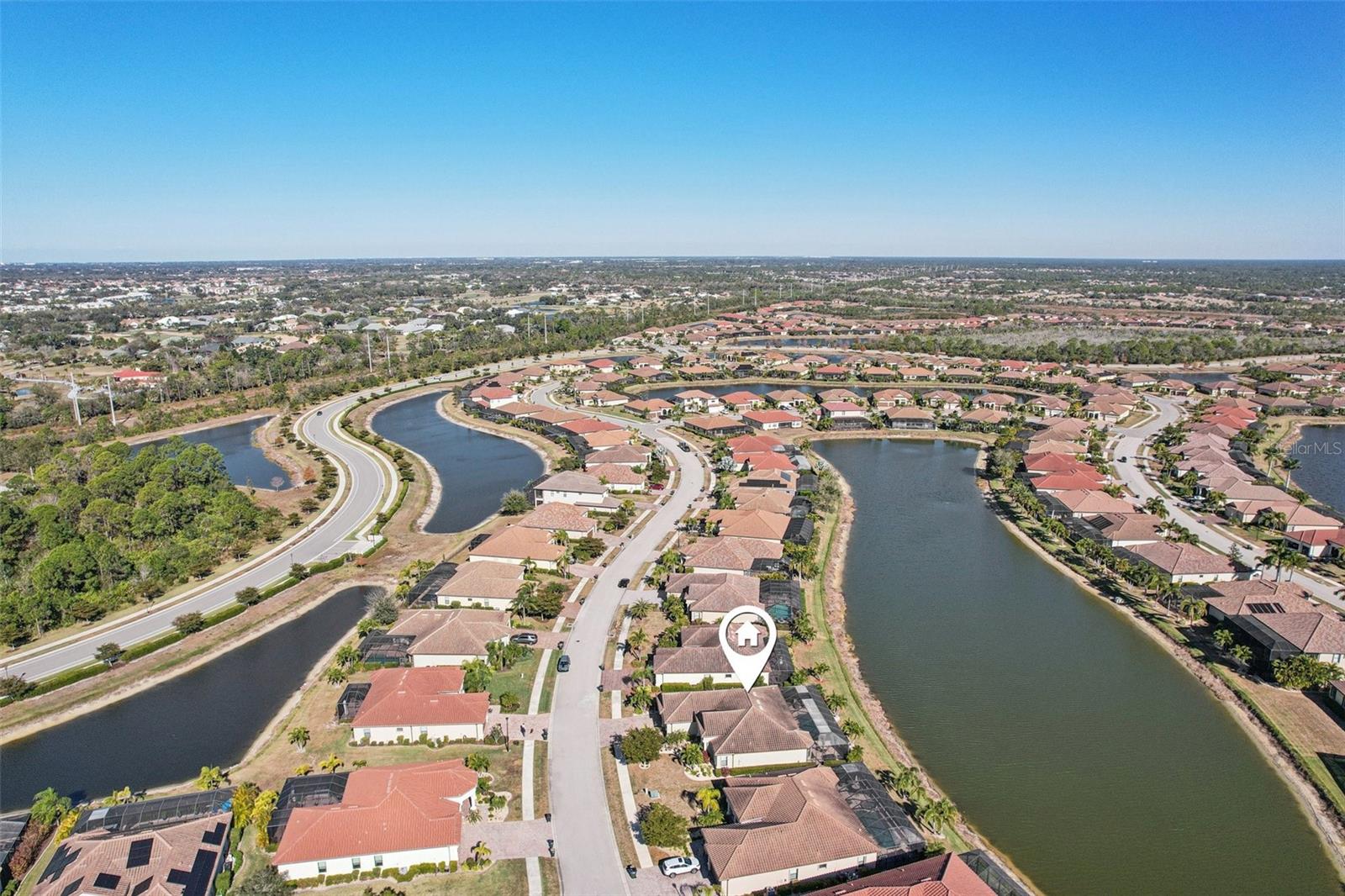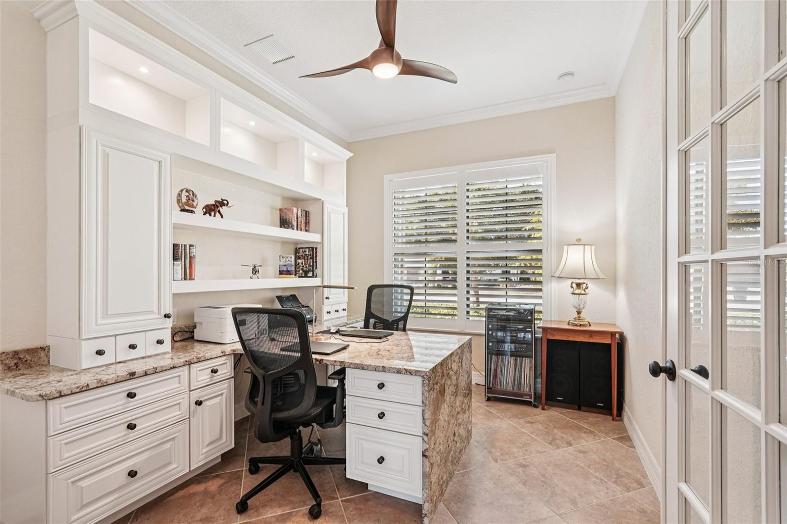 One or more photo(s) has been virtually staged. Elegant lake-front living in Wellen Park! This one owner 4 bedroom, 2.5 bath, 3-car garage Estate-series pool/spa Oakmont home is situated on a beautifully landscaped homesite with sweeping water views that will bring you hours of peace and tranquility. The owners have spared no expense in upgrading this magnificent residence. As you step into this beautiful home, you will love the open floor plan, abundance of natural light, soothing neutral color palette (recently custom painted inside and out!), high-end custom built-in cabinetry, crown molding, decorative moldings, tray ceilings, designer fixtures, Plantation shutters and exquisite tropical landscaping, including custom outdoor lighting and decorative curbing. Accordion hurricane shutters provide valuable peace of mind during storm season. The home features 10' ceilings and 8' doorways and a split layout that allows for privacy when family & friends come to visit. The flooring throughout your home is 20" porcelain tile on the diagonal (no carpet in the entire home!) The Chef's kitchen offers 42" wood cabinets, upgraded quartz countertops, custom backsplash, stainless-steel appliances, new Bosch dishwasher, built-in double ovens, pantry with a custom etched glass door and a breakfast area with a view. Enjoy your morning coffee at the breakfast bar, overlooking your spacious lanai and sparkling pool/spa, enjoying the serene lake view. Your Primary Bedroom Suite has a sitting area, access to the lanai & pool/spa, a large walk-in closet with luxurious custom built-ins and the En-Suite Master Bath offers dual vanities, a convenient walk-in shower and corner garden tub for relaxing baths. The adjacent wing of the home features 2 guest bedrooms that share a guest bath. There is another half-bath with pool access in your second guest bedroom. The 4th bedroom is utilized as a home office, complete with built-in cabinetry, granite countertops and waterfall desk, making it an ideal set-up for working at home. Your Great Room has a built-in wall unit with shelving and granite countertops (TV will stay!), another beautiful customization in this gorgeous residence. Step onto your lanai through the large sliding glass doors and enjoy Florida living with gentle breezes and chirping birds. The covered sitting area on your lanai is an Entertainer's paradise. Your generously sized pool and spa will provide many days and evenings of enjoyment. An oversized laundry room with utility sink and upgraded washer & dryer is just off of the 3-car garage. Your garage has been upgraded with insulated garage doors, attic access (pull-down aluminum stairs) and attic grid flooring. New water heater with circulating pump (instant hot water!). Gran Paradiso is an amenities-rich, maintenance-free community, situated in the master-planned Wellen Park area with restaurants, shopping, entertainment and the Atlanta Braves Spring Training stadium. Your new home is only 10 min away from the amazing Gulf beaches! Gran Paradiso residents enjoy a magnificent community pool, Tuscan-inspired Clubhouse, tennis, pickle ball, pool & card rooms, well-stocked library, state-of-the art fitness center, sauna/steam rooms, massage room & a myriad of activities, organized by a full-time Lifestyle Director. Gran Paradiso is golf-cart friendly and offers fabulous neighborhood events. This home is not in a flood zone and doesn't require flood insurance. Leave the cold Northern winters behind and enjoy life in paradise!