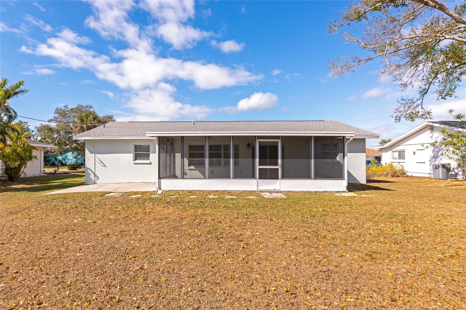 Stunning and updated 3 bedroom, 2 bathroom home nestled beneath shady palm trees in a highly desirable Venice community with no HOA. This charming residence features a spacious one-car garage and an airy open-concept floor plan filled with abundant natural light from oversized windows. Enjoy luxury vinyl flooring throughout, perfect for both style and easy maintenance. The living and dining areas offers generous space for entertaining and flow seamlessly into the fully equipped kitchen, showcasing granite countertops, stainless steel appliances, ample cabinetry, and a stylish backsplash. The private primary suite is tucked away for comfort and includes an en-suite bathroom with a shower/tub combo and a massive walk-in closet with extra storage. The second bedroom also features its own en-suite bathroom with a luxurious walk-in shower and large closet, ideal for guests or multi-generational living. The versatile third bedroom gives you options for a home office, gym, or guest room. Step outside to a fully enclosed rear patio with easy-care tile flooring, where you can enjoy alfresco dining, relaxing evenings, or sunset views. The expansive backyard offers plenty of room for pets, gardening, outdoor entertaining, or a future firepit. Centrally located near shopping, dining, and everyday essentials, this home is also just minutes from sandy beaches. A perfect blend of comfort, style, and location, schedule your tour today before it is gone!