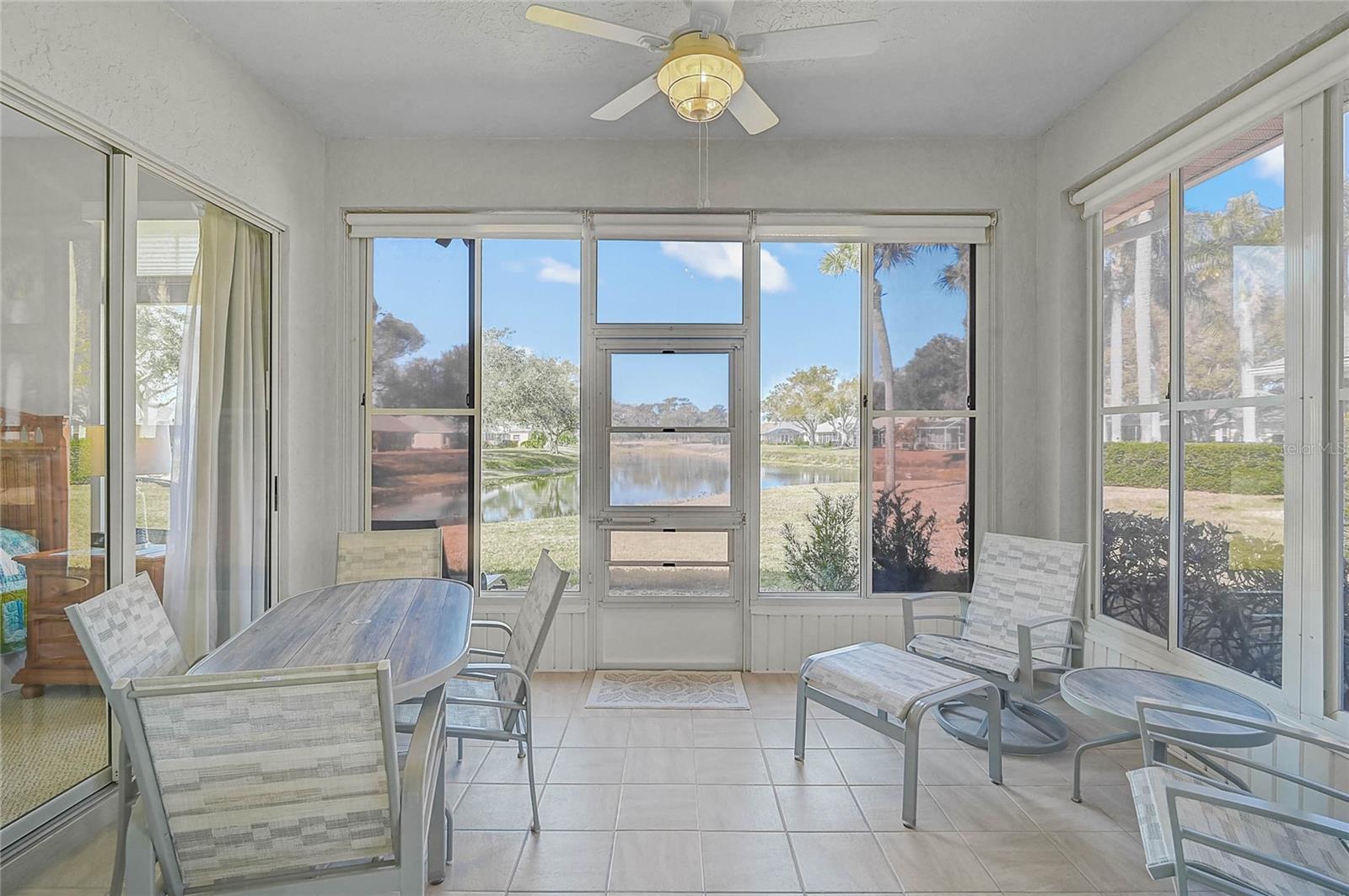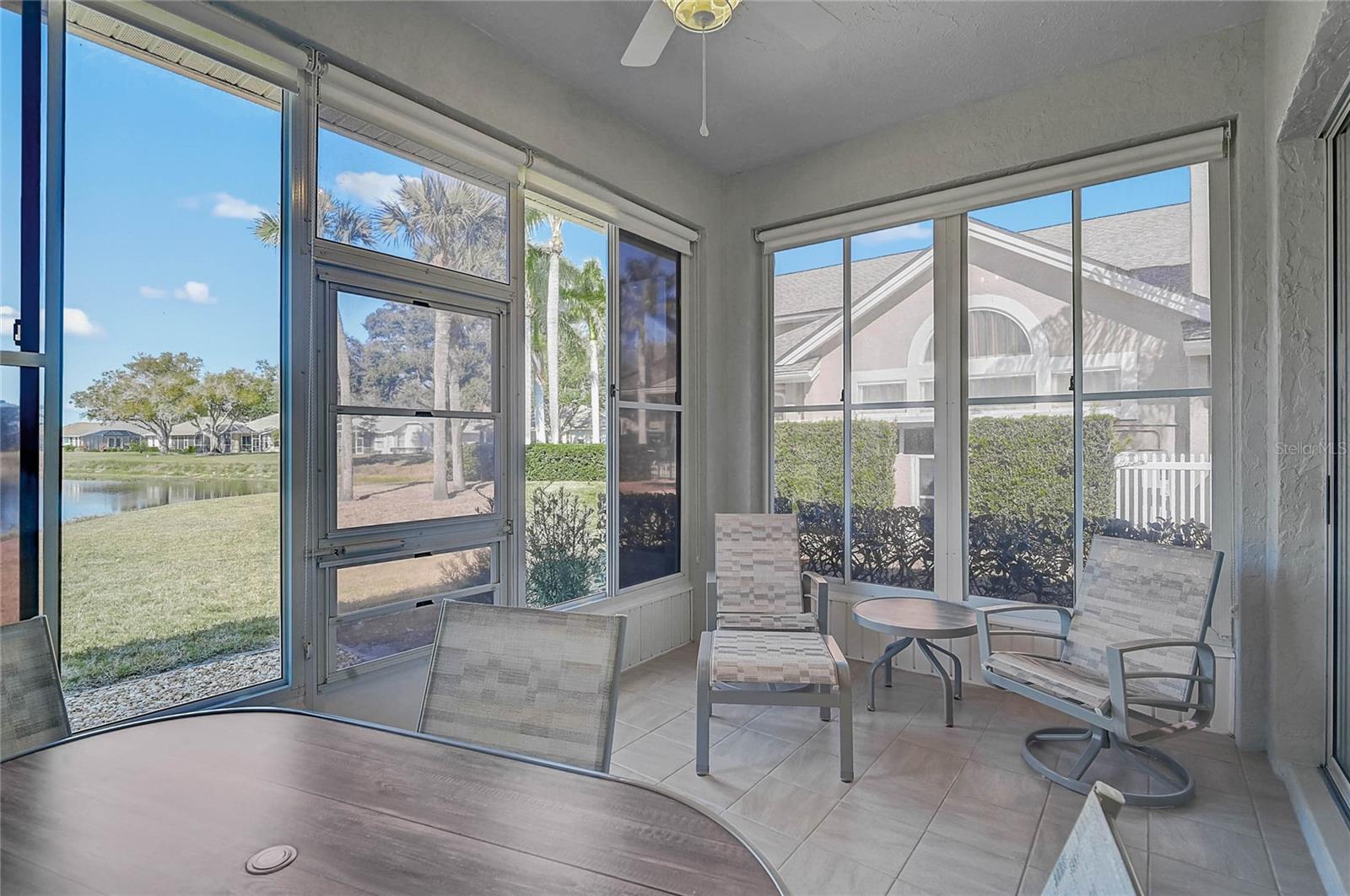 Wake up to peaceful lake views and easy, maintenance-free living in this bright and welcoming two-bedroom, two-bath home with a two-car garage in the highly desirable Isles of Chestnut Creek. Designed for comfort and connection, the open floor plan features soaring volume ceilings, oversized windows that fill the home with natural light, and spacious living and dining areas that flow effortlessly into the Florida room and lanai—perfect for morning coffee, sunset views, or gathering with friends. The split-bedroom layout offers privacy for guests, while the primary suite enjoys tranquil water views, a walk-in closet, and a beautifully updated bath with a refreshed vanity, modern fixtures, and a stylish tiled shower. The kitchen has also been tastefully renovated with granite countertops, updated cabinetry, and newer appliances, creating a clean, modern space that’s both functional and inviting. A new roof (2025) adds extra peace of mind, making this home truly move-in ready. Best of all, it’s being offered turnkey furnished—just bring your suitcase and start enjoying the Florida lifestyle from day one. Outside your door, enjoy low-maintenance living and wonderful community amenities including a clubhouse, heated pool, pickleball, tennis courts, and shuffleboard. Stroll along tree-lined sidewalks, take in the wildlife around the neighborhood’s scenic lakes, or head just minutes away to shopping, dining, Historic Downtown Venice, and the beautiful Gulf beaches. Simply unpack, settle in, and start enjoying the view.