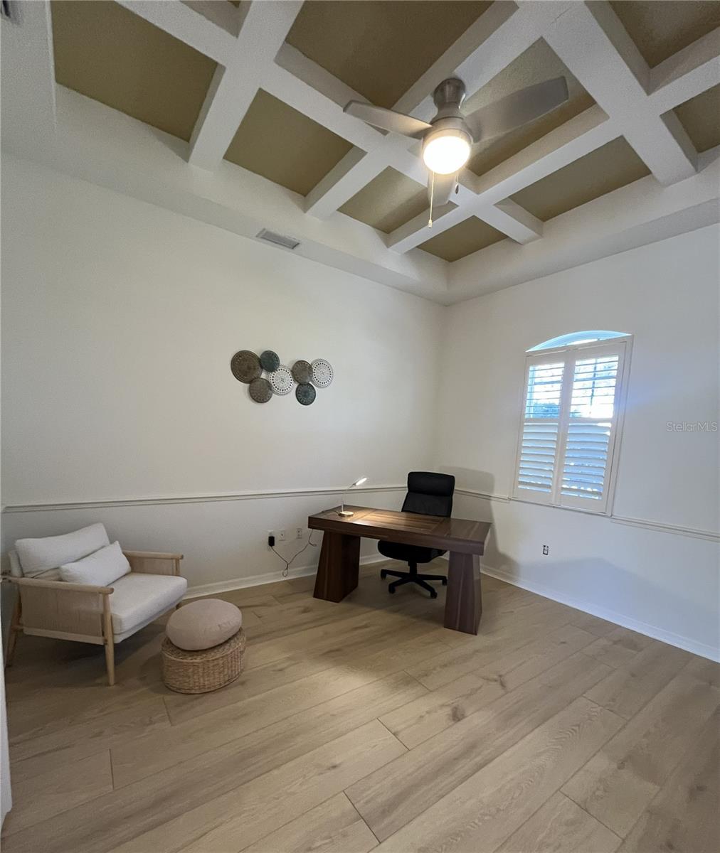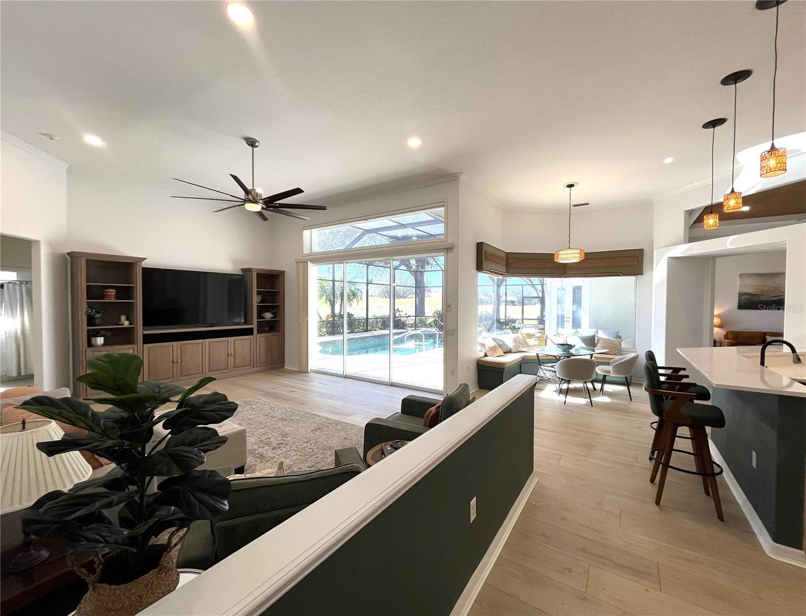 Accepting showings soon! Awaiting completion on kitchen install. New professional photos coming in a few days. Discover your dream home in The Reserve. This newly renovated property features four bedrooms plus a den, offering 3,500 square feet of comfortable living space. Enjoy new hybrid oak long plank flooring in the main living area, den, and guest bedroom. The bathrooms have been updated with porcelain tile floors, new vanities, and modern porcelain-tiled showers. The pool bath has been extended to provide direct pool access, extra storage, and a changing area. The kitchen features new quartz countertops, custom white shaker cabinets with cove crown molding, and a large stainless-steel sink. Both main living rooms feature disappearing triple sliding doors. The entire house has been freshly painted and updated with new lighting. Outside, you'll find an inground Pebble Tec pool, a paver lanai, and new screening. The large private side yard offers a peaceful retreat to enjoy the outdoors or the view from inside. With close to a half acre of land this property enjoys both golf course view and private retreat on the cul de sac. Additional highlights include a new roof in 2025 and an oversized 36x22 garage. This property is ideal for those seeking a tranquil, green neighborhood with convenient access to local amenities. Do not miss this opportunity to make this house your home.