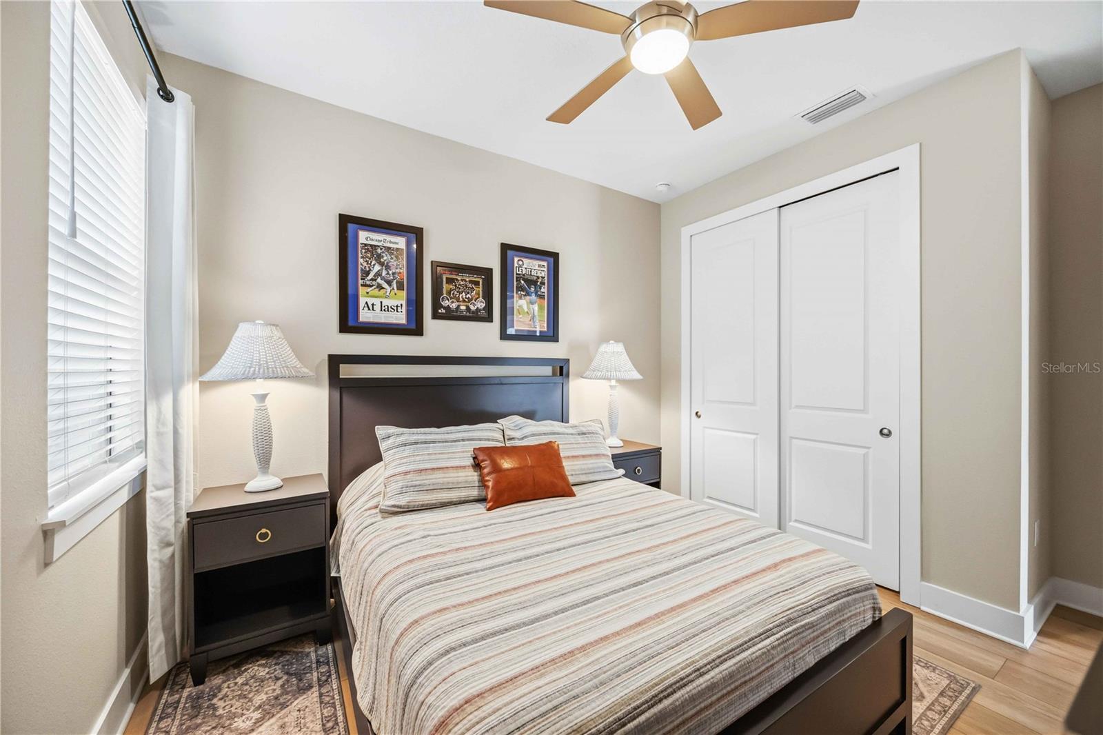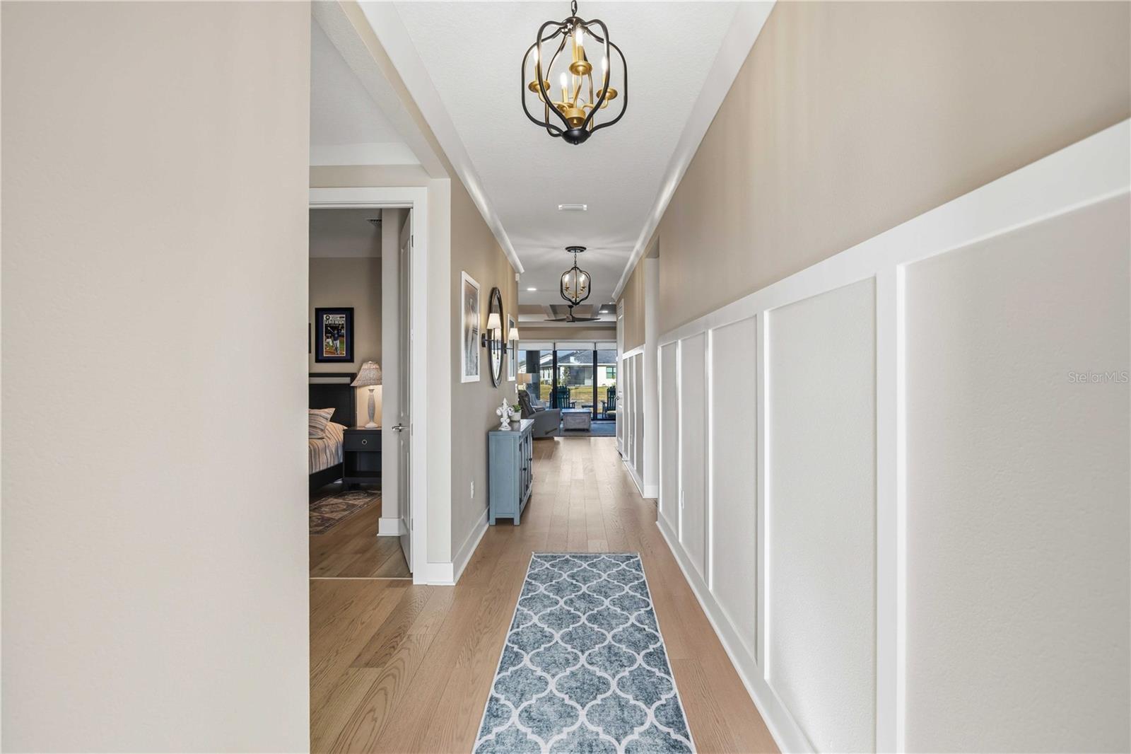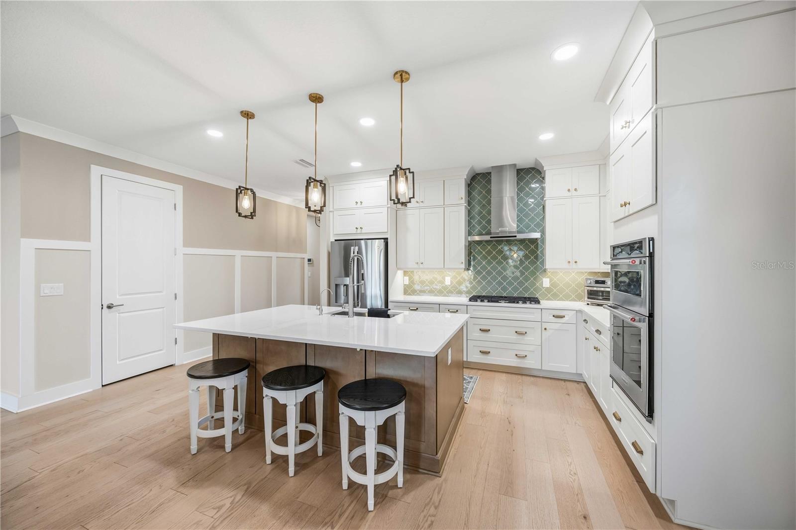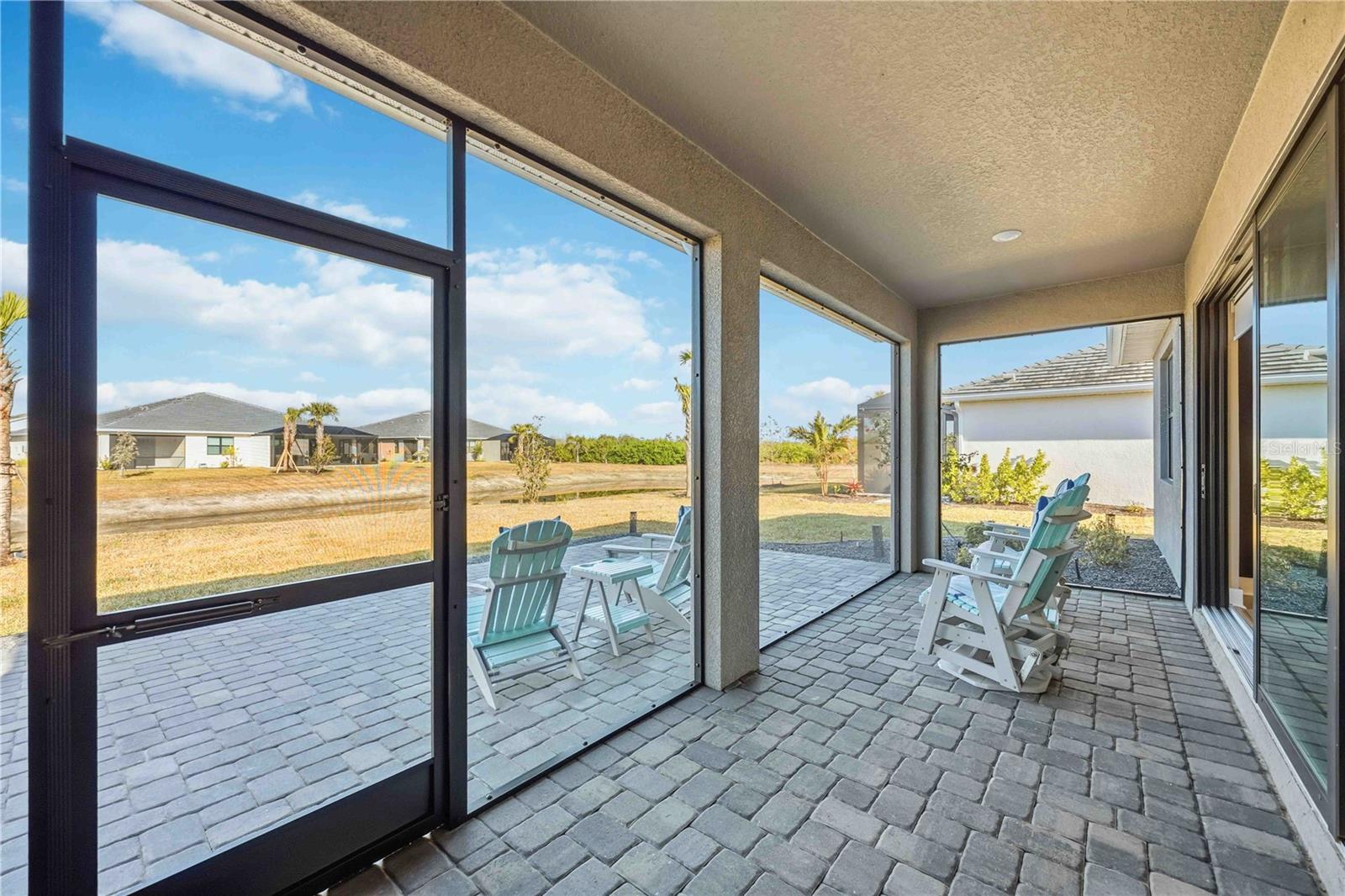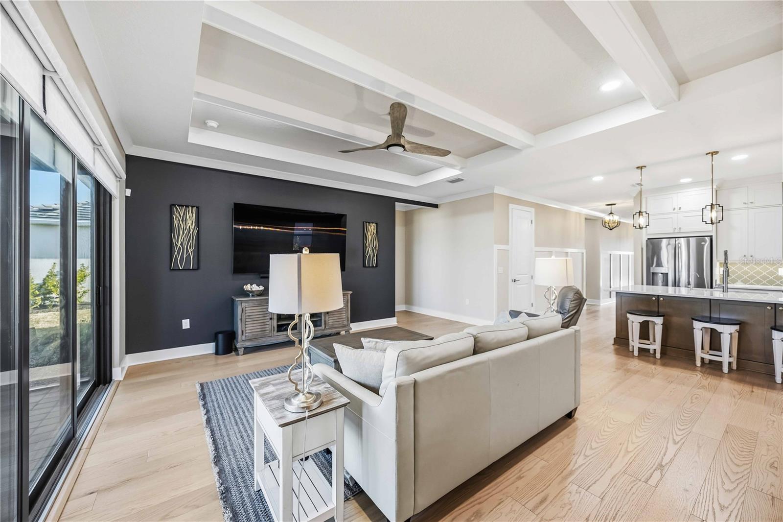 One or more photo(s) has been virtually staged. GAS COMMUNITY, FULL GUTTER SYSTEM, WHOLE-HOME GENERAC GENERATOR, IMPACT-RATED WINDOWS AND DOORS, CUSTOM CEILING BEAMS, CROWN MOLDING, DESIGNER LIGHTING, KITCHENAID APPLIANCES, OUTDOOR KITCHEN PREPPED full-height backsplash, upgraded pendant lighting, oversized pantry, water softener system with reverse osmosis, engineered hardwood flooring throughout with no carpet set the tone for the level of upgrades and care found throughout this beautifully enhanced three-bedroom, two-bath home in the gated community of Solstice at Wellen Park, set on a premium pond-view homesite. Enjoy outdoor living on the extended, sealed paver patio and screened lanai with added landscaping, creating a private, relaxing space designed for year-round Florida living. The spacious primary suite features double crown molding and a professionally designed custom closet, with additional highlights including a custom drop zone, glass shower doors in the guest bath, window blinds throughout, designer ceiling fans, and an Electrolux washer and dryer. Walking trails connecting to Downtown Wellen and the Atlanta Braves stadium enhance the lifestyle, along with maintenance-free living and resort-style amenities including a clubhouse, yoga lawn, and pool, with future plans for a fitness center, pickleball and bocce courts, scenic gathering spaces, and more, all near top-rated Sarasota County schools and less than 15 minutes to the Gulf Coast’s beautiful beaches.one or more photos have been digitally edited