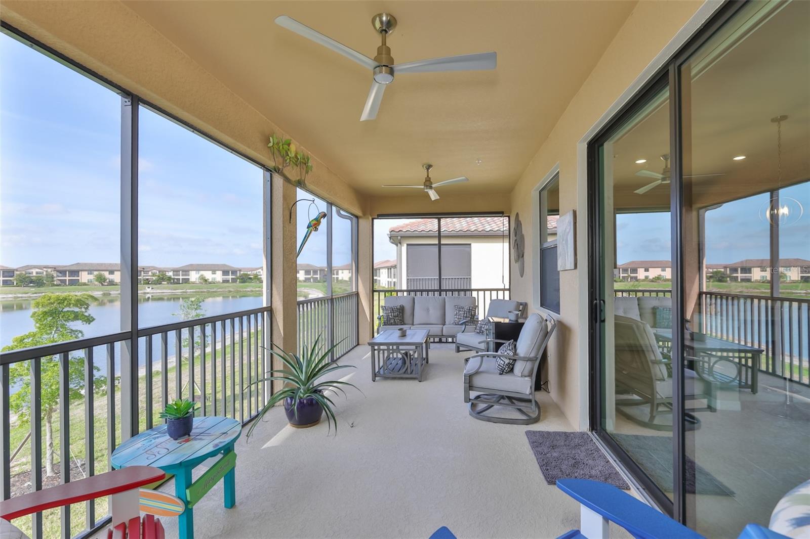 Experience luxury resort-style living at Gran Paradiso. This updated, one-of-a-kind 3-bedroom, 2-bathroom coach home offers a bright, open layout with quiet water views. Several premium upgrades set this property apart, including: - Custom fans and tile throughout - An oversized refrigerator and custom shelving in all closets and pantries - Updated electrical outlets with USB-A and USB-C connectors in the great room and primary bedroom - Hunter Douglas motorized power shades in the primary bedroom and great room - A stacked washer/dryer and a Pro-line commercial-grade hot water heater - Finished epoxy floors in the garage The Gran Paradiso community features exceptional amenities, including a 24-hour guarded gate, a stunning clubhouse, and a large community pool with a spa. Residents also enjoy access to a fitness center, tennis and pickleball courts, huge playground, and billiard rooms.