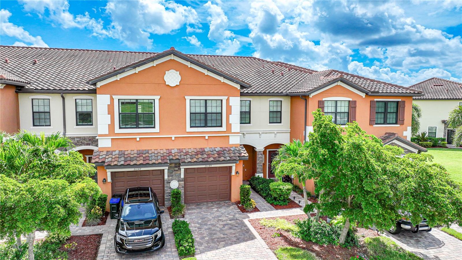 "10K PRICE REDUCTION" PLUS sale will include all new furniture and TVs. This well-maintained townhome offers a screened-in rear Lanai with stunning water views, perfect for relaxing. Situated on a lot with beautifully designed landscaping, directly across from a green belt with a nature walking path that leads to the Gran Paradiso amenity center, offering a very private setting with no homes directly across the street. This townhome features 3 bedrooms and 2.5 baths. The first level has tile floors throughout with granite countertops in the kitchen. It features a one-car garage with overhead storage racks, and a private driveway. The second level has three bedrooms, with a large Master bedroom, a private bath with double sinks, a walk-in shower and two walk-in closets. The other two bedrooms are on the far side of the 2nd floor with a full second bath. Many upgrades, including new carpet on stairs and in bedrooms, crown molding throughout the first level and Master bedroom, stainless steel appliances with a stylish tile backsplash in the kitchen. It has ceiling fans in the great room, lanai and all bedrooms. The HOA fee covers maintenance and landscaping, hi-speed internet, and cable TV. Enjoy the resort-style community with over 1,000 acres, miles of trails, a tremendous resort style pool, hot tub, exercise gym, gated entries, security, clubhouse, library, tennis & pickleball courts, and a variety of fun activities. This prime location offers easy access to the beach, the Atlanta Braves farm team stadium, and the new Wellen Park downtown, making it a sought-after community in the Southwest Sarasota County region. Enjoy our Florida lifestyle and all the beauty this home has to offer.