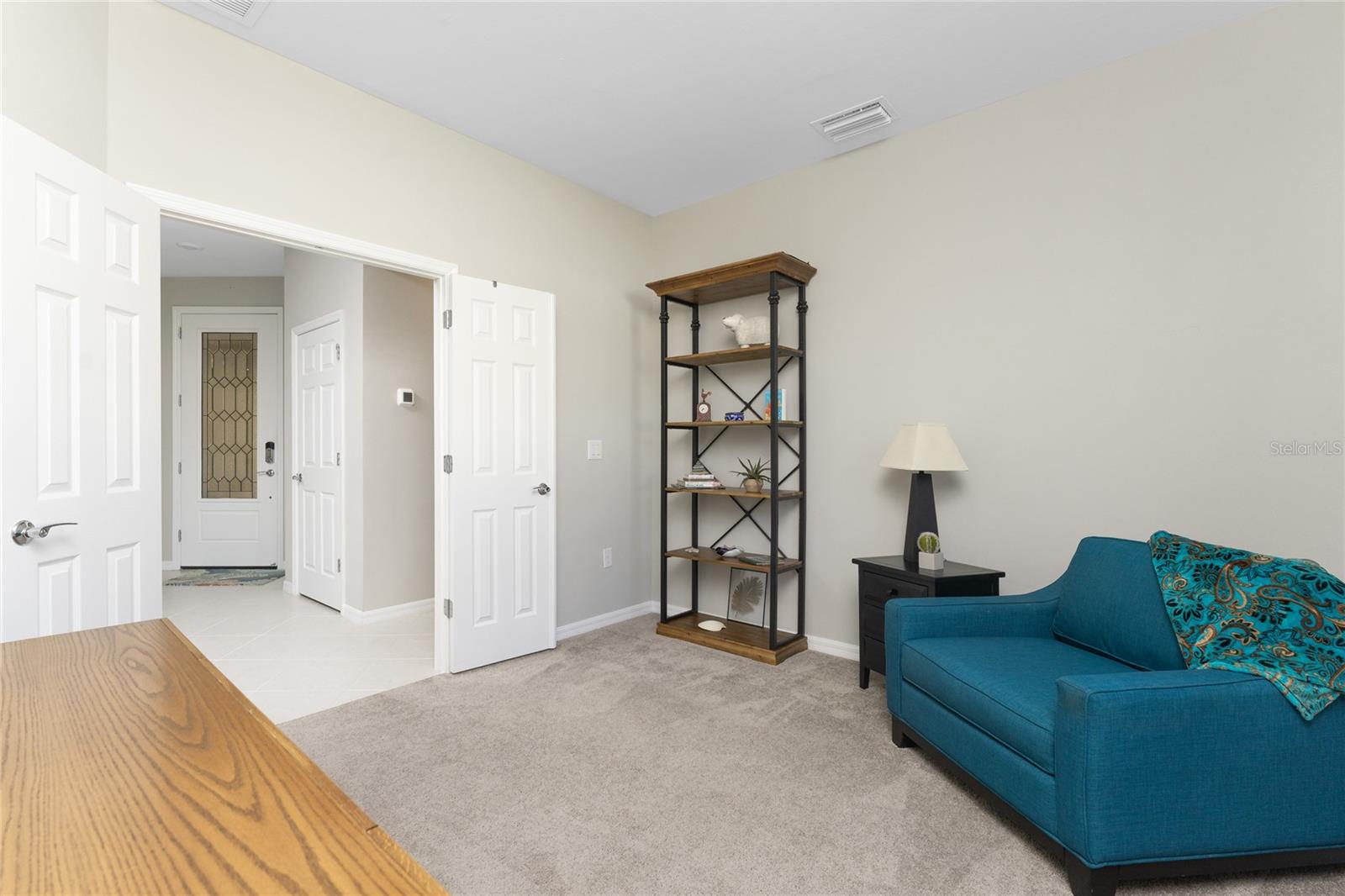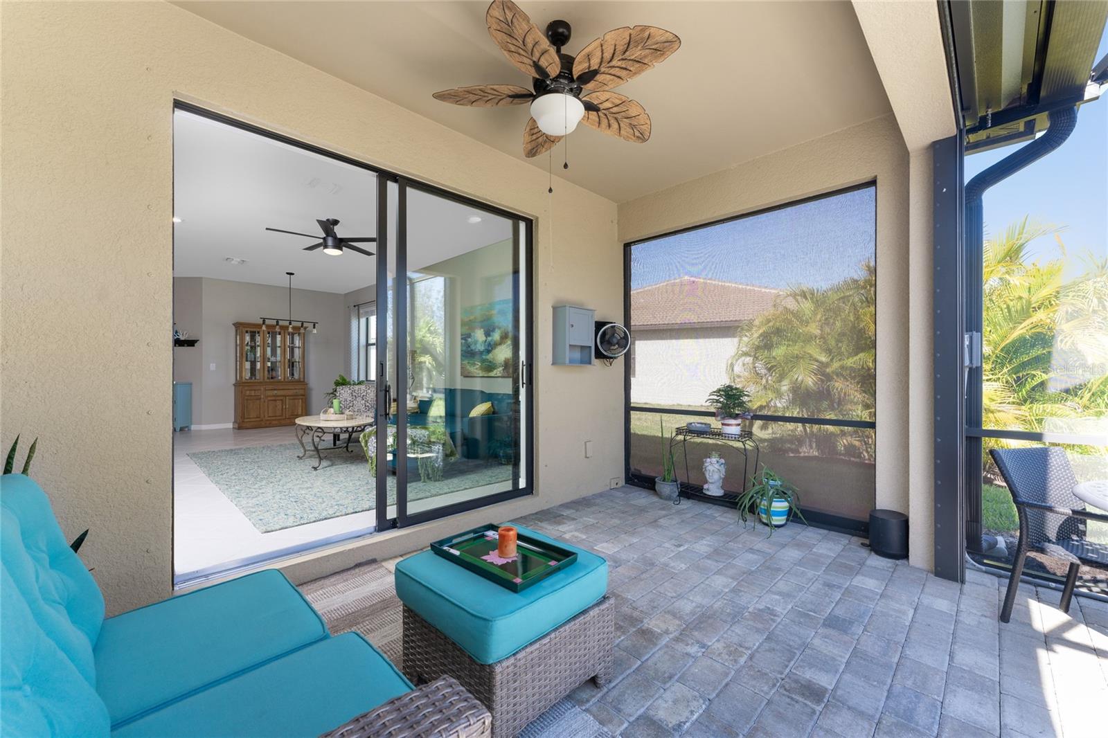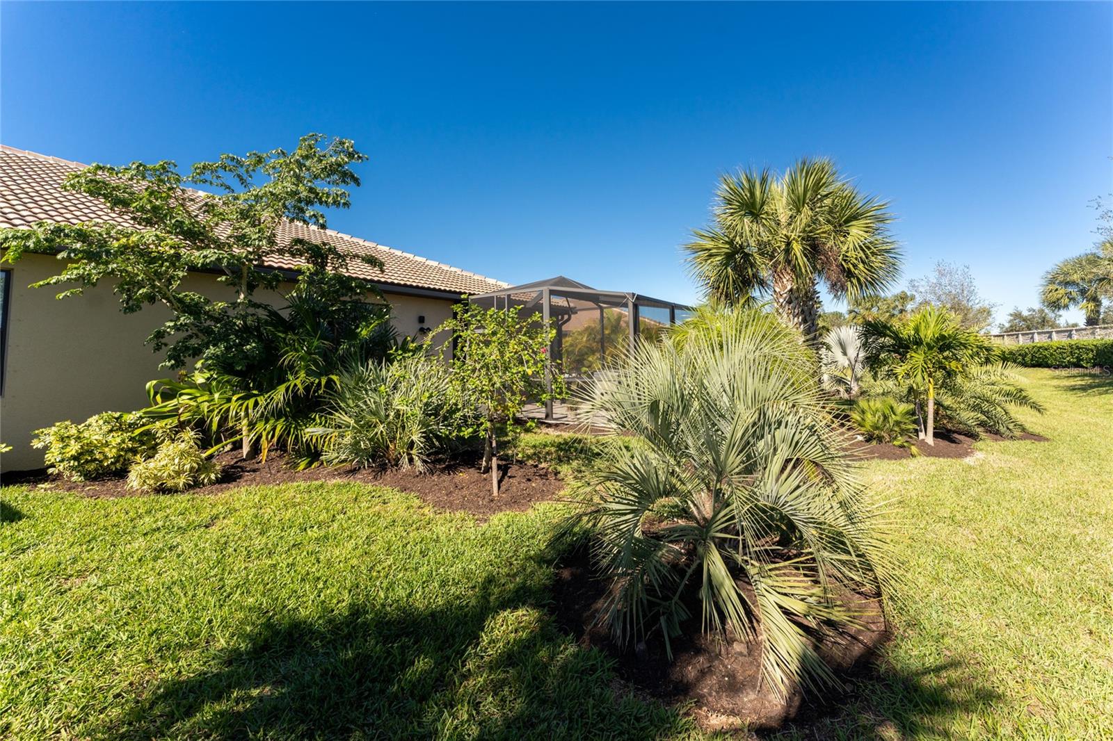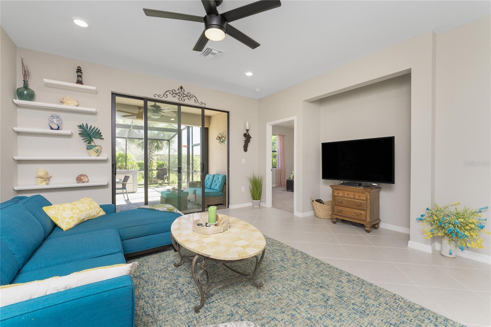 Welcome to Island Walk, an active, resort-style, maintenance-free community, located in the new town development, Wellen Park. Large rooms, boasting 1,611 square feet in this spacious villa. Split 2 bedroom, 2 bath, plus den/studio/bedroom. This home boasts a tile roof, brick paved driveway, and a front patio entrance with a lake view. Walk through the stunning front door designed with leaded glass and be greeted by a luxurious feel with the 9-foot ceiling giving way to a spacious layout. The extra wide 2-car garage with gray speckled epoxy flooring features a Rain Soft water filtration system, workbench, ceiling storage, storage racks and cupboards. Upon entry from the garage into the laundry room where you will find full-length shelf & cupboards along with the Smart Home control panel. Continuing into the home you will find a full bathroom to the left & bedroom to the right. Tiled bathtub shower & stone top vanity in the guest bath. A pantry supply closet can be found in the hallway. Farther up the hallway to the left, is a versatile den/guest/studio flex room with window & French doors add architectural interest. The kitchen boasts a two-tone modern kitchen twist with a suite of Whirlpool stainless steel appliances, Reverse Osmosis 3 filter water treatment, Quartz countertops with matching backsplash, 42” light gray upper & lower soft close cabinets, breakfast bar with pendant lighting, and pantry closet. The breakfast nook has been transformed with 42” white cabinets, mosaic tile backsplash, quartz snack bar/buffet seating. The kitchen is open to a spacious dining area and a great room with a recessed area for the entertainment center. Beautiful views with full wall-size sliding doors. Enter the primary bedroom suite with his & her closets (one walk-in with dresser). The bathroom features an elegant spa-like feel that showcases a walk-in shower with a frameless glass door, granite countertop vanity with dual sinks, and ample storage. Step out to the covered lanai, equipped with Storm Smart, remote control, hurricane-proof, rolling storm blinds. There is a double extended screened lanai looking out onto the custom-planted tree garden on this property. This exceptional front & backyard landscaping gives you your private paradise. Enjoy all this from your hot tub with privacy & serenity. An additional patio area is great for grilling. Plenty of room for the whole party. The vibrant Island Walk community provides endless opportunities for healthy lifestyle and social interaction. With three community clubhouses, fitness centers, resort style pools, lap pools, 2 full-time activity directors, newsletter with recreational/educational events. Bocce ball, pickleball, tennis, playground, dog park, community raised garden beds, boardwalk, extensive walking & biking trails & bridges. Golf cart friendly. Conveniently located near shopping, dining, and the Marketplace @ Wellen Park, this residence is just minutes away from historic downtown Venice and the beautiful beaches of Florida. Whether you're seeking a year-round residence, vacation home, or seasonal retreat, this property offers the perfect blend of luxury and convenience. Don't miss out on the opportunity to make this your new home!