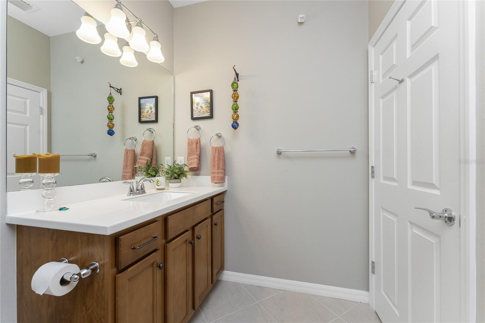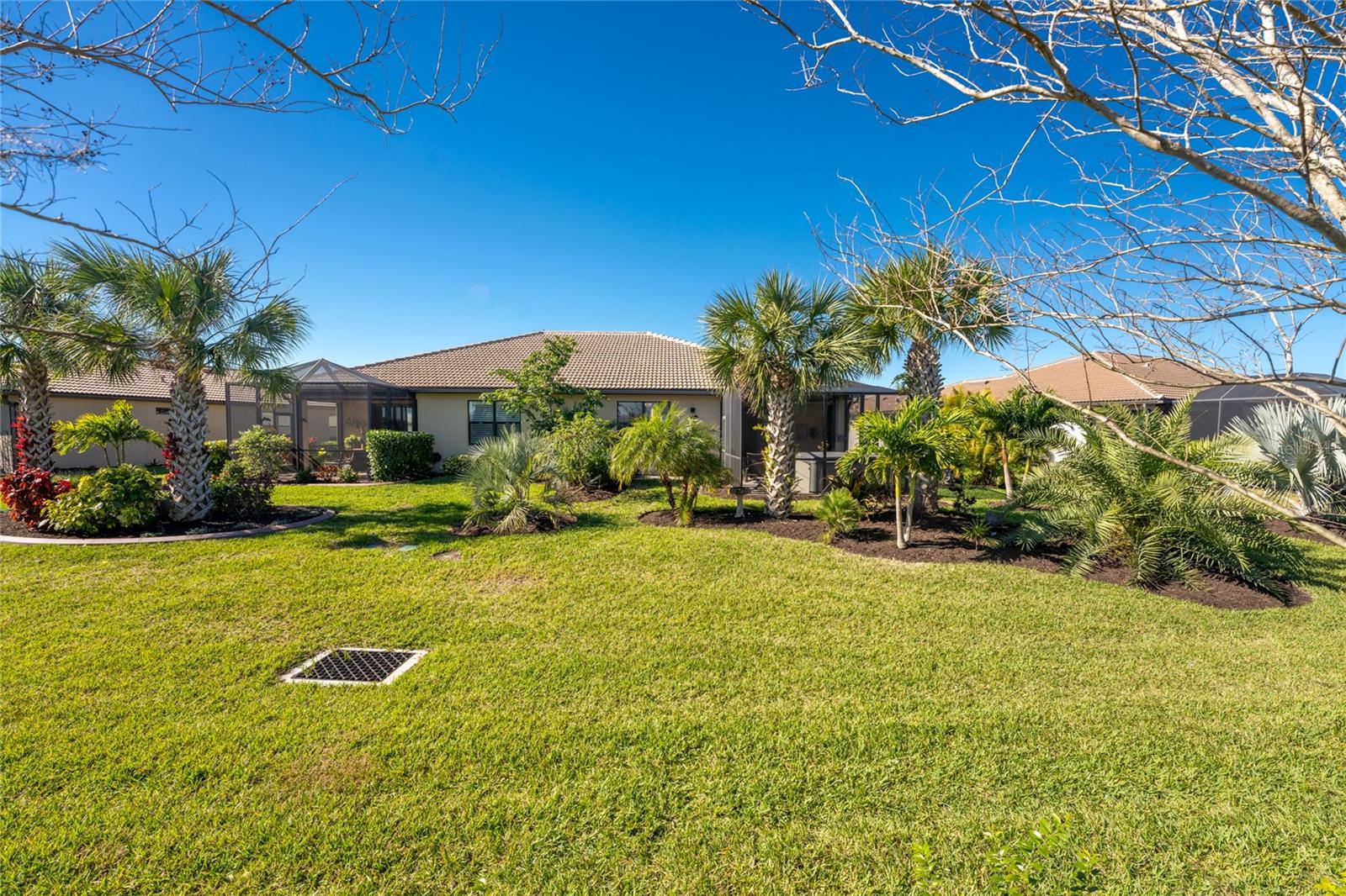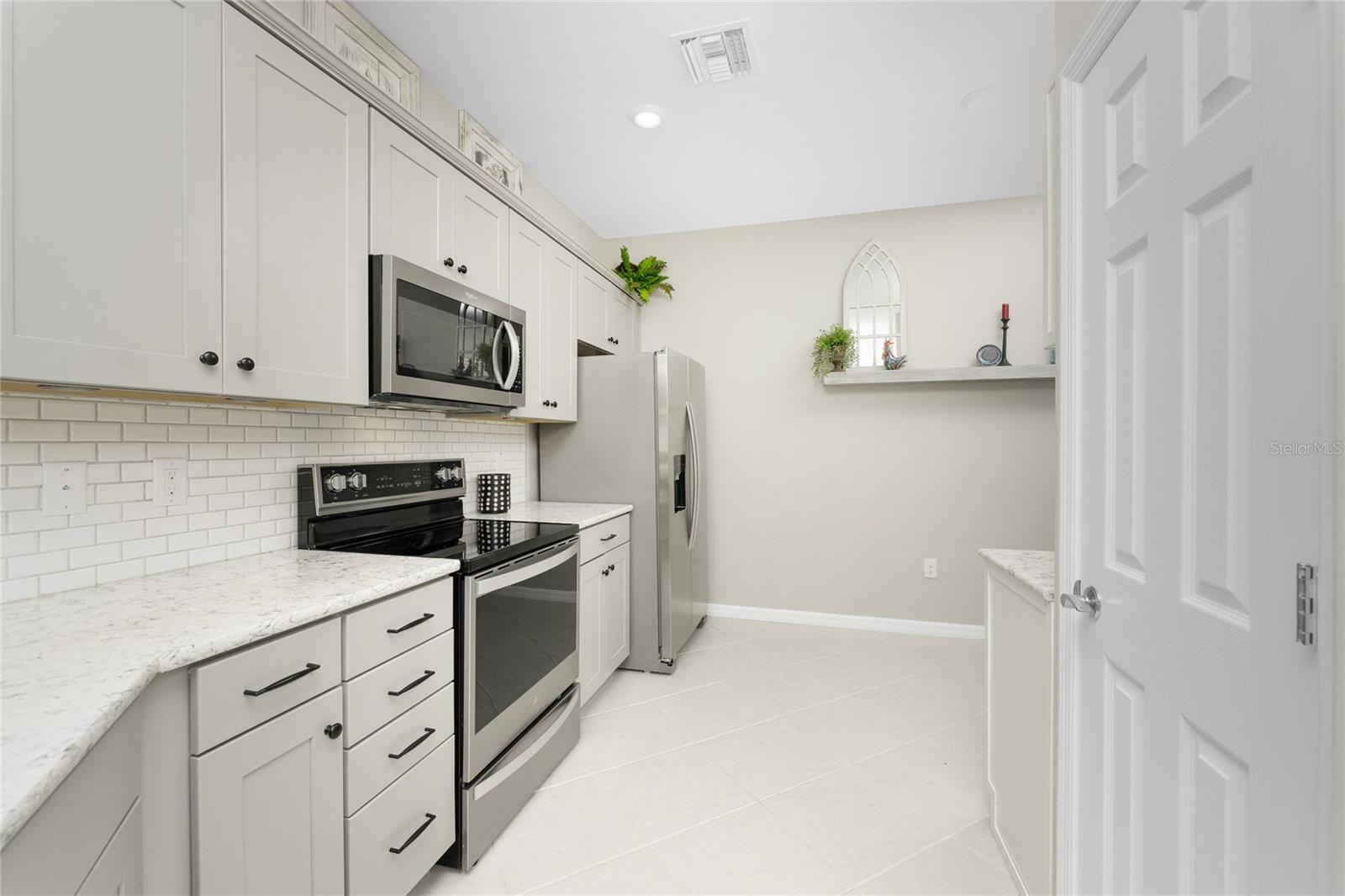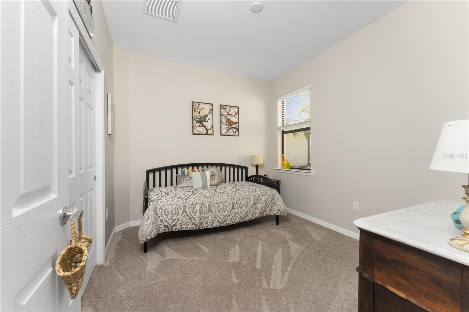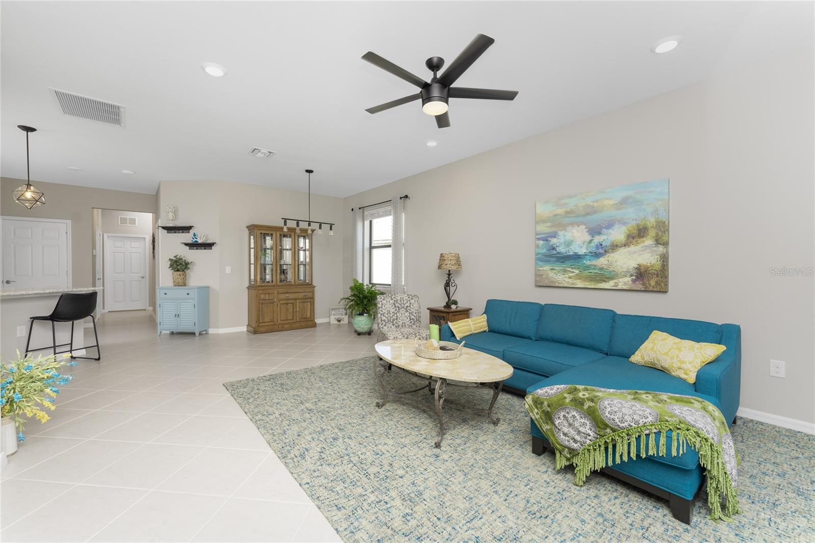 Welcome to Island Walk, an active, resort-style, maintenance-free community, located in the new town development, Wellen Park. Large rooms, boasting 1,611 square feet in this spacious villa. Split 2 bedroom, 2 bath, plus den/studio/bedroom. This home boasts a tile roof, brick paved driveway, and a front patio entrance with a lake view. Walk through the stunning front door designed with leaded glass and be greeted by a luxurious feel with the 9-foot ceiling giving way to a spacious layout. The extra wide 2-car garage with gray speckled epoxy flooring features a Rain Soft water filtration system, workbench, ceiling storage, storage racks and cupboards. Upon entry from the garage into the laundry room where you will find full-length shelf & cupboards along with the Smart Home control panel. Continuing into the home you will find a full bathroom to the left & bedroom to the right. Tiled bathtub shower & stone top vanity in the guest bath. A pantry supply closet can be found in the hallway. Farther up the hallway to the left, is a versatile den/guest/studio flex room with window & French doors add architectural interest. The kitchen boasts a two-tone modern kitchen twist with a suite of Whirlpool stainless steel appliances, Reverse Osmosis 3 filter water treatment, Quartz countertops with matching backsplash, 42” light gray upper & lower soft close cabinets, breakfast bar with pendant lighting, and pantry closet. The breakfast nook has been transformed with 42” white cabinets, mosaic tile backsplash, quartz snack bar/buffet seating. The kitchen is open to a spacious dining area and a great room with a recessed area for the entertainment center. Beautiful views with full wall-size sliding doors. Enter the primary bedroom suite with his & her closets (one walk-in with dresser). The bathroom features an elegant spa-like feel that showcases a walk-in shower with a frameless glass door, granite countertop vanity with dual sinks, and ample storage. Step out to the covered lanai, equipped with Storm Smart, remote control, hurricane-proof, rolling storm blinds. There is a double extended screened lanai looking out onto the custom-planted tree garden on this property. This exceptional front & backyard landscaping gives you your private paradise. Enjoy all this from your hot tub with privacy & serenity. An additional patio area is great for grilling. Plenty of room for the whole party. The vibrant Island Walk community provides endless opportunities for healthy lifestyle and social interaction. With three community clubhouses, fitness centers, resort style pools, lap pools, 2 full-time activity directors, newsletter with recreational/educational events. Bocce ball, pickleball, tennis, playground, dog park, community raised garden beds, boardwalk, extensive walking & biking trails & bridges. Golf cart friendly. Conveniently located near shopping, dining, and the Marketplace @ Wellen Park, this residence is just minutes away from historic downtown Venice and the beautiful beaches of Florida. Whether you're seeking a year-round residence, vacation home, or seasonal retreat, this property offers the perfect blend of luxury and convenience. Don't miss out on the opportunity to make this your new home!