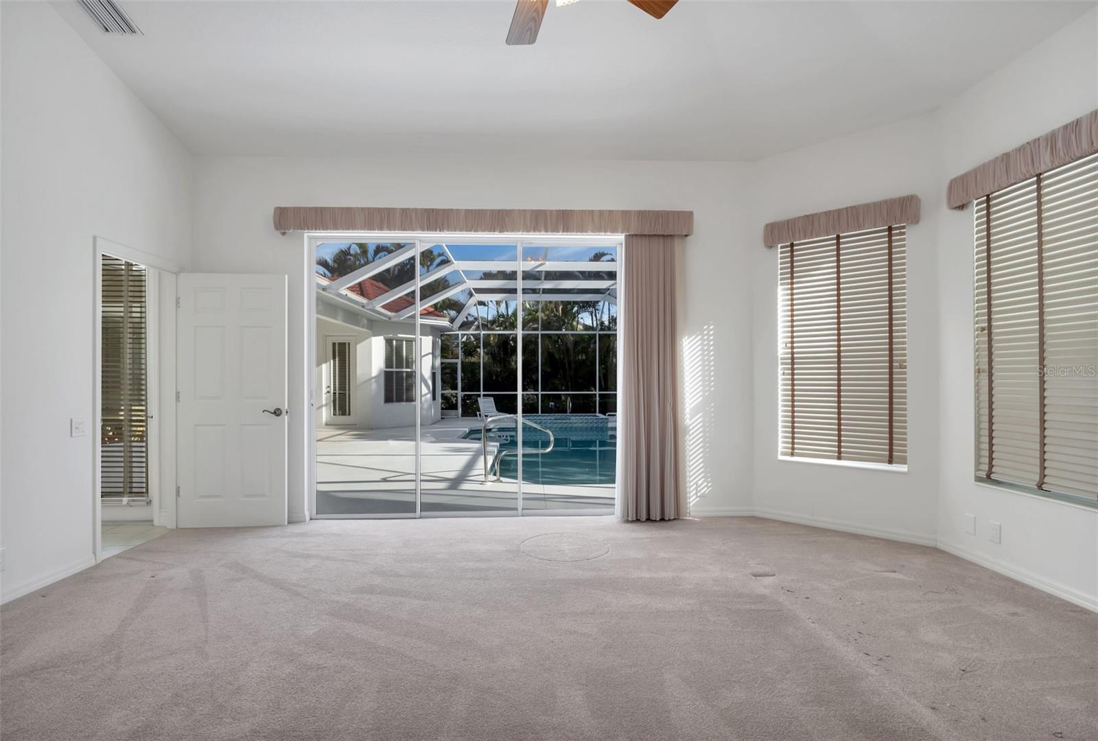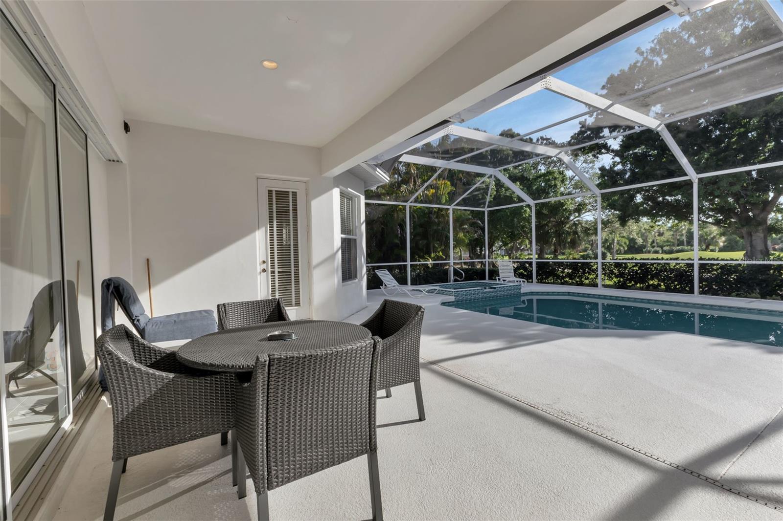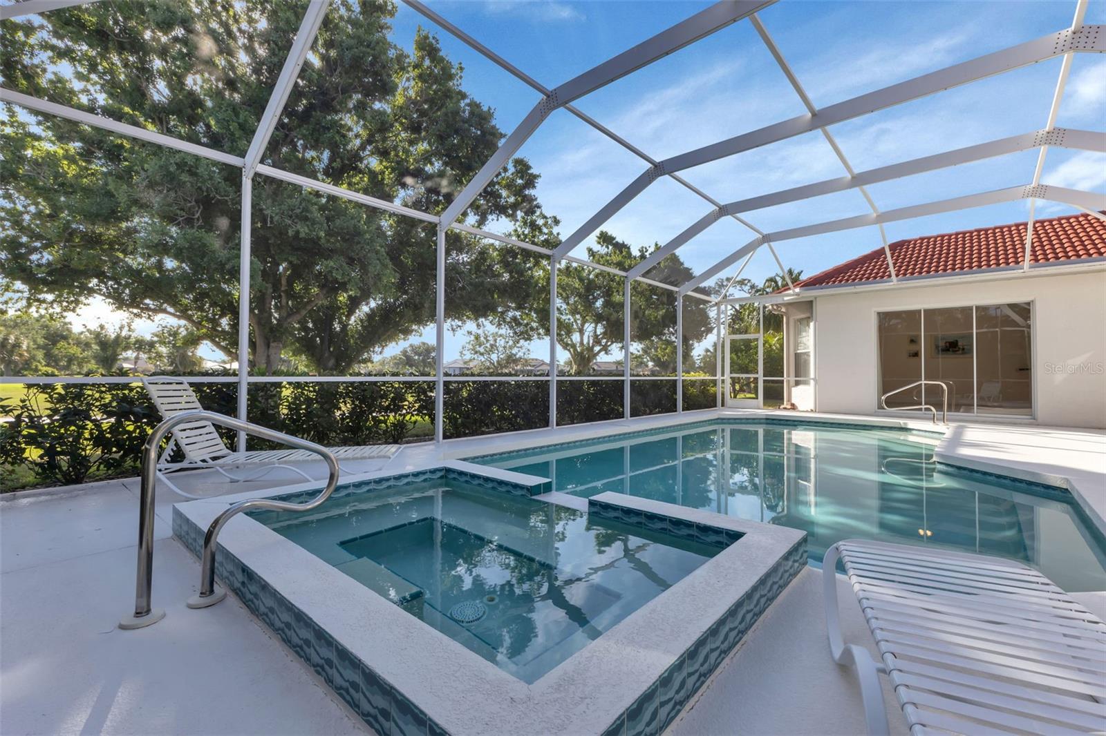 One or more photo(s) has been virtually staged. Welcome to your dream home nestled within the serene confines of Pelican Pointe Golf & Country Club in Venice, Florida. This stunning 3-bedroom, 3-bathroom and LARGE BONUS room that overlooking the pool and the golf course offers the ultimate Florida lifestyle, combining luxurious living spaces with resort-style amenities and breathtaking natural beauty. This exquisite residence offers the perfect blend of luxury, comfort, and natural beauty, providing an unparalleled lifestyle experience. As you approach the home, a manicured landscape greets you, hinting at the elegance within. Upon entering, you're welcomed into a spacious and inviting foyer, where natural light floods the interiors, creating an airy and welcoming ambiance. The open floor plan seamlessly connects the living, dining, and kitchen areas, ideal for both intimate gatherings and grand entertaining. The living room features expansive sliders that frame breathtaking views of the lush greenery of the golf course, serving as a picturesque backdrop for everyday living. Large Kitchen with plenty of cabinetry and storage. Adjacent to the kitchen, the dining area offers a graceful setting for enjoying meals with family and friends, with sliding glass doors providing seamless access to the outdoor oasis beyond. Step outside to discover your own paradise—a large lanai with a sparkling pool and spa, surrounded by tropical landscaping with a beautiful view of the Golf Course. Whether you're lounging in the sun, taking a refreshing dip, or enjoying dining under the stars, this outdoor retreat is designed for relaxation and rejuvenation. The master suite is a luxurious sanctuary, offering a peaceful retreat from the stresses of daily life. Featuring a spacious bedroom with a view, a spa-like ensuite bathroom with dual vanities, a soaking tub, and a walk-in shower, as well as a generously sized walk-in closets, this serene haven exudes comfort and elegance. Two additional bedrooms, each with their own ensuite bathrooms, offer comfortable accommodations for family members or guests, ensuring everyone enjoys privacy and convenience. With its prime location in Pelican Pointe Golf & Country Club, residents enjoy access to an array of world-class amenities, including championship golf, tennis courts, fitness center, clubhouse, and more, providing endless opportunities for recreation and relaxation. Welcome home to Pelican Pointe. Some images have been virtually staged to better showcase the true potential of rooms and spaces in the home.