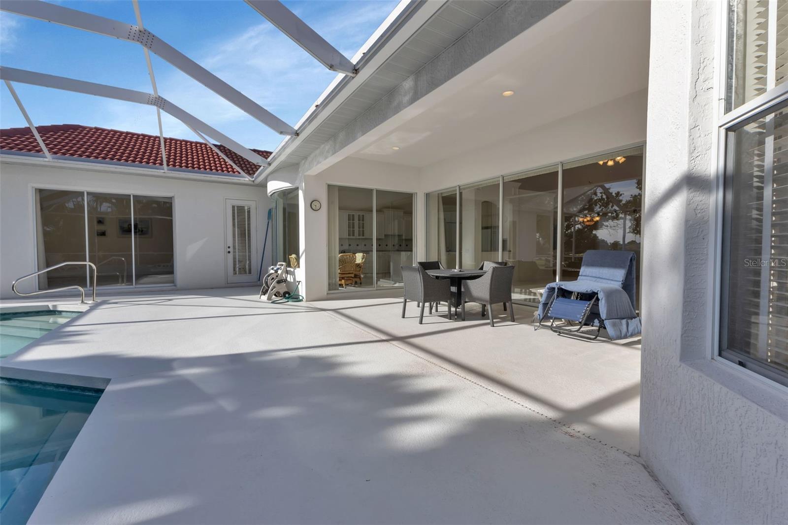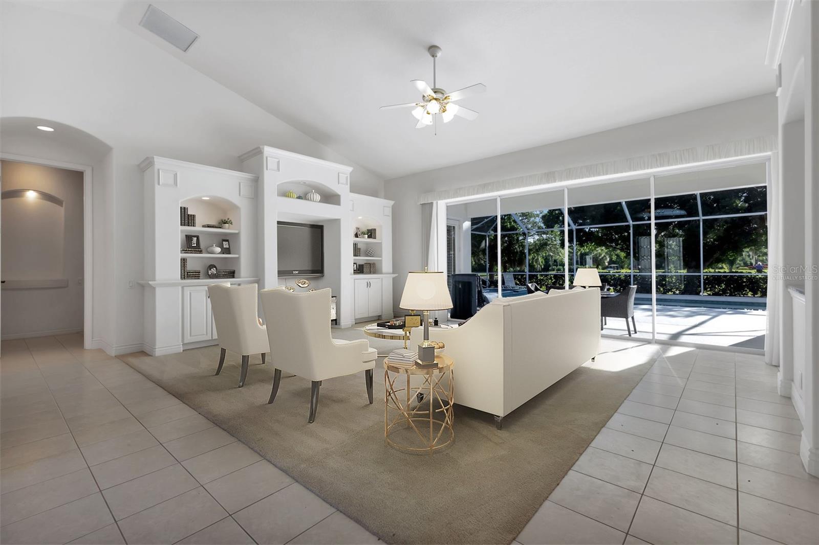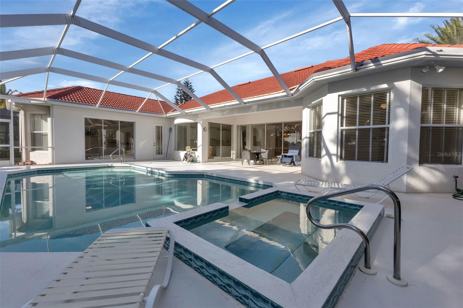One or more photo(s) has been virtually staged. Welcome to your dream home nestled within the serene confines of Pelican Pointe Golf & Country Club in Venice, Florida. This stunning 3-bedroom, 3-bathroom and LARGE BONUS room that overlooking the pool and the golf course offers the ultimate Florida lifestyle, combining luxurious living spaces with resort-style amenities and breathtaking natural beauty. This exquisite residence offers the perfect blend of luxury, comfort, and natural beauty, providing an unparalleled lifestyle experience. As you approach the home, a manicured landscape greets you, hinting at the elegance within. Upon entering, you're welcomed into a spacious and inviting foyer, where natural light floods the interiors, creating an airy and welcoming ambiance. The open floor plan seamlessly connects the living, dining, and kitchen areas, ideal for both intimate gatherings and grand entertaining. The living room features expansive sliders that frame breathtaking views of the lush greenery of the golf course, serving as a picturesque backdrop for everyday living. Large Kitchen with plenty of cabinetry and storage. Adjacent to the kitchen, the dining area offers a graceful setting for enjoying meals with family and friends, with sliding glass doors providing seamless access to the outdoor oasis beyond. Step outside to discover your own paradise—a large lanai with a sparkling pool and spa, surrounded by tropical landscaping with a beautiful view of the Golf Course. Whether you're lounging in the sun, taking a refreshing dip, or enjoying dining under the stars, this outdoor retreat is designed for relaxation and rejuvenation. The master suite is a luxurious sanctuary, offering a peaceful retreat from the stresses of daily life. Featuring a spacious bedroom with a view, a spa-like ensuite bathroom with dual vanities, a soaking tub, and a walk-in shower, as well as a generously sized walk-in closets, this serene haven exudes comfort and elegance. Two additional bedrooms, each with their own ensuite bathrooms, offer comfortable accommodations for family members or guests, ensuring everyone enjoys privacy and convenience. With its prime location in Pelican Pointe Golf & Country Club, residents enjoy access to an array of world-class amenities, including championship golf, tennis courts, fitness center, clubhouse, and more, providing endless opportunities for recreation and relaxation. Welcome home to Pelican Pointe. Some images have been virtually staged to better showcase the true potential of rooms and spaces in the home.
