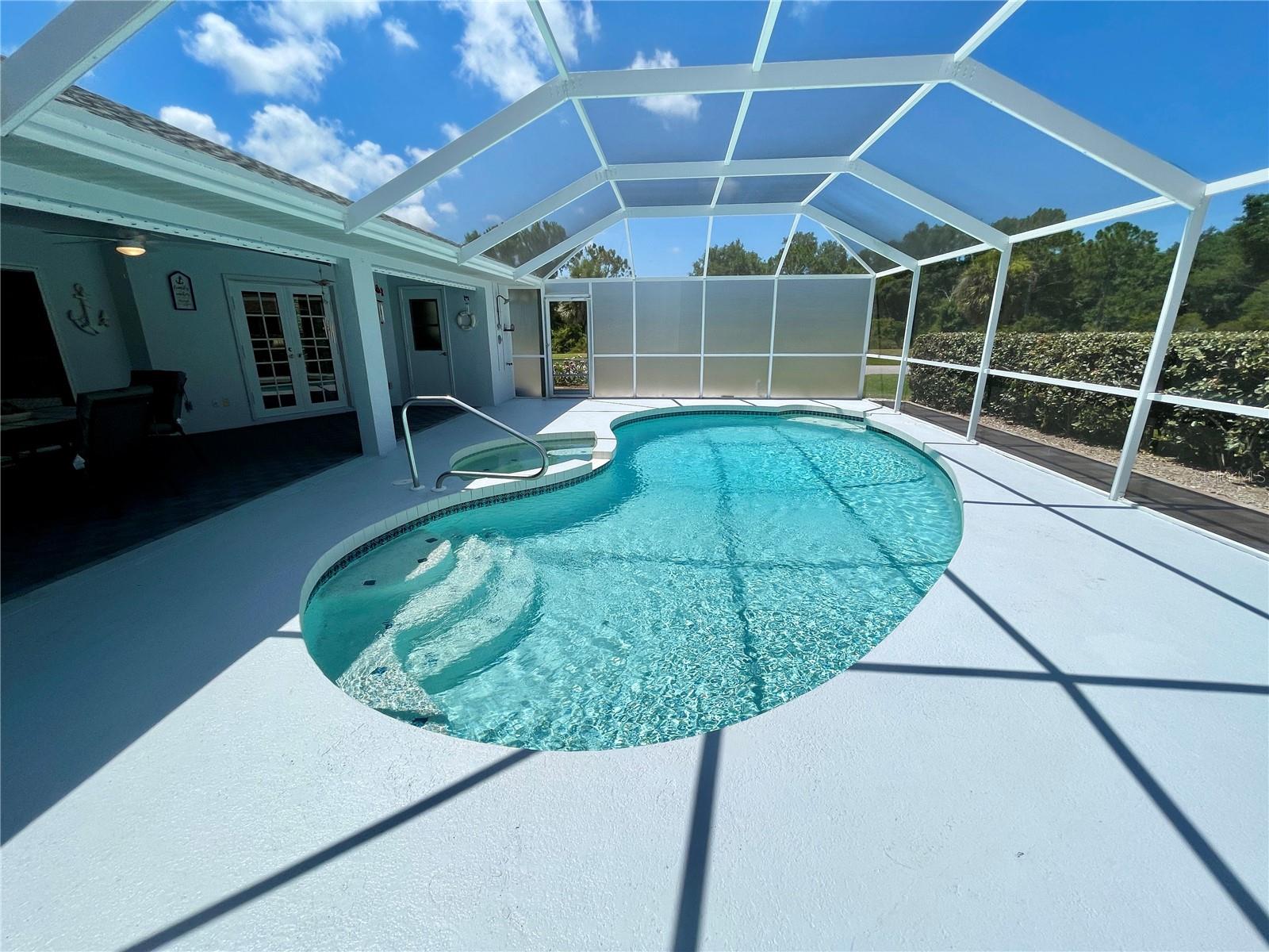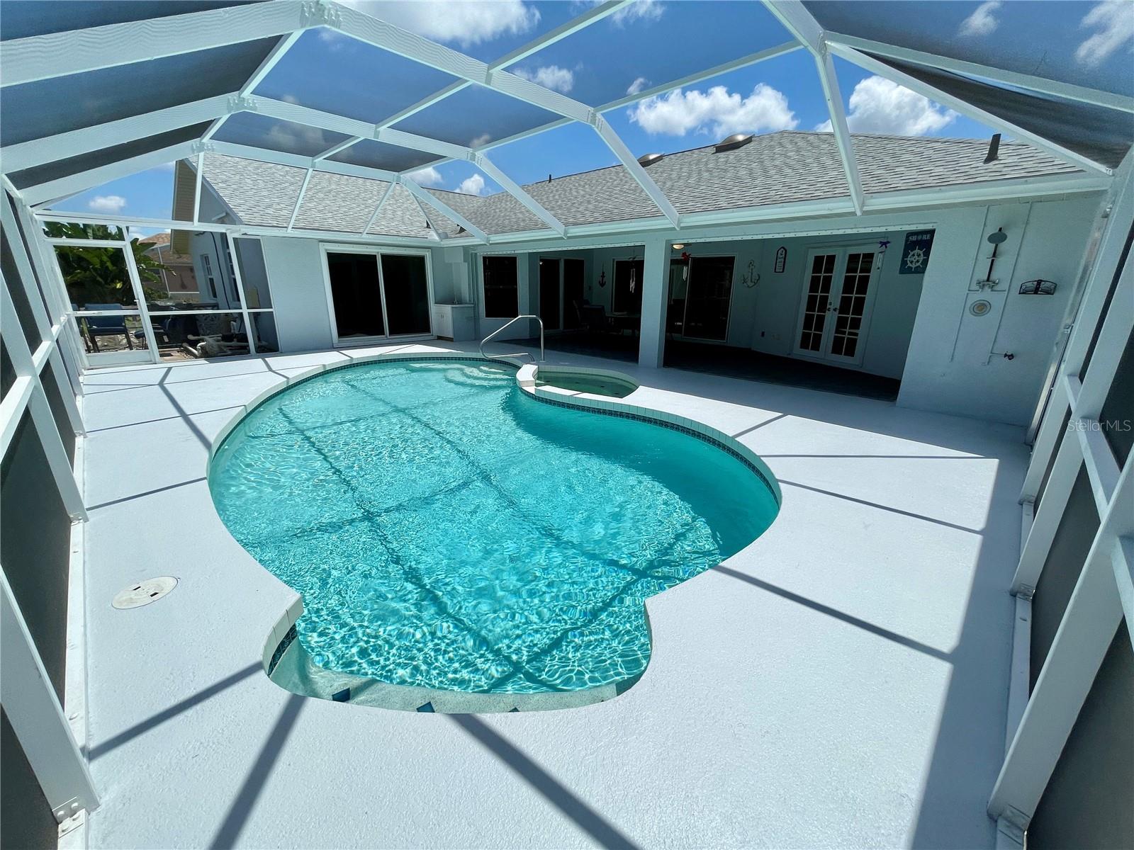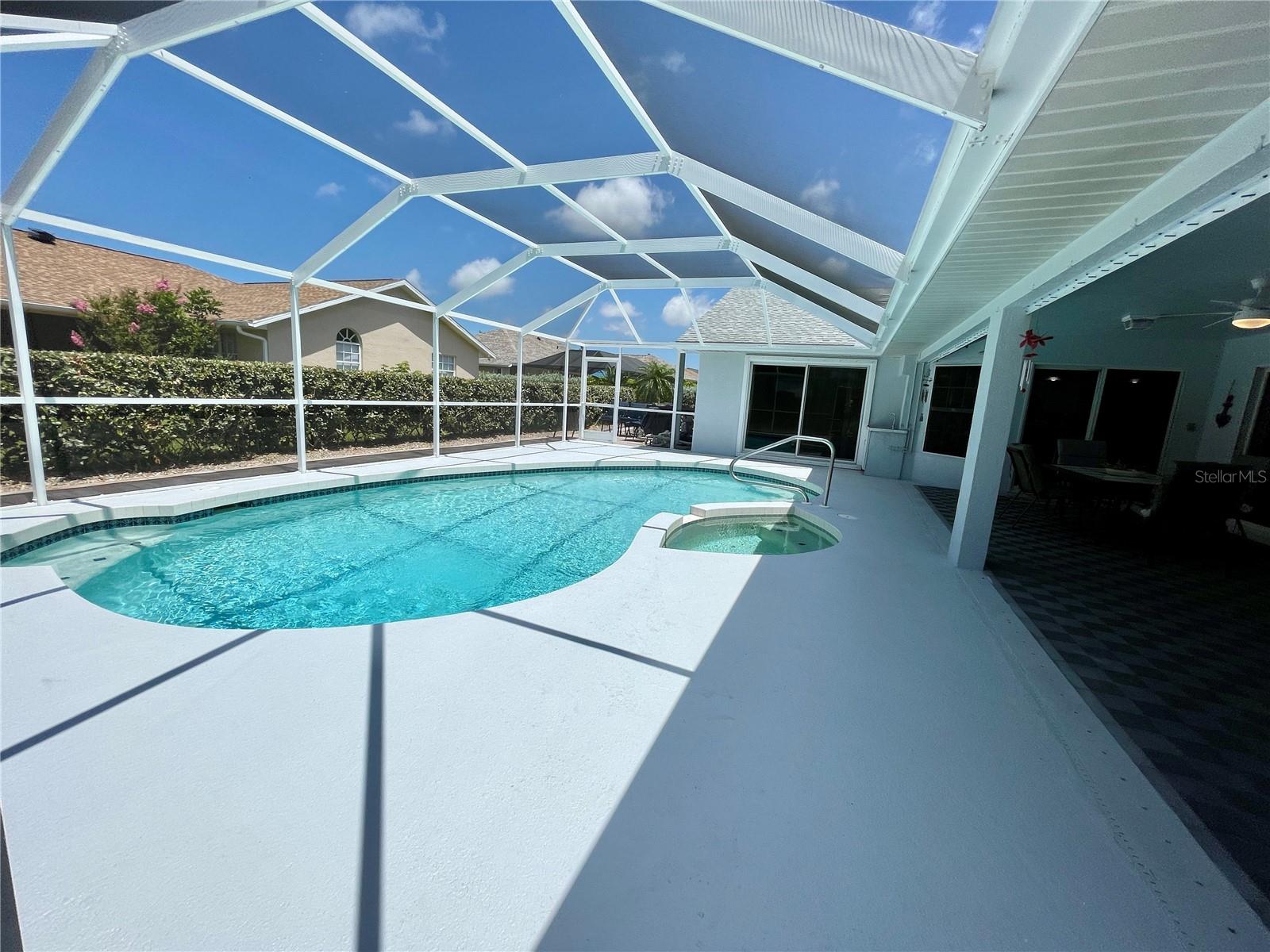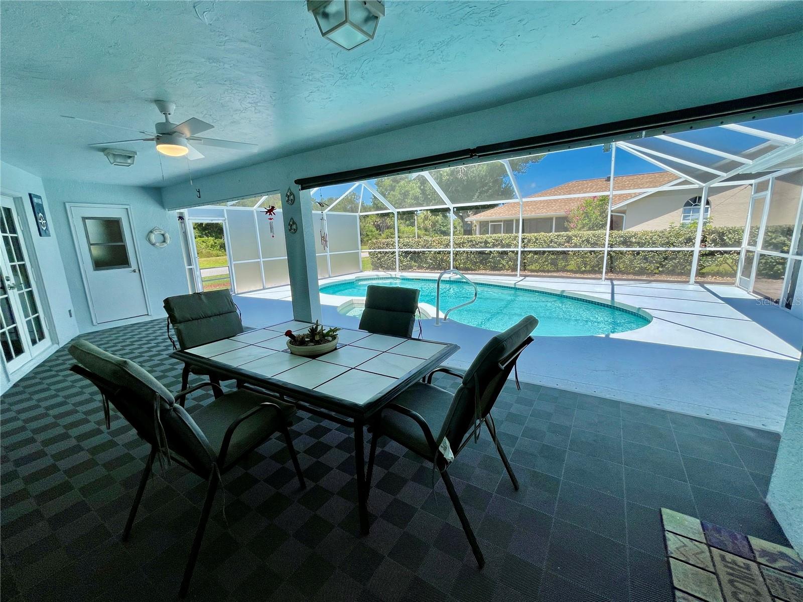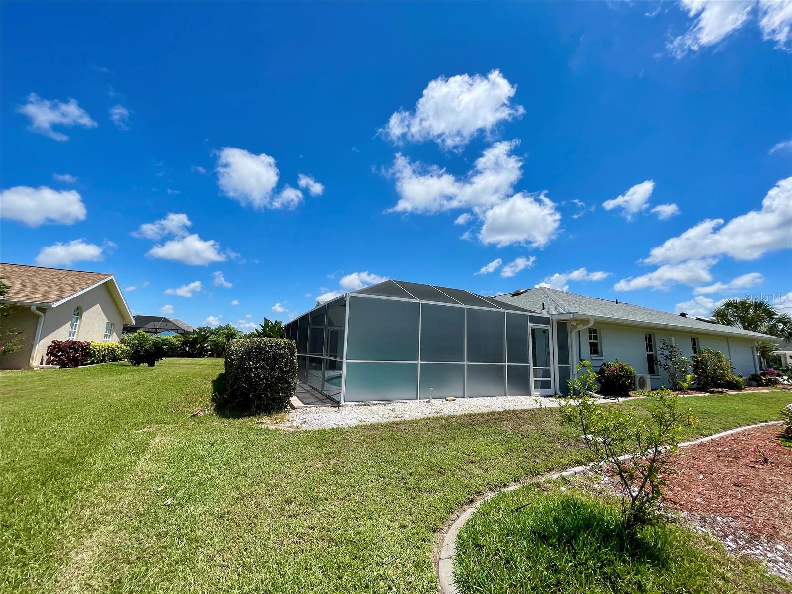 Beautifully updated home located in desirable Gulf View Estates is waiting for you to take a peek and fall in love! This 4 bed, 2 1/2 bath, 2,415sf home with an oversized 2 car garage is located just 2 miles from Manasota Beach, boating, fishing, close to shopping, restaurants and quaint downtown Venice and Englewood, bike trails, parks, golf, excellent schools, and so much more! There is tile throughout, freshly painted interior and exterior, fans in almost every room, updated light fixtures, cathedral ceilings in the main living area, wired with mesh routers making this a smart home, solar panels over the storage space along the north side of the home that collects power to be used with a transfer general hookup located in the garage to keep the refrigerator running in an outage, skylights, hurricane windows and doors (also has shutters) new roof, garage door opener, and granite lock resurfaced driveway are just a few updates done to this lovely home. The front entry is screened. The living room has a 178" screen projection TV that conveys with the home, and sliders that look out to the outdoor living space. The dining room is to the right of the foyer. The 2nd bedroom has a large closet and windows that face the front yard. The Huge master bedroom occupies the south side of the home. It has sliders out to the lanai, a mini split a/c system keeps the master bedroom cool and is energy efficient. The owner states it saves them approx. $200 a month. There are 2 walk-in closets, and a linen closet. The updated master bathroom has it's own hot water heater, 2 sinks, large hidden medicine cabinet, garden tub and walk in shower. The recently updated kitchen has beautiful white and gray Corian counters, stainless appliances (dishwasher & range replaced 2024, refrigerator and microwave 2021). The dinette is part of the kitchen and sits next to the sliders out to the pool. The laundry room has plenty of room for additional storage, the washer and dryer were replaced in 2022. The Family room is open to the kitchen. It also has sliders out to the lanai. The guest side of the home has a pocket door, allowing for privacy. The 3rd and 4th bedrooms are comfortable sized rooms that are divided by the newly updated guest bathroom. There is a walk in shower and large vanity. The outdoor living space has a natural fence for privacy along the back of the lot. There is privacy screening on the street side of the cage and a patio area outside of the cage. There is a pool bath accessible on the lanai, an outside shower and sink on the pool deck. The recently resurfaced pool/spa is heated. There is lots of room under roof as well as under cage to enjoy your little piece of paradise. The pool is perfect to relax or have fun with family and friends! The bedroom TV's and garage refrigerator don't convey with the home.
