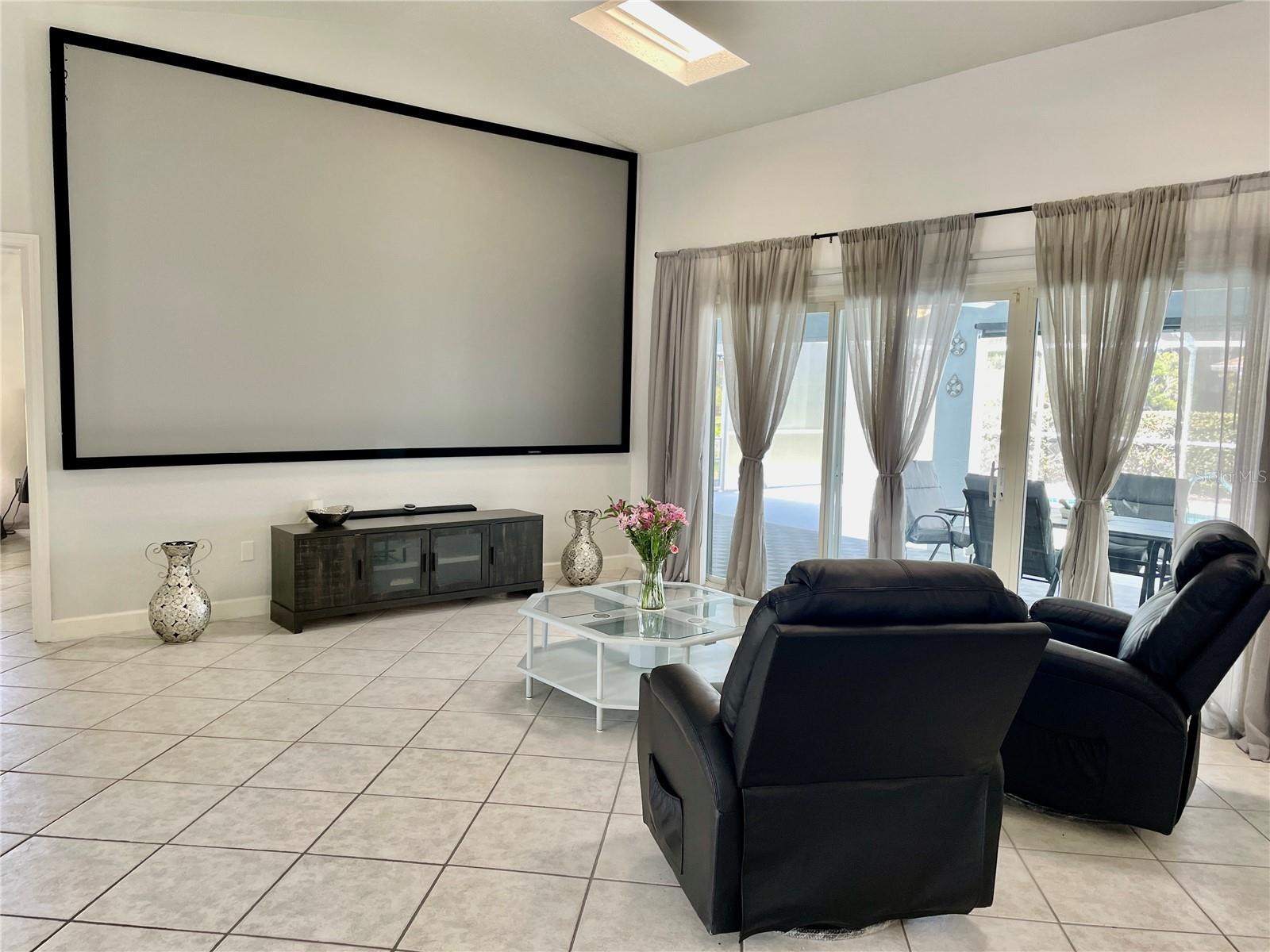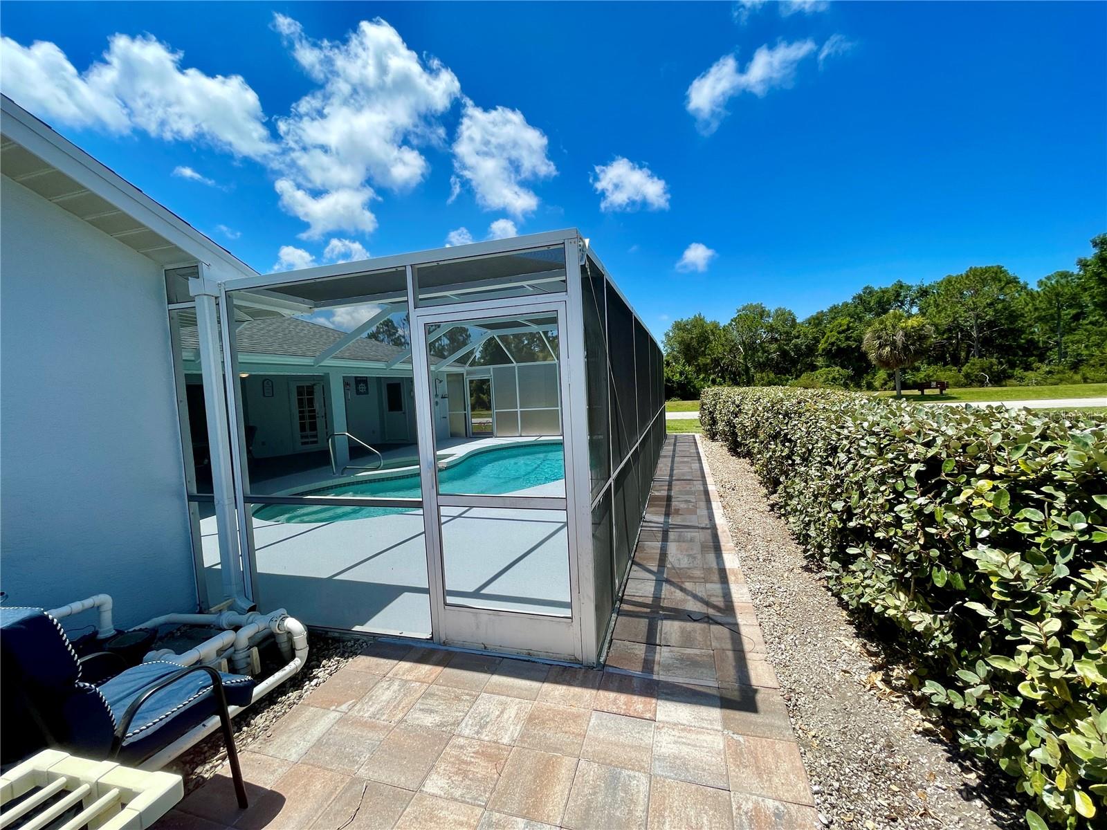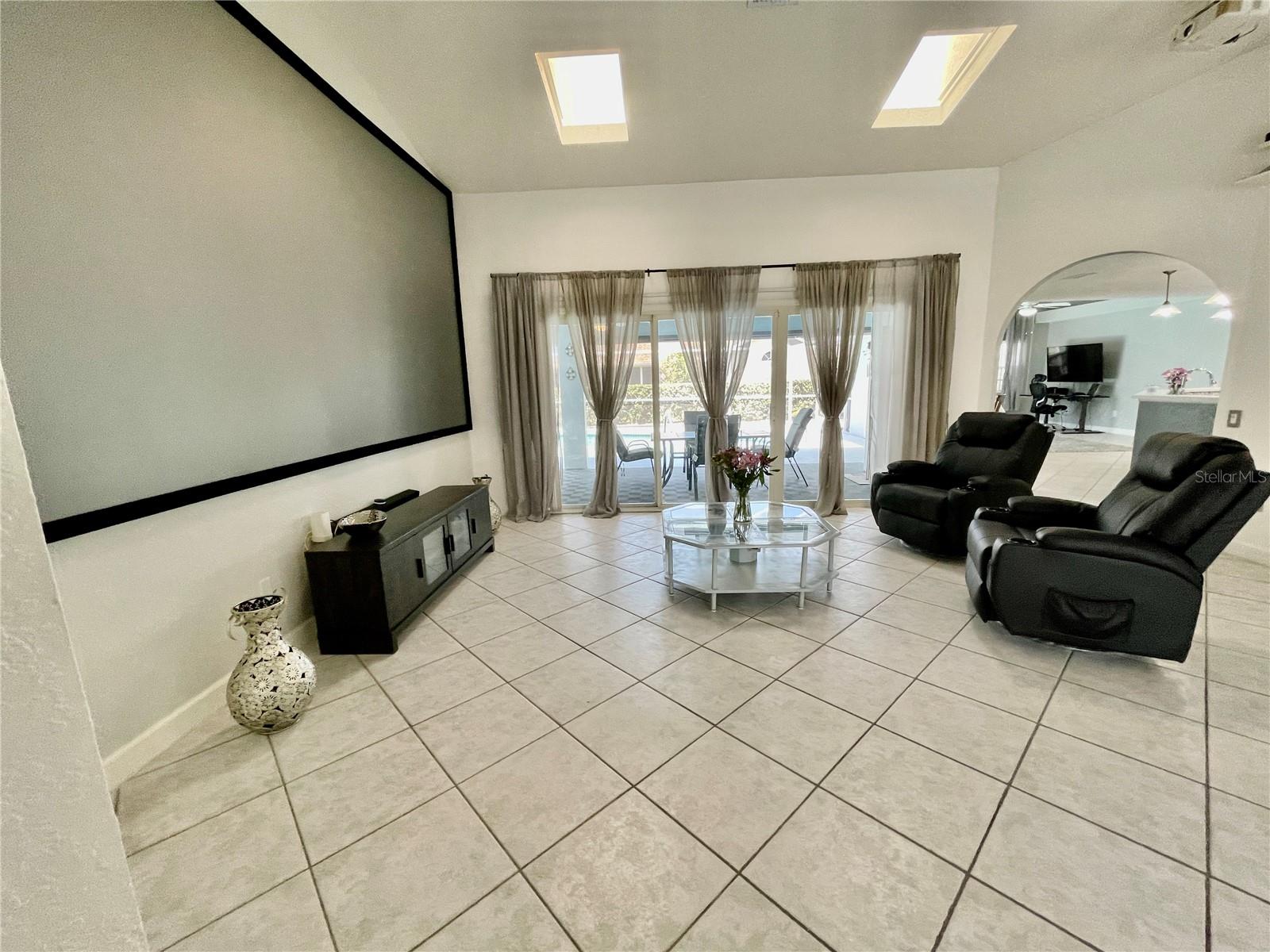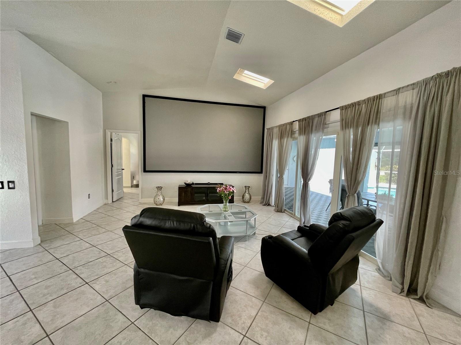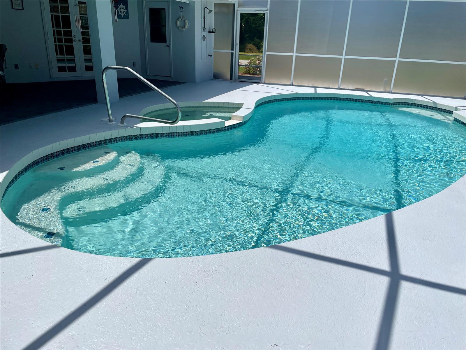 Beautifully updated home located in desirable Gulf View Estates is waiting for you to take a peek and fall in love! This 4 bed, 2 1/2 bath, 2,415sf home with an oversized 2 car garage is located just 2 miles from Manasota Beach, boating, fishing, close to shopping, restaurants and quaint downtown Venice and Englewood, bike trails, parks, golf, excellent schools, and so much more! There is tile throughout, freshly painted interior and exterior, fans in almost every room, updated light fixtures, cathedral ceilings in the main living area, wired with mesh routers making this a smart home, solar panels over the storage space along the north side of the home that collects power to be used with a transfer general hookup located in the garage to keep the refrigerator running in an outage, skylights, hurricane windows and doors (also has shutters) new roof, garage door opener, and granite lock resurfaced driveway are just a few updates done to this lovely home. The front entry is screened. The living room has a 178" screen projection TV that conveys with the home, and sliders that look out to the outdoor living space. The dining room is to the right of the foyer. The 2nd bedroom has a large closet and windows that face the front yard. The Huge master bedroom occupies the south side of the home. It has sliders out to the lanai, a mini split a/c system keeps the master bedroom cool and is energy efficient. The owner states it saves them approx. $200 a month. There are 2 walk-in closets, and a linen closet. The updated master bathroom has it's own hot water heater, 2 sinks, large hidden medicine cabinet, garden tub and walk in shower. The recently updated kitchen has beautiful white and gray Corian counters, stainless appliances (dishwasher & range replaced 2024, refrigerator and microwave 2021). The dinette is part of the kitchen and sits next to the sliders out to the pool. The laundry room has plenty of room for additional storage, the washer and dryer were replaced in 2022. The Family room is open to the kitchen. It also has sliders out to the lanai. The guest side of the home has a pocket door, allowing for privacy. The 3rd and 4th bedrooms are comfortable sized rooms that are divided by the newly updated guest bathroom. There is a walk in shower and large vanity. The outdoor living space has a natural fence for privacy along the back of the lot. There is privacy screening on the street side of the cage and a patio area outside of the cage. There is a pool bath accessible on the lanai, an outside shower and sink on the pool deck. The recently resurfaced pool/spa is heated. There is lots of room under roof as well as under cage to enjoy your little piece of paradise. The pool is perfect to relax or have fun with family and friends! The bedroom TV's and garage refrigerator don't convey with the home.