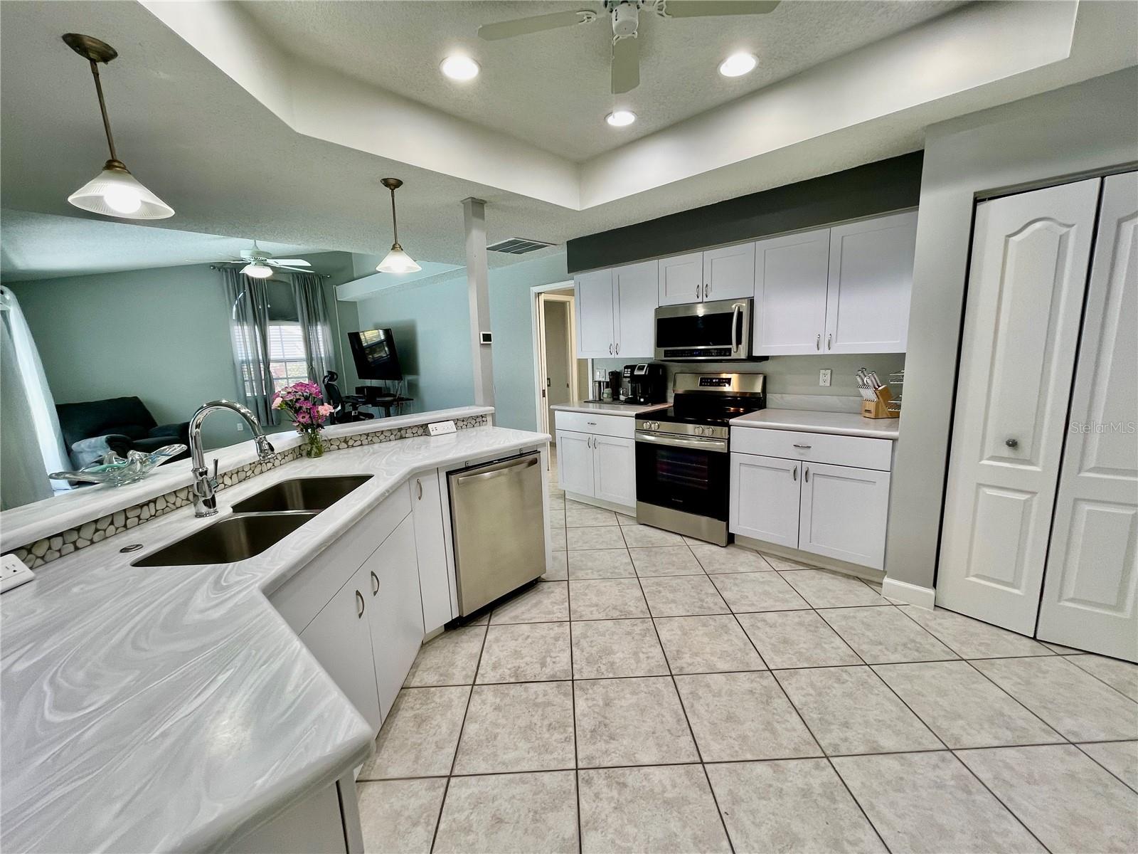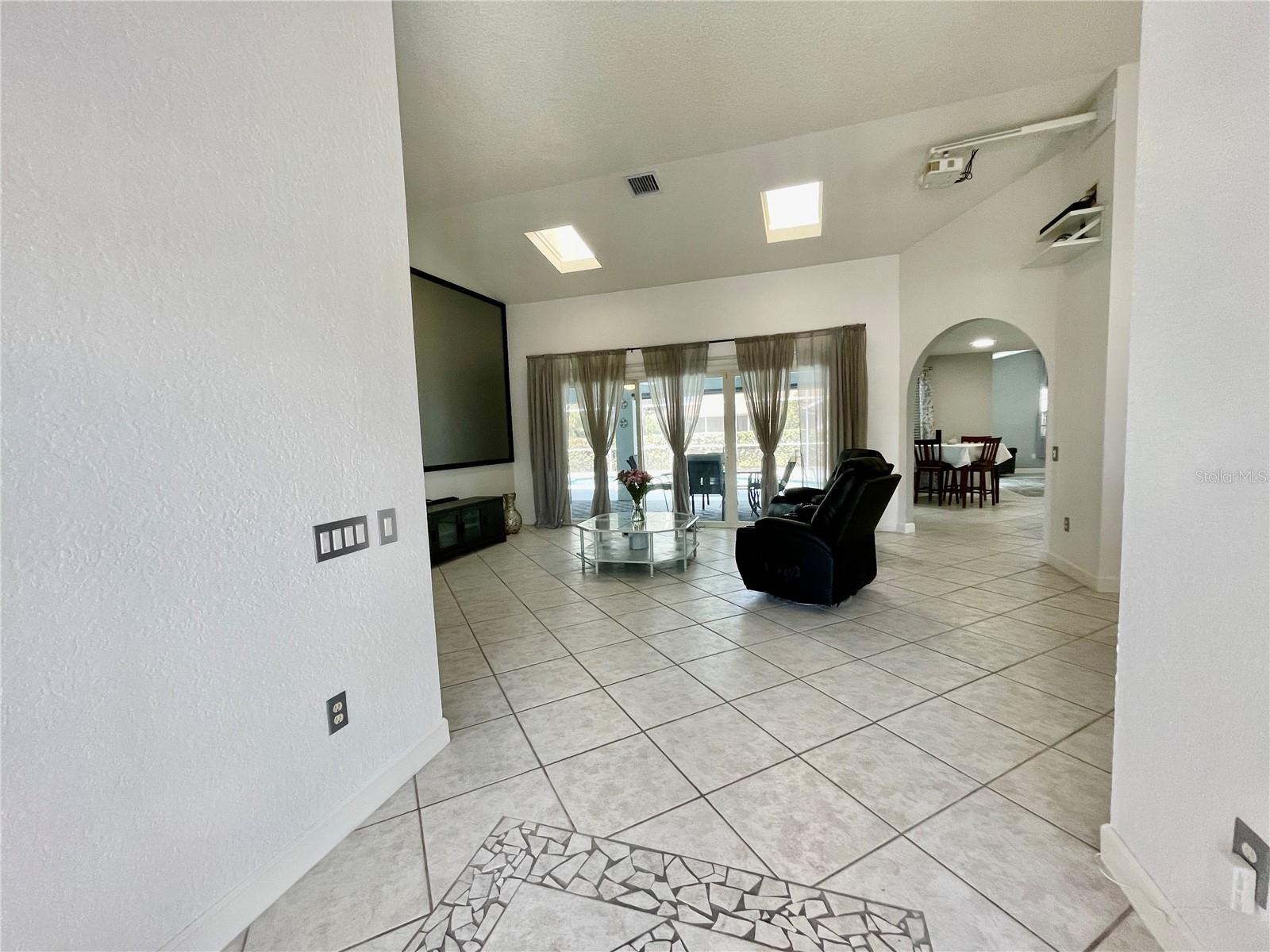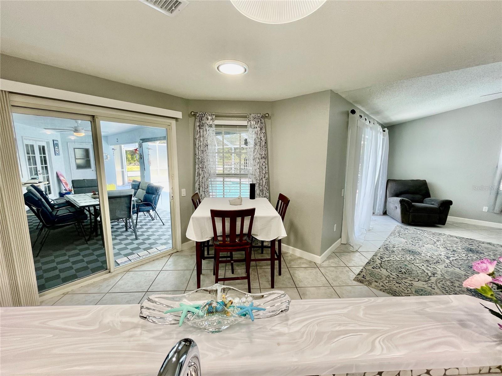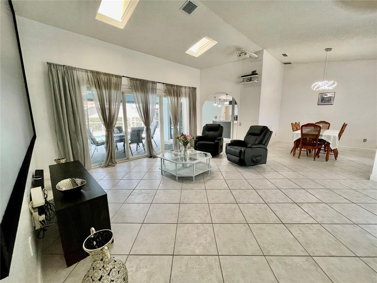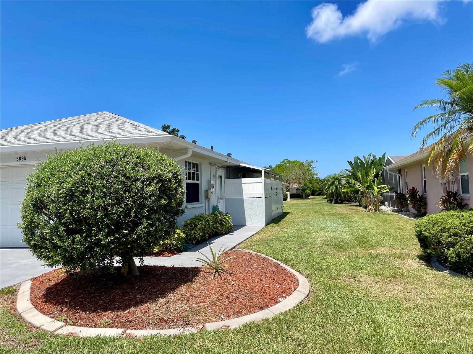 Beautifully updated home located in desirable Gulf View Estates is waiting for you to take a peek and fall in love! This 4 bed, 2 1/2 bath, 2,415sf home with an oversized 2 car garage is located just 2 miles from Manasota Beach, boating, fishing, close to shopping, restaurants and quaint downtown Venice and Englewood, bike trails, parks, golf, excellent schools, and so much more! There is tile throughout, freshly painted interior and exterior, fans in almost every room, updated light fixtures, cathedral ceilings in the main living area, wired with mesh routers making this a smart home, solar panels over the storage space along the north side of the home that collects power to be used with a transfer general hookup located in the garage to keep the refrigerator running in an outage, skylights, hurricane windows and doors (also has shutters) new roof, garage door opener, and granite lock resurfaced driveway are just a few updates done to this lovely home. The front entry is screened. The living room has a 178" screen projection TV that conveys with the home, and sliders that look out to the outdoor living space. The dining room is to the right of the foyer. The 2nd bedroom has a large closet and windows that face the front yard. The Huge master bedroom occupies the south side of the home. It has sliders out to the lanai, a mini split a/c system keeps the master bedroom cool and is energy efficient. The owner states it saves them approx. $200 a month. There are 2 walk-in closets, and a linen closet. The updated master bathroom has it's own hot water heater, 2 sinks, large hidden medicine cabinet, garden tub and walk in shower. The recently updated kitchen has beautiful white and gray Corian counters, stainless appliances (dishwasher & range replaced 2024, refrigerator and microwave 2021). The dinette is part of the kitchen and sits next to the sliders out to the pool. The laundry room has plenty of room for additional storage, the washer and dryer were replaced in 2022. The Family room is open to the kitchen. It also has sliders out to the lanai. The guest side of the home has a pocket door, allowing for privacy. The 3rd and 4th bedrooms are comfortable sized rooms that are divided by the newly updated guest bathroom. There is a walk in shower and large vanity. The outdoor living space has a natural fence for privacy along the back of the lot. There is privacy screening on the street side of the cage and a patio area outside of the cage. There is a pool bath accessible on the lanai, an outside shower and sink on the pool deck. The recently resurfaced pool/spa is heated. There is lots of room under roof as well as under cage to enjoy your little piece of paradise. The pool is perfect to relax or have fun with family and friends! The bedroom TV's and garage refrigerator don't convey with the home.