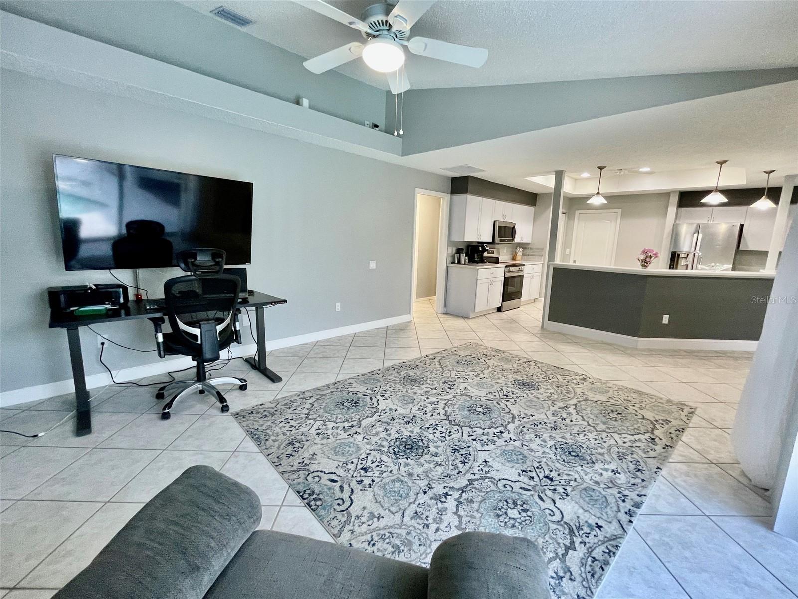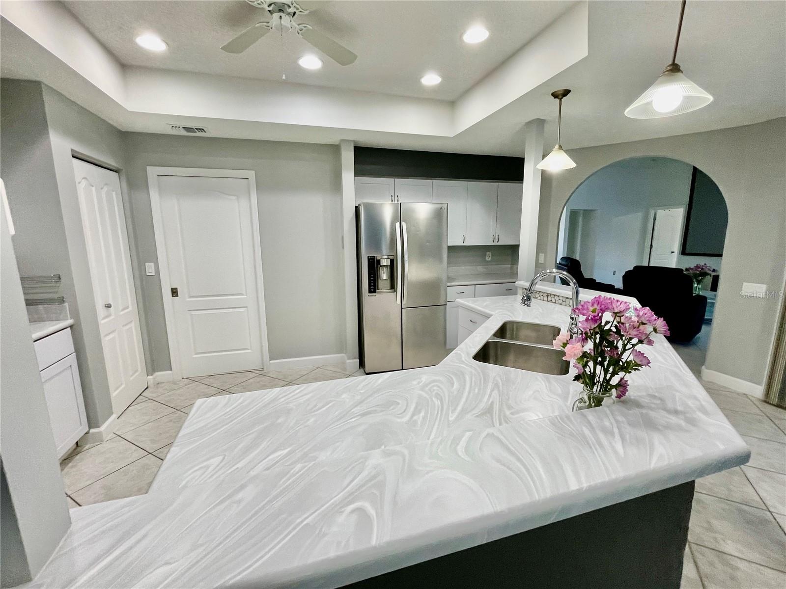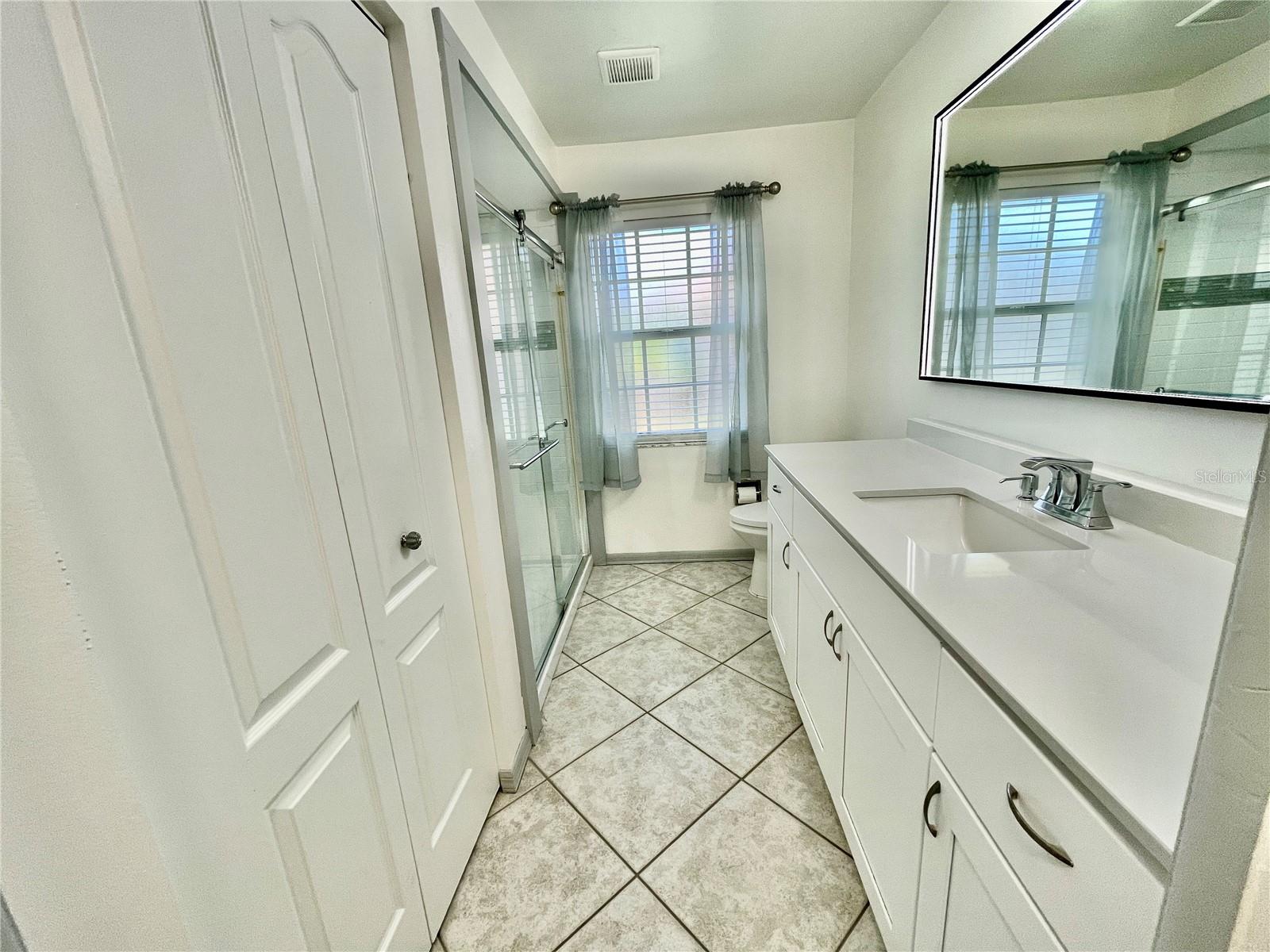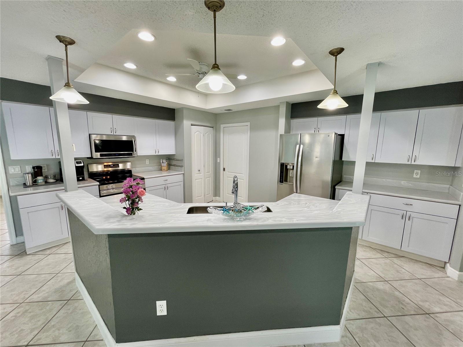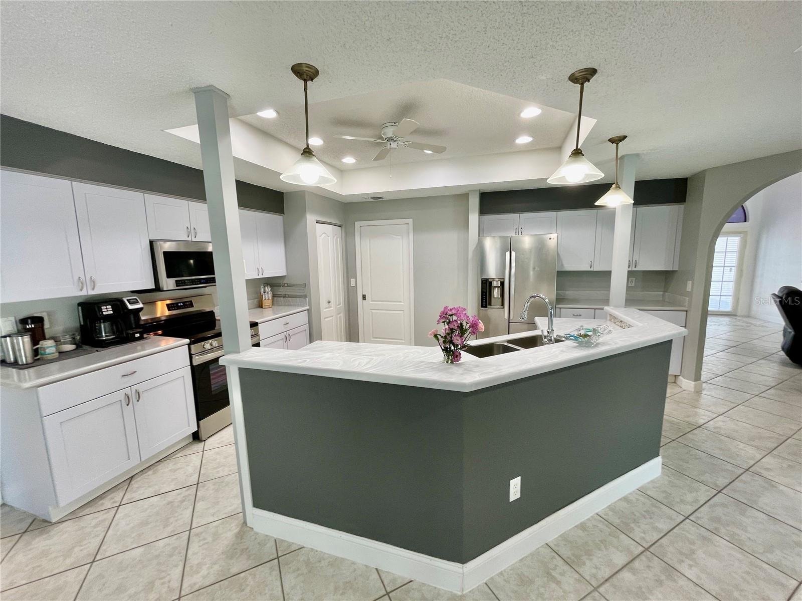 Beautifully updated home located in desirable Gulf View Estates is waiting for you to take a peek and fall in love! This 4 bed, 2 1/2 bath, 2,415sf home with an oversized 2 car garage is located just 2 miles from Manasota Beach, boating, fishing, close to shopping, restaurants and quaint downtown Venice and Englewood, bike trails, parks, golf, excellent schools, and so much more! There is tile throughout, freshly painted interior and exterior, fans in almost every room, updated light fixtures, cathedral ceilings in the main living area, wired with mesh routers making this a smart home, solar panels over the storage space along the north side of the home that collects power to be used with a transfer general hookup located in the garage to keep the refrigerator running in an outage, skylights, hurricane windows and doors (also has shutters) new roof, garage door opener, and granite lock resurfaced driveway are just a few updates done to this lovely home. The front entry is screened. The living room has a 178" screen projection TV that conveys with the home, and sliders that look out to the outdoor living space. The dining room is to the right of the foyer. The 2nd bedroom has a large closet and windows that face the front yard. The Huge master bedroom occupies the south side of the home. It has sliders out to the lanai, a mini split a/c system keeps the master bedroom cool and is energy efficient. The owner states it saves them approx. $200 a month. There are 2 walk-in closets, and a linen closet. The updated master bathroom has it's own hot water heater, 2 sinks, large hidden medicine cabinet, garden tub and walk in shower. The recently updated kitchen has beautiful white and gray Corian counters, stainless appliances (dishwasher & range replaced 2024, refrigerator and microwave 2021). The dinette is part of the kitchen and sits next to the sliders out to the pool. The laundry room has plenty of room for additional storage, the washer and dryer were replaced in 2022. The Family room is open to the kitchen. It also has sliders out to the lanai. The guest side of the home has a pocket door, allowing for privacy. The 3rd and 4th bedrooms are comfortable sized rooms that are divided by the newly updated guest bathroom. There is a walk in shower and large vanity. The outdoor living space has a natural fence for privacy along the back of the lot. There is privacy screening on the street side of the cage and a patio area outside of the cage. There is a pool bath accessible on the lanai, an outside shower and sink on the pool deck. The recently resurfaced pool/spa is heated. There is lots of room under roof as well as under cage to enjoy your little piece of paradise. The pool is perfect to relax or have fun with family and friends! The bedroom TV's and garage refrigerator don't convey with the home.
