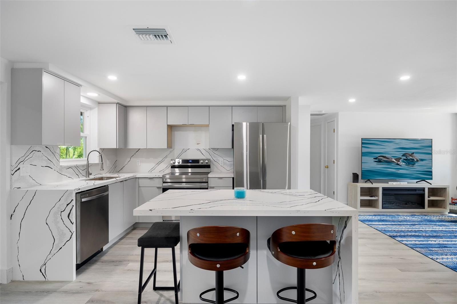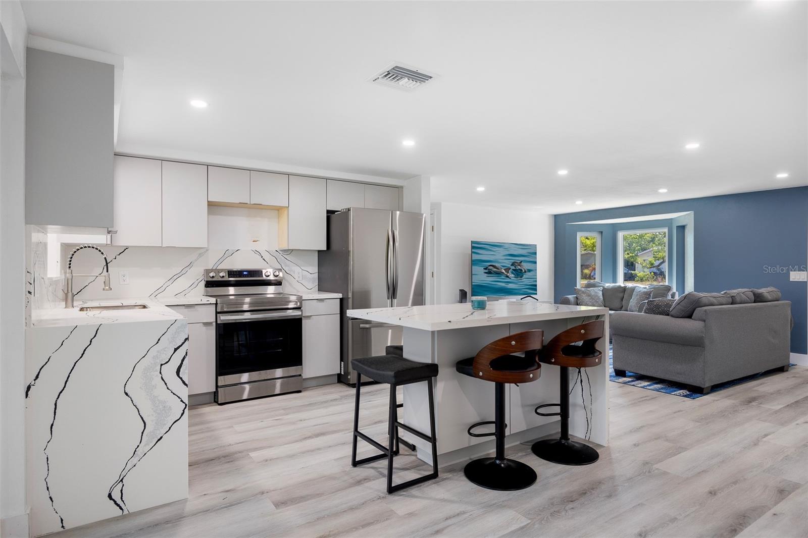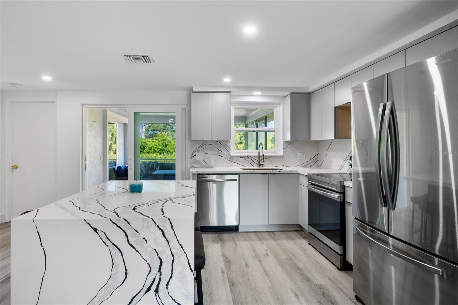 FANTASTIC LOCATION! FURNISHED! UPDATED 3 bedroom, 2 bath, 1-car garage home with back access, within walking distance, to Legacy Trail and docks on the intercoastal. Plenty of privacy provided by greenbelt and park with true western exposure to enjoy amazing sunsets. Seller upgrades include new impact windows, doors and sliders, hot water heater, HVAC, PEX repipe for entire home, well softener, luxury vinyl plank flooring, kitchen with quartz counters, waterfall kitchen island and stainless appliances, updated baths, tiled flooring and new screens on lanai plus new ceilings in living room and garage. Inviting open floor plan features living room with bay window, remodeled kitchen with breakfast bar and slider to lanai, primary bedroom with walk-in closet and access to lanai, two updated baths with new vanities and walk-in showers and nicely sized guest bedrooms. Enjoy entertaining guests on the covered screened lanai overlooking the large backyard with serene preserve views. There is also an outdoor shed with electric for workshop or additional storage, plenty of space for pets to roam and room for a pool. No building behind the property will preserve the serene nature and wildlife views. Great neighborhood within walking distance to Shamrock Park and Nature Center offering docks, kayak launch, water where dogs can play and swim, playground, tennis, basketball, bicycling and hiking along the Venetian Waterway and Legacy Trail. Close to Venice Island, restaurants, shopping and outdoor events. South Venice Beach Ferry is only 5 minutes away! Don’t miss this incredible opportunity! Schedule your private showing today!