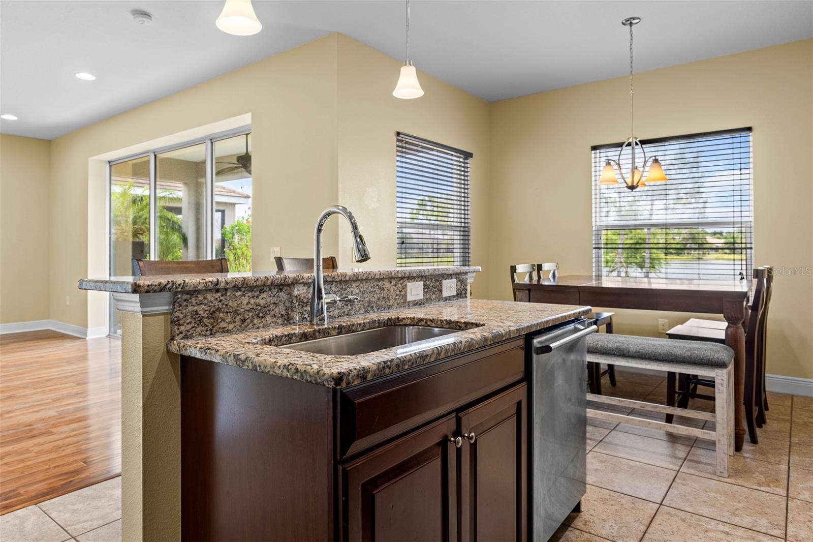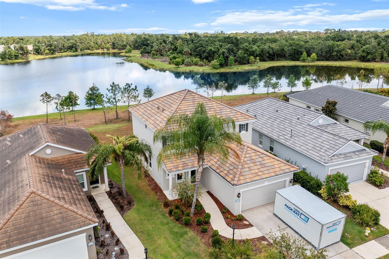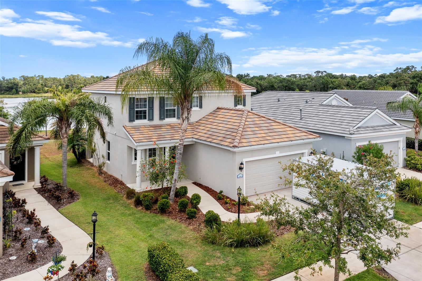 PRICED TO SELL! $70K BELOW APPRAISED VALUE! Beautiful 4 bedroom, 2.5 bath, 2-car garage, 2-story lakefront home nestled within the vibrant gated community of Grand Palm in Venice. As you step inside, you'll be greeted by an open floor plan featuring high ceilings, neutral tones and laminate flooring, creating a seamless flow throughout the home. The heart of the home is the upgraded kitchen, featuring cherrywood cabinetry, granite counters, stainless appliances including a gas range, and a convenient breakfast bar. The adjacent formal dining room and casual dining area offer the perfect settings for both intimate gatherings and lively meals. Large pocket slider in the living room opens up to reveal water views, inviting the outdoors in and providing a serene backdrop for everyday living. The second floor offers the primary suite, complete with a walk-in closet and a private bath boasting dual sinks and a walk-in shower plus three well-appointed bedrooms, a separate full bath, and a laundry area ensure comfort and convenience for all residents. A half bath on the first level adds to the home's functionality. Step outside to the covered lanai, where you can savor the tranquility of the large private backyard with eastern exposure, perfect for enjoying your morning coffee while watching the sun rise over the lake. The property is equipped with hurricane shutters, an irrigation system, and a whole home water softener system, brand new hot water heater, while the landscaped exterior adds to the property's curb appeal. The area above the garage is carpeted and convenient for extra storage. Grand Palm offers an unparalleled lifestyle, with amenities including a resort-style pool, clubhouse, spa, open café kitchen, tiki pavilion, game room, fitness center, walking trails, dog parks, playground, basketball, tennis, bocce ball, pickleball and volleyball courts. The community also hosts numerous social activities, ensuring there's always something to enjoy. Conveniently located just 20 minutes from downtown Venice and its pristine beaches, this home also offers easy access to Wellen Park, known for its fine dining and entertainment. Great schools, golf, fishing, and boating are nearby also. Don't miss the chance to make this exceptional property your new Florida retreat.