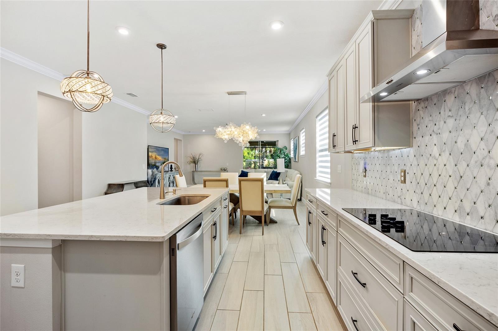 Welcome to this stunning, like-new pool home situated in the popular Renaissance at West Villages community in Venice. This elegant and modern residence was built in 2022 and offers an impressive 3 bedrooms, 2.5 bathrooms, and a 2-car garage. As you step into this exquisite home, you'll be captivated by the contemporary design and the open floor plan, accentuated by elegant lighting and custom blinds. The 2,373 square feet of living space boasts porcelain tile flooring throughout the main living area, creating a seamless flow. The heart of the home is the upgraded gourmet kitchen, featuring quartz countertops, a tile backsplash, cooktop, stainless appliances with built-in oven and microwave, and a large center island with a breakfast bar. The living room, adorned with a slider to the lanai, is perfect for entertaining and enjoying the serene views. The primary suite is a luxurious retreat, complete with a tray ceiling, walk-in closet, and a private bath with dual sinks and a walk-in shower. Additionally, the home offers a flex room and bonus rooms that can be easily transformed into a den or office, catering to your specific lifestyle needs. Step outside to the covered lanai and take in the beauty of the screened heated saltwater pool with fountains, surrounded by beautiful outdoor lighting and tropical landscaping. The southeastern views ensure an abundance of Florida sunshine, creating a perfect setting for relaxation and entertainment. Storm panels are also included for hurricane protection. The Renaissance at West Villages is a Tuscan-style gated community offering an array of amenities, including a clubhouse with a gym, full kitchen, social activities, resort-style heated pool, tennis, pickleball, playground, and walking trails. Low HOA fees add to the appeal of this remarkable community. Conveniently located near US-41, Wellen Park with restaurants and shopping, schools, golf courses, Warm Mineral Springs Park, and just a short drive to the pristine beaches of Venice and Manasota Key, this home offers the perfect blend of luxury and convenience. Don't miss the opportunity to make this exceptional property your own. Schedule your private showing today!