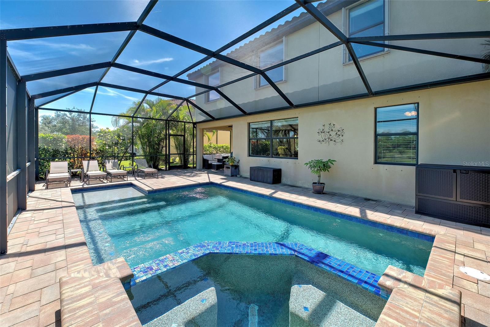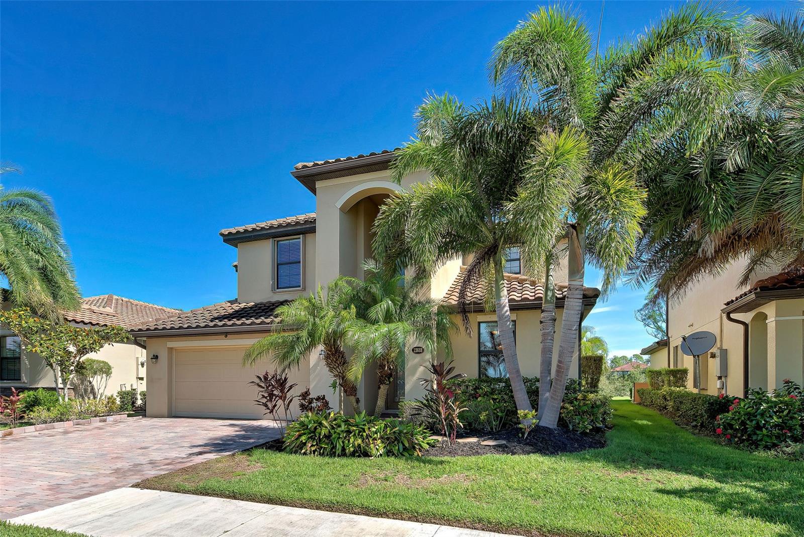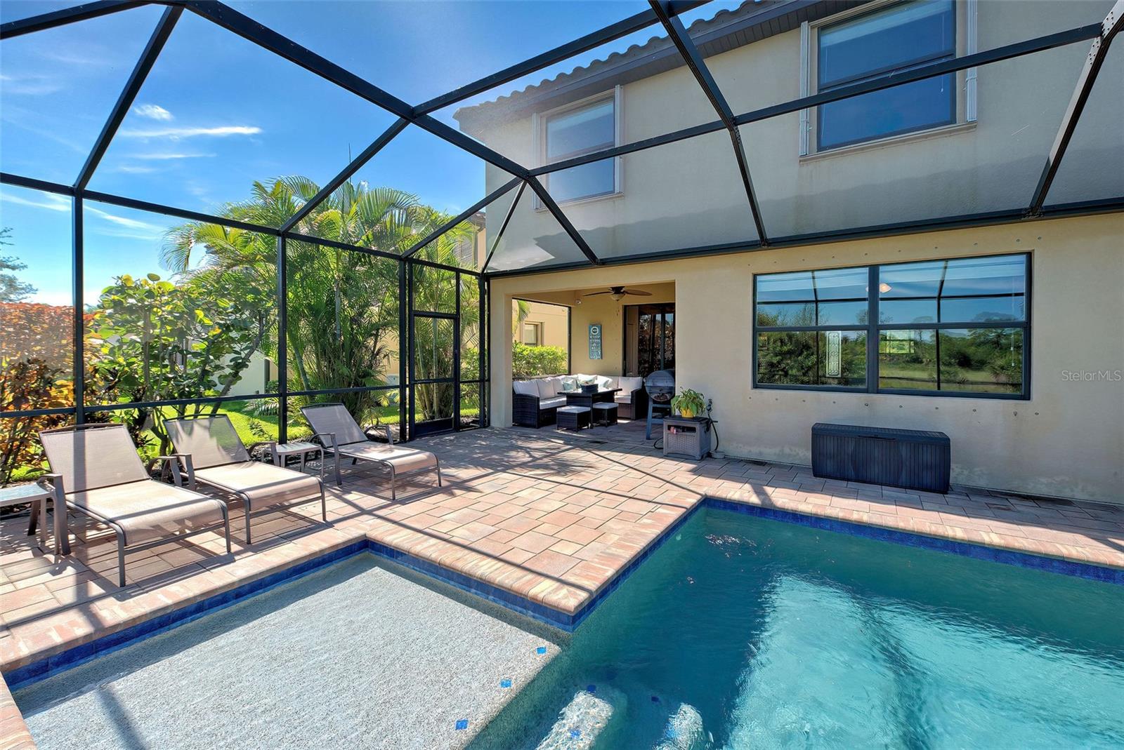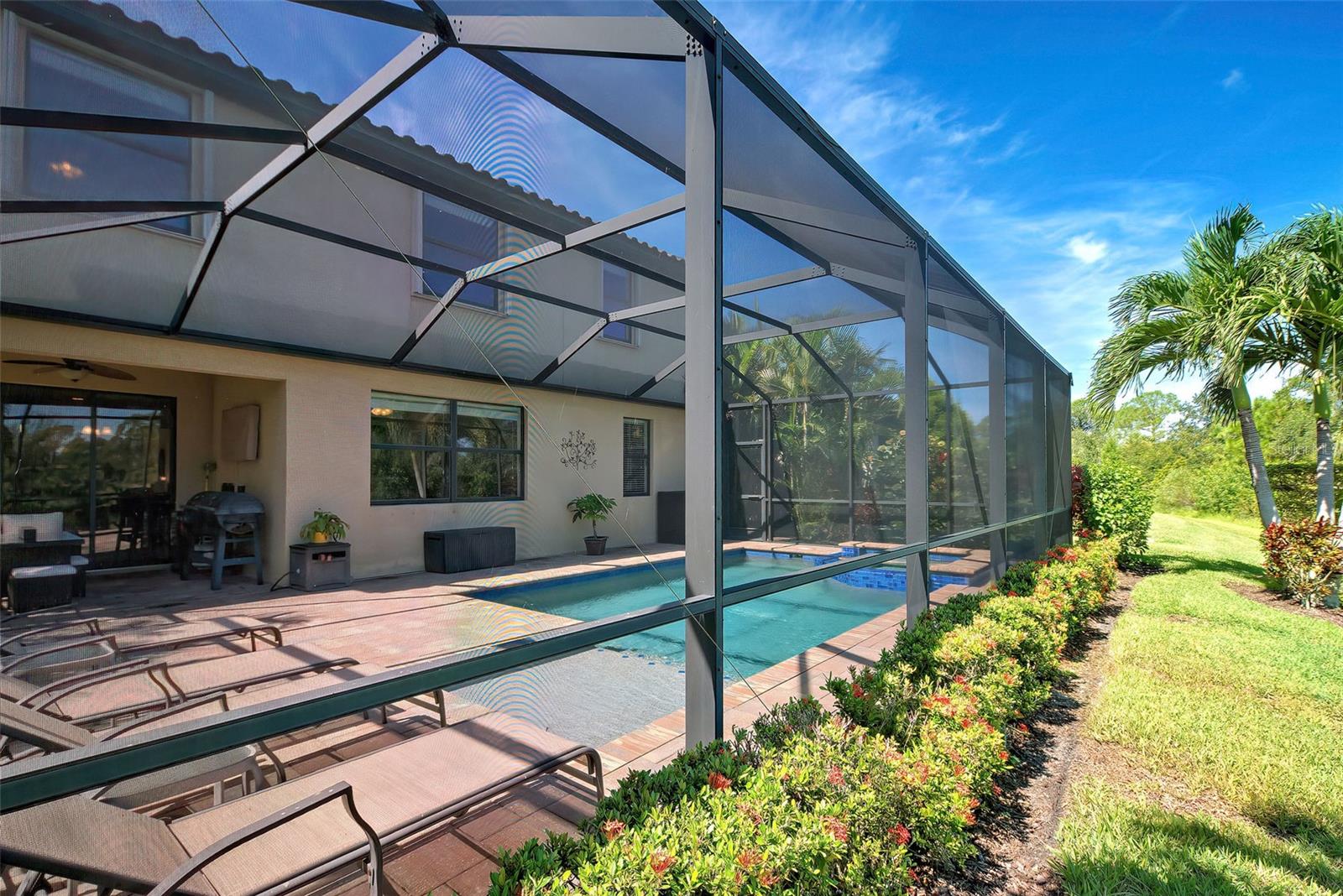 Now is the time to embrace the pinnacle of resort-style living at Gran Paradiso. This 5-bedroom, 3-bathroom pool home, the Monte Carlo model, is a stunner. The home features a 3-car garage, spacious living, dining and family rooms with a beautiful kitchen centered by an island for the chef in the family. All counter surfaces throughout the home are adorned with beautiful granite. The first floor of the residence also features a bedroom and full bathroom. The primary bedroom with en suite bathroom, 3 other bedrooms and a hall bathroom are located on the 2nd floor. In addition, there is a large bonus room on the 2nd floor for additional entertaining. The home's pool w/spa is heated, saltwater, pebble tech coated and fully screened, facing north and overlooking a beautiful green space. If you are able to leave this gorgeous abode, Gran Paradiso awaits! First class amenities including community center, clubhouse, fitness center, pool, pickle ball and tennis courts, are just a few of the choices you will have at your disposal.