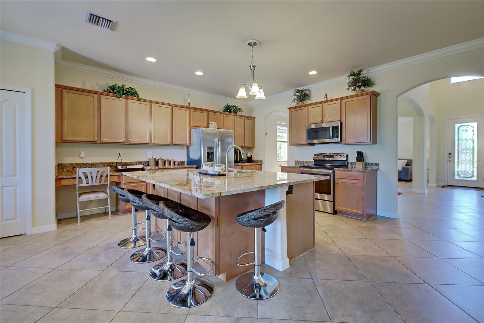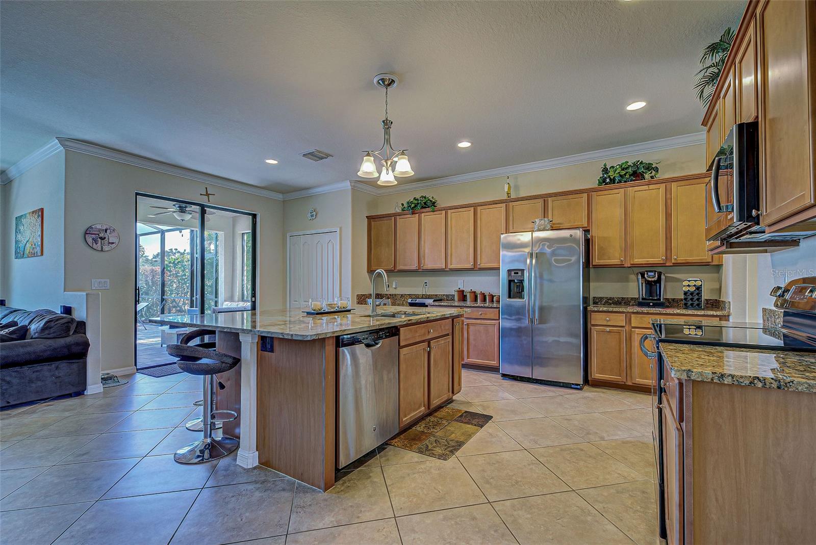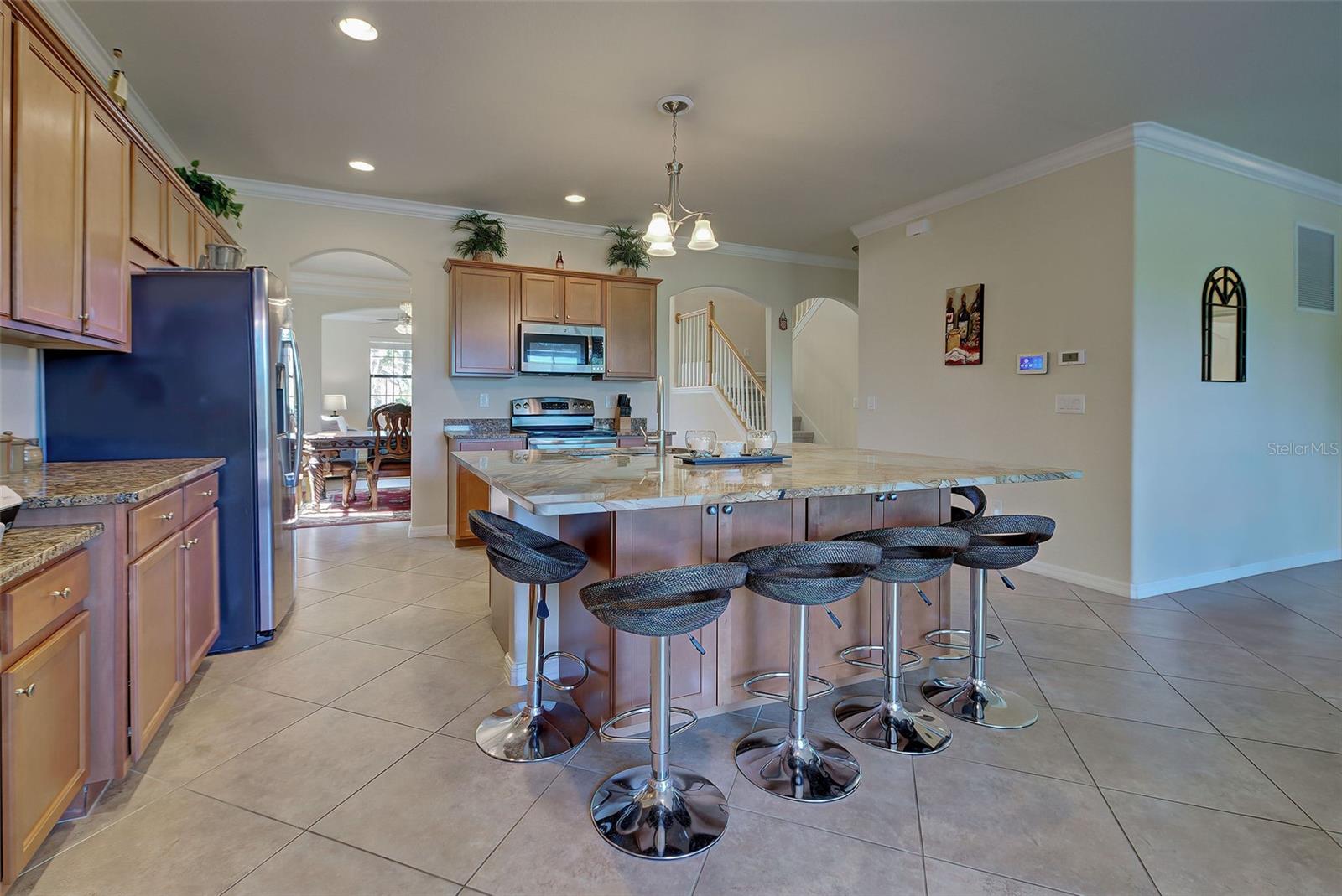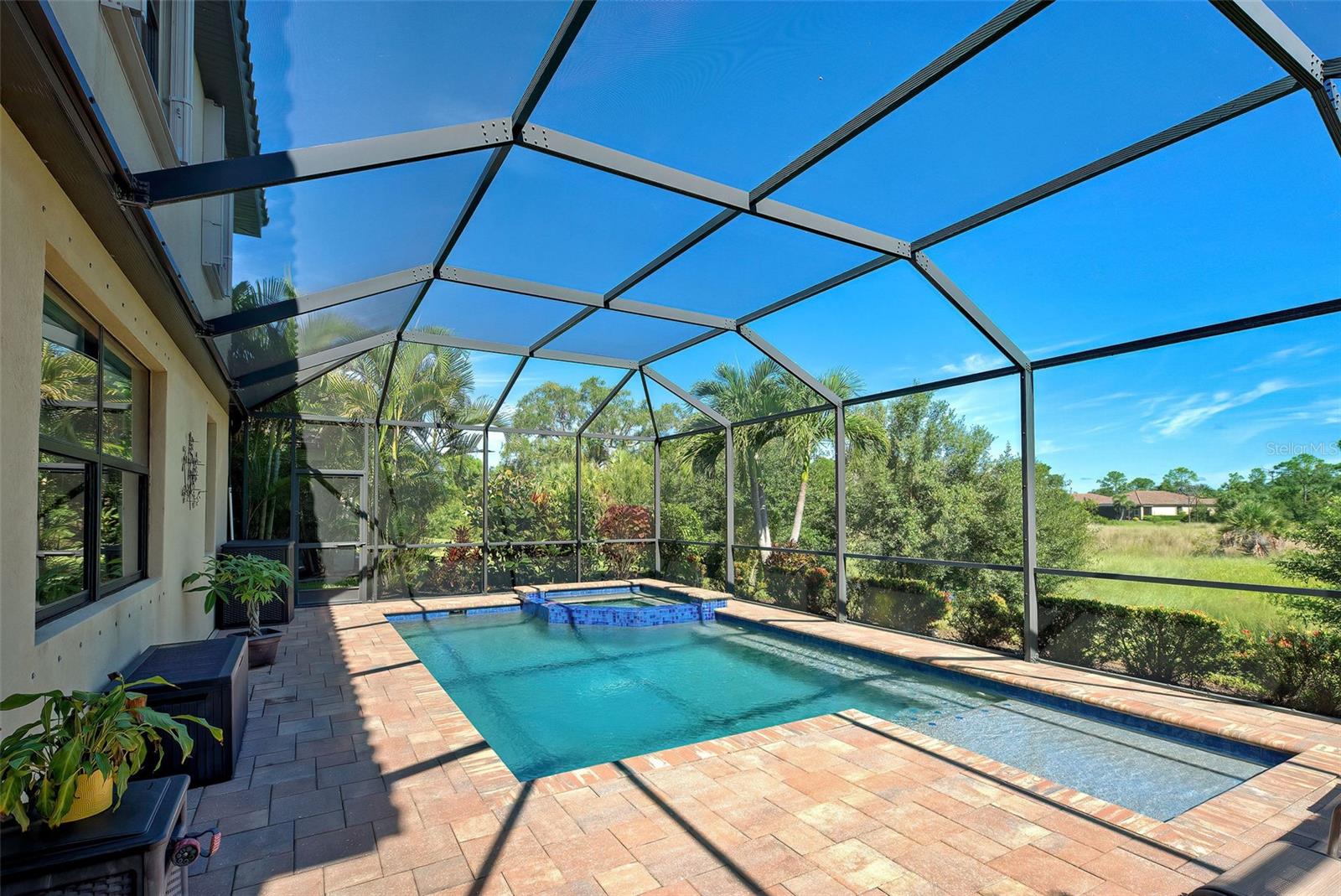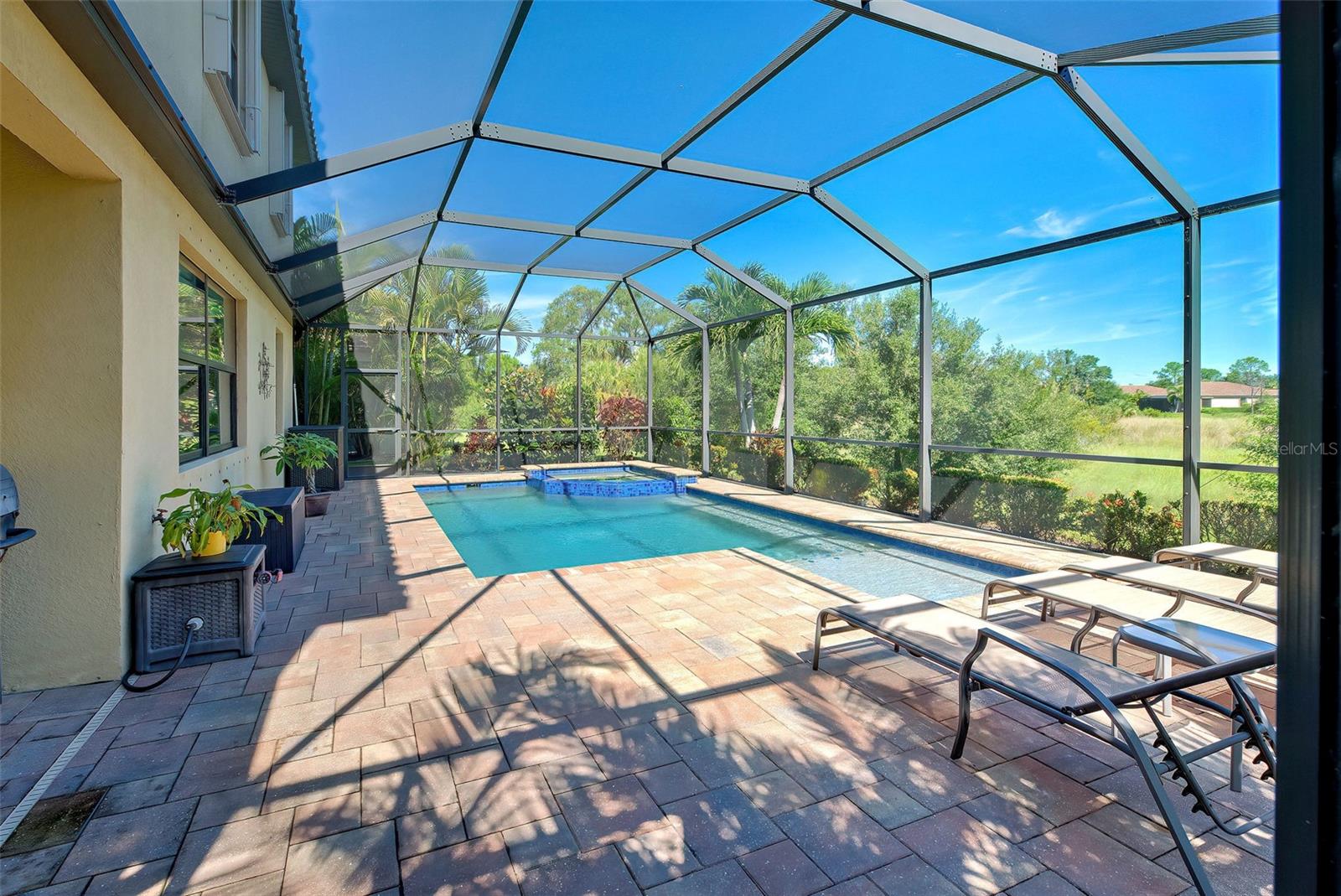 Now is the time to embrace the pinnacle of resort-style living at Gran Paradiso. This 5-bedroom, 3-bathroom pool home, the Monte Carlo model, is a stunner. The home features a 3-car garage, spacious living, dining and family rooms with a beautiful kitchen centered by an island for the chef in the family. All counter surfaces throughout the home are adorned with beautiful granite. The first floor of the residence also features a bedroom and full bathroom. The primary bedroom with en suite bathroom, 3 other bedrooms and a hall bathroom are located on the 2nd floor. In addition, there is a large bonus room on the 2nd floor for additional entertaining. The home's pool w/spa is heated, saltwater, pebble tech coated and fully screened, facing north and overlooking a beautiful green space. If you are able to leave this gorgeous abode, Gran Paradiso awaits! First class amenities including community center, clubhouse, fitness center, pool, pickle ball and tennis courts, are just a few of the choices you will have at your disposal.