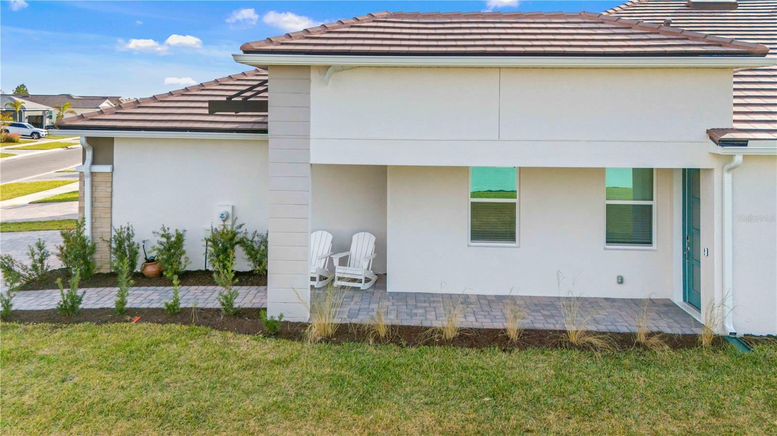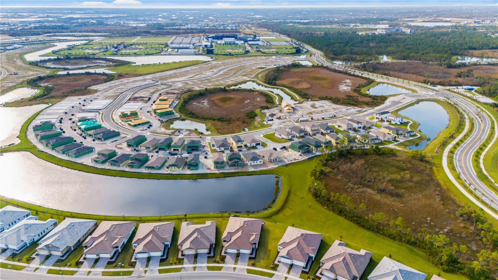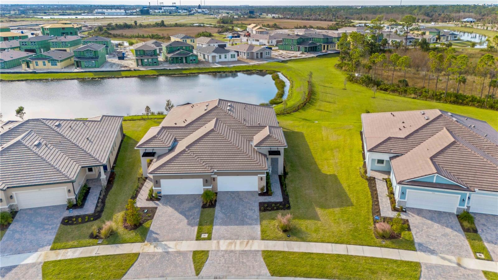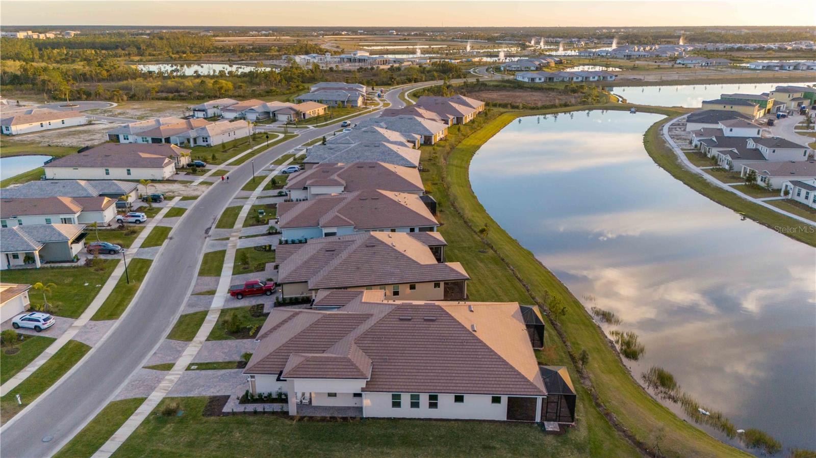 Welcome to your piece of paradise located in the highly sought after community of Wellen Park with countless top destinations nearby including Cool Today Park / Braves Stadium and endless dining options just around the corner. This new community within Wellen Park is a gated 55+ community that is golf cart friendly with many resort style amenities currently being added including TWO pools, a dog park, Hot Tub, 8 Pickle Ball Courts, a stadium court, and a Lifestyle Director on staff full time. Skip the wait of building and move right in to this better than new Villa! Upon arriving to your stunning new home you will notice great curb appeal, an attractive tile roof, paver driveway, brick accent walls, and plenty of room away from the next villa thanks to being on an oversized lot. Once inside you will be greeted by a gorgeous waterview and the spacious layout offered by the Champagne model. This home is listed as 2 bedroom but has a flex room that could be utilized as a 3rd bedroom. No expenses were spared on this build including 9ft 4in tall ceilings, 8 foot doors, Hurricane Impact Windows, tall cabinetry, quartz countertops, and a tray ceiling in the Master suite. The dining room and living room are well sized for entertaining guests and the guest wing of the home is completely separated from the master suite. The master suite overlooks the water view, has a walk in closet nearly the size of another bedroom, his & her sinks, and an impressive walk in shower. Other features/upgrades include an oversized walk in pantry, interior laundry room, insulted garage, bump out in garage for golf cart storage, smart home tech package with security camera and keyless lock, and a $12,000 extended lanai paver option. Plus the seller has already added attractive fixtures, fans, and window treatments not included with any builder in the community. Better than new options like this don’t come along often, contact your agent today for a private showing and if you act soon enough the sellers may even include a brand new high end golf cart!