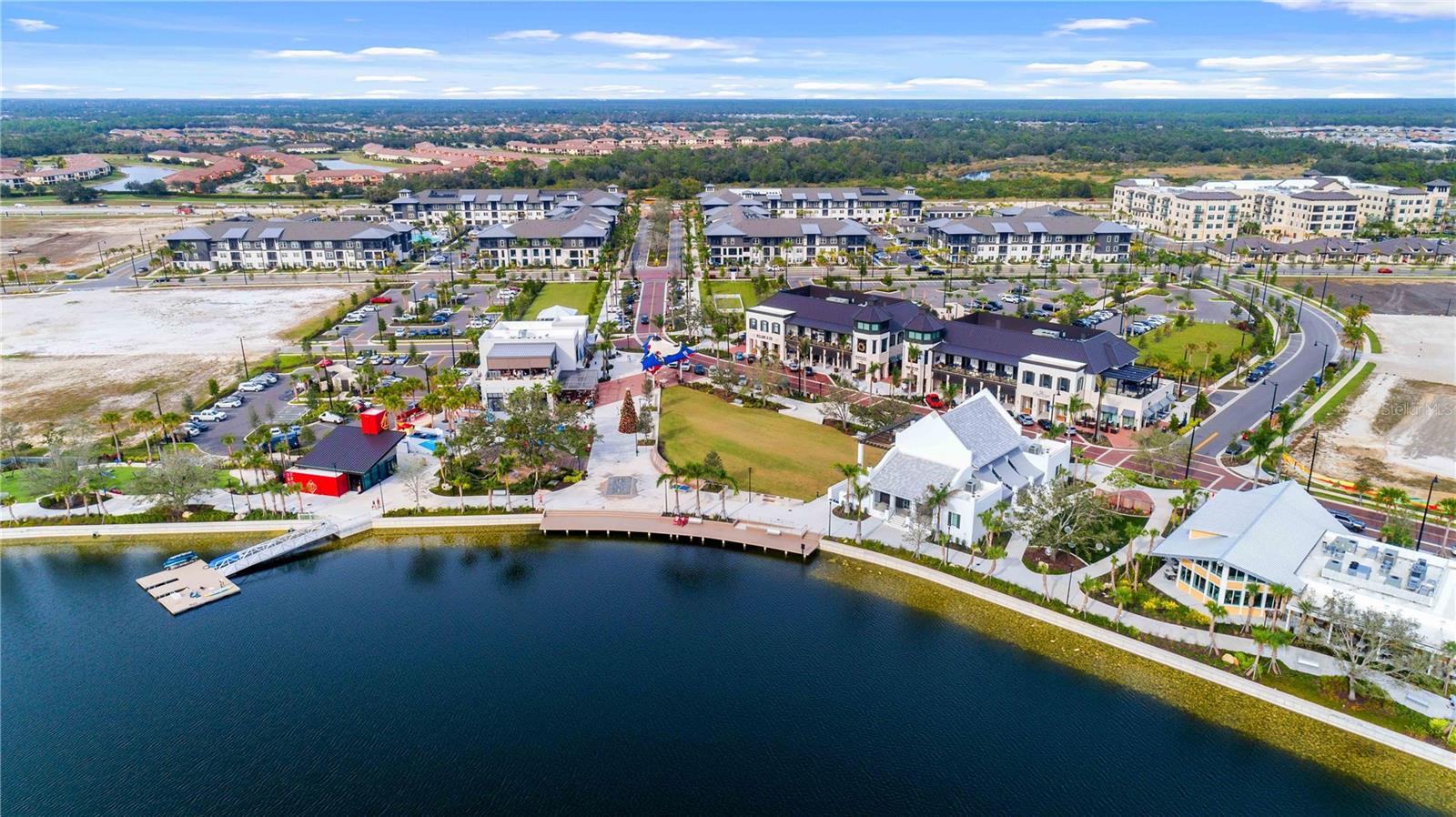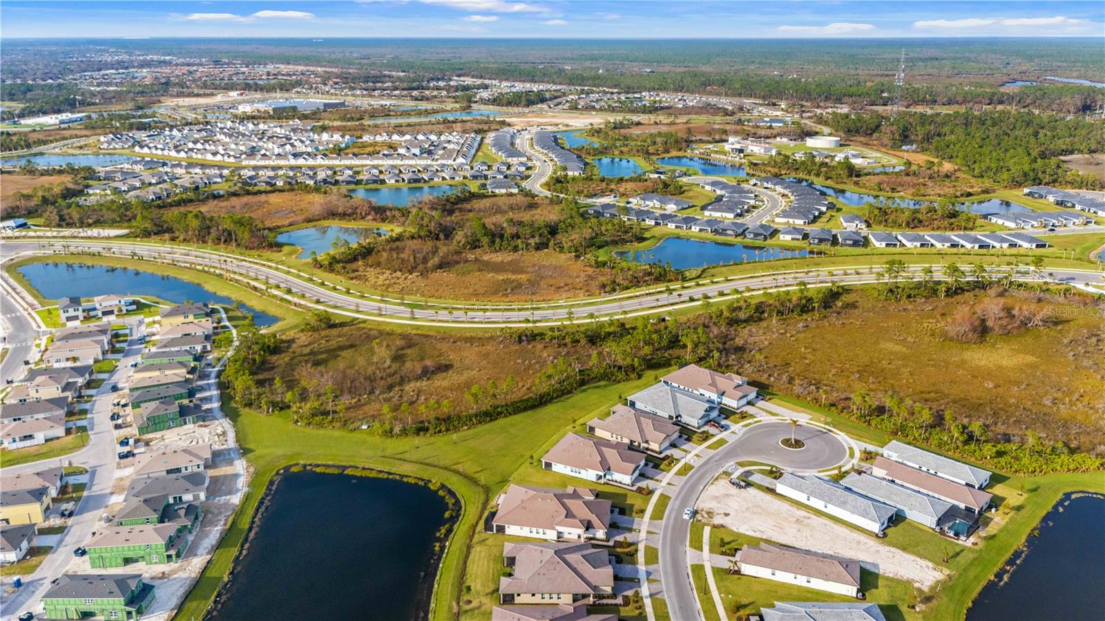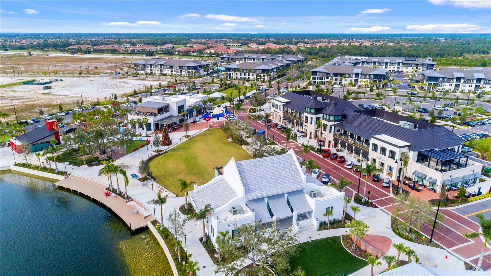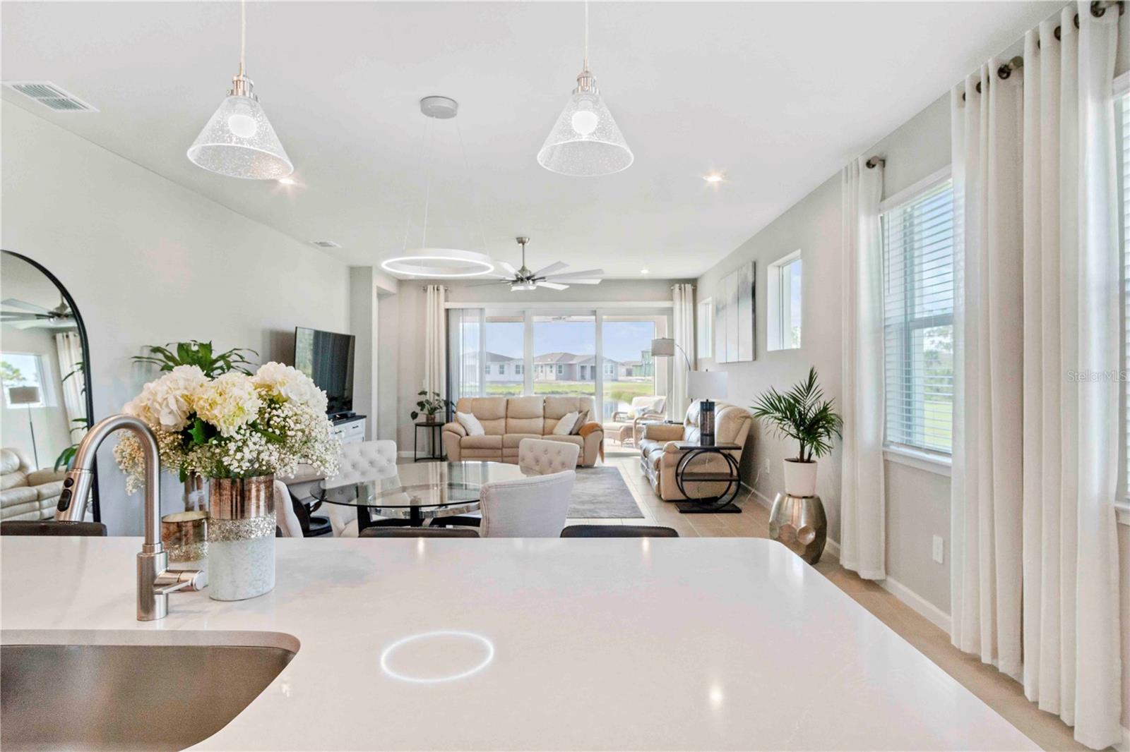 Welcome to your piece of paradise located in the highly sought after community of Wellen Park with countless top destinations nearby including Cool Today Park / Braves Stadium and endless dining options just around the corner. This new community within Wellen Park is a gated 55+ community that is golf cart friendly with many resort style amenities currently being added including TWO pools, a dog park, Hot Tub, 8 Pickle Ball Courts, a stadium court, and a Lifestyle Director on staff full time. Skip the wait of building and move right in to this better than new Villa! Upon arriving to your stunning new home you will notice great curb appeal, an attractive tile roof, paver driveway, brick accent walls, and plenty of room away from the next villa thanks to being on an oversized lot. Once inside you will be greeted by a gorgeous waterview and the spacious layout offered by the Champagne model. This home is listed as 2 bedroom but has a flex room that could be utilized as a 3rd bedroom. No expenses were spared on this build including 9ft 4in tall ceilings, 8 foot doors, Hurricane Impact Windows, tall cabinetry, quartz countertops, and a tray ceiling in the Master suite. The dining room and living room are well sized for entertaining guests and the guest wing of the home is completely separated from the master suite. The master suite overlooks the water view, has a walk in closet nearly the size of another bedroom, his & her sinks, and an impressive walk in shower. Other features/upgrades include an oversized walk in pantry, interior laundry room, insulted garage, bump out in garage for golf cart storage, smart home tech package with security camera and keyless lock, and a $12,000 extended lanai paver option. Plus the seller has already added attractive fixtures, fans, and window treatments not included with any builder in the community. Better than new options like this don’t come along often, contact your agent today for a private showing and if you act soon enough the sellers may even include a brand new high end golf cart!