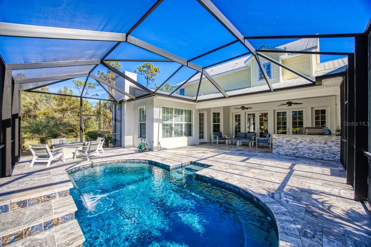 Discover the perfect blend of luxury and comfort in this stunning 5-bedroom, 4-bathroom, two-story custom-built home nestled on a serene wooded lot on 5.25 acres in the coveted Myakka River Trails community. Every detail of this residence exudes sophistication and quality craftsmanship, offering an unparalleled living experience. The chef’s kitchen has been completely redone with custom cherry cabinets, quartz countertops, and state-of-the-art appliances. Luxurious custom oak hardwood floors, imported from North Carolina, span throughout the home, complemented by solid core doors and intricate moldings. A spacious dining room, a formal living room, and a bright sunroom create a welcoming atmosphere throughout. The living areas are enhanced by two stunning fireplaces featuring antique walnut wood mantles, adding warmth and elegance to the space. All bathrooms have been beautifully updated with high-end finishes, ensuring every space feels modern and refined. The property also boasts a 4-car extended garage with ample workspace and epoxy floors. Every detail has been considered with the installation of PGT hurricane-resistant windows and doors, offering peace of mind and durability. The newly installed variable speed Trane cooling system with a blue light feature ensures optimal comfort, while all LED lighting throughout the home enhances both efficiency and ambiance. Outside, the property boasts a brand-new pool surrounded by elegant travertine tile. Two commercial-grade outdoor grills make hosting effortless, while recently landscaped gardens enhance the natural beauty of the wooded lot. Situated just 10 minutes from SMH Hospital and 3 minutes from Wellen Park, also close by is a new Costco, Publix shopping plaza, restaurants, and walking trails—this home offers the perfect combination of convenience and exclusivity. Located within Myakka River Trails, the property provides privacy and proximity to nature. This home seamlessly combines modern upgrades with timeless elegance, making it the perfect retreat for families or anyone seeking a luxurious lifestyle in a prime location. Don’t miss the opportunity to call this exquisite property home!