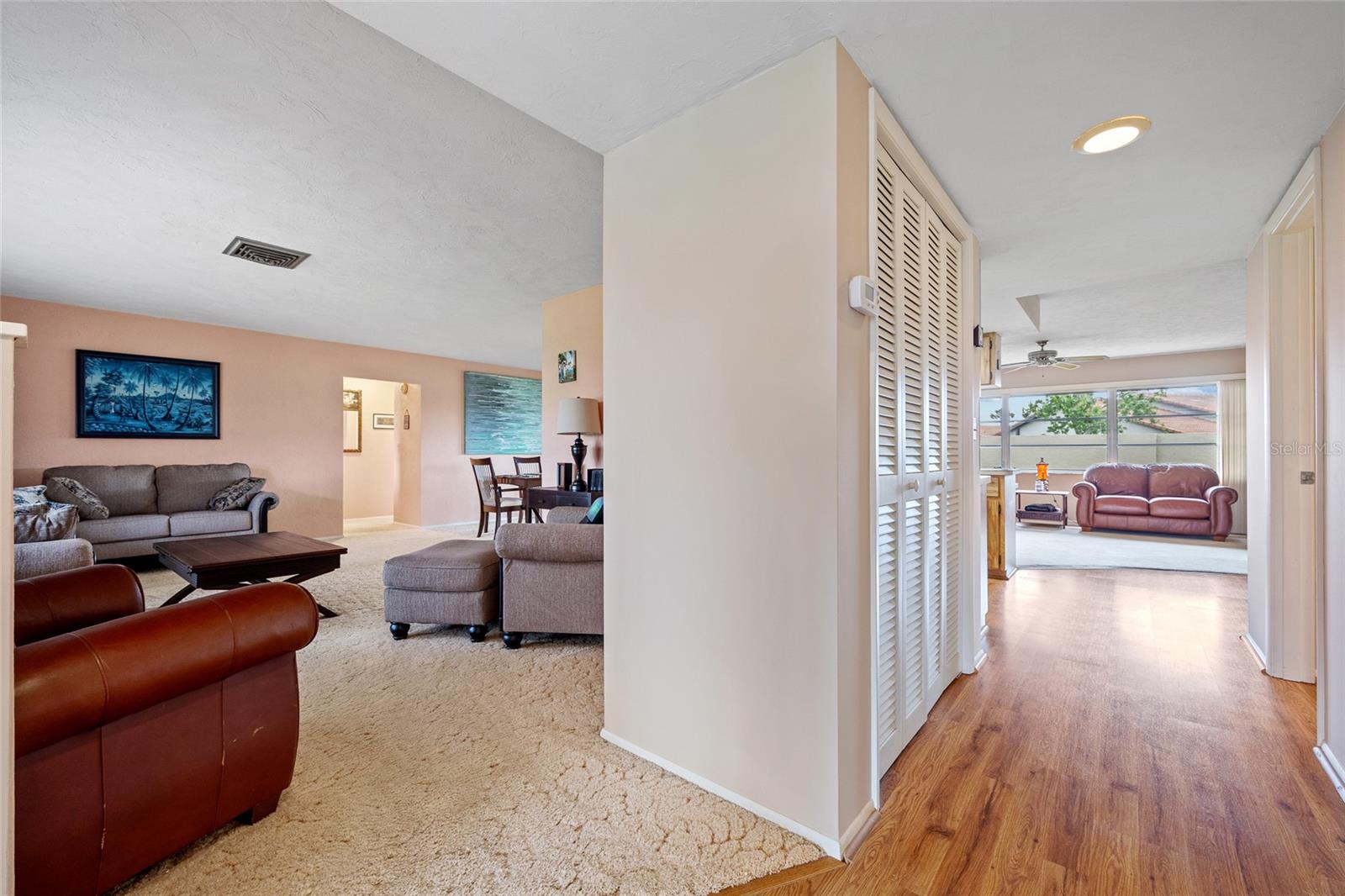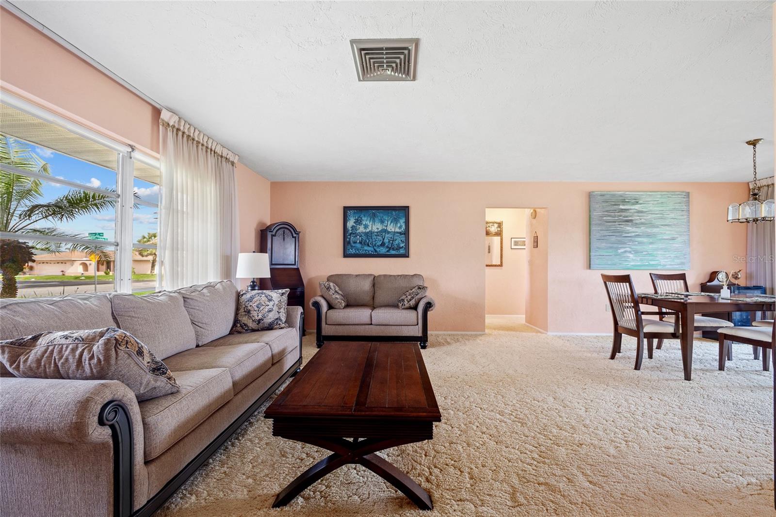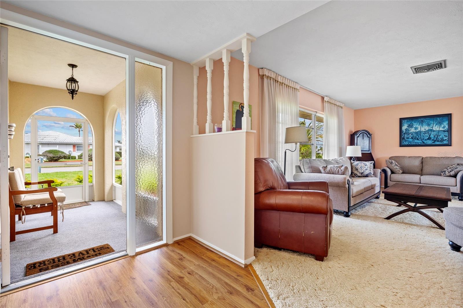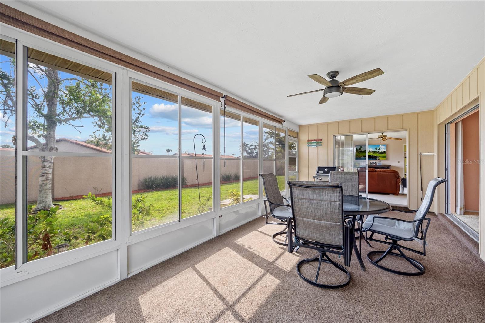 Very spacious 2 bedroom, 2 bath, 2-car garage corner lot home in Venice Gardens part of the highly sought after Jacaranda West community! Newly screened front and rear porches, new landscaping and irrigation system plus newer roof. Bright and open floor plan features formal living room, dining room with pocket slider to lanai, kitchen with ample cabinetry, stainless appliances and breakfast bar overlooking family room with large windows and slider to lanai providing an abundance of natural light. Split floor plan gives plenty of privacy for all featuring double primary suites with walk-in closets and private baths. Outdoor entertaining area features enclosed lanai with sliding windows to enjoy year-round rain or shine. Additional features include inside laundry room, beautifully landscaped exterior, private backyard, lake views from the front porch, new A/C in 2021, and new appliances in 2020. Great neighborhood for the golf enthusiast with memberships available at the Jacaranda West Country Club plus quick access to Venice Beaches and close to restaurants, shopping, schools, beautiful parks, fishing and boating. Great opportunity to make this charming home your snowbird retreat or permanent residence. Schedule your private showing today!