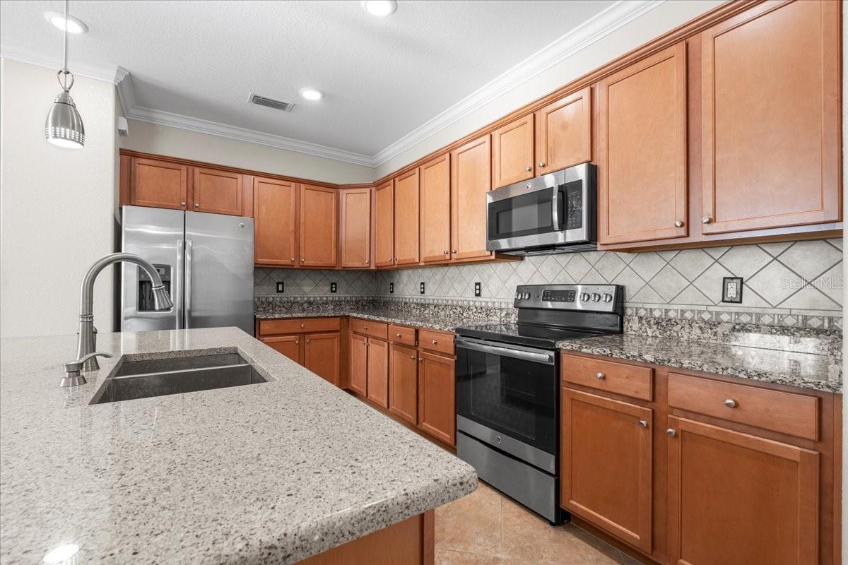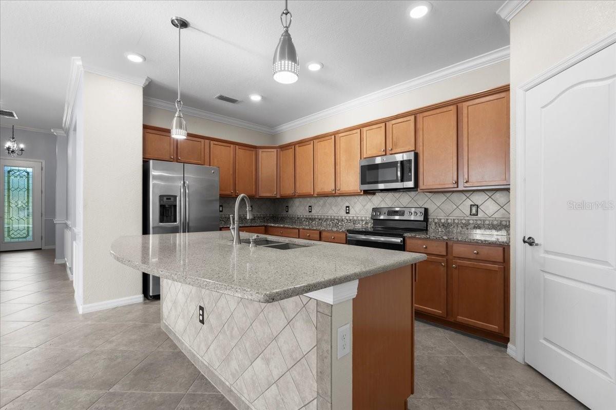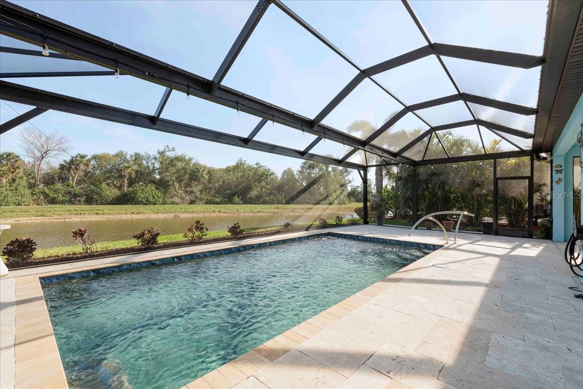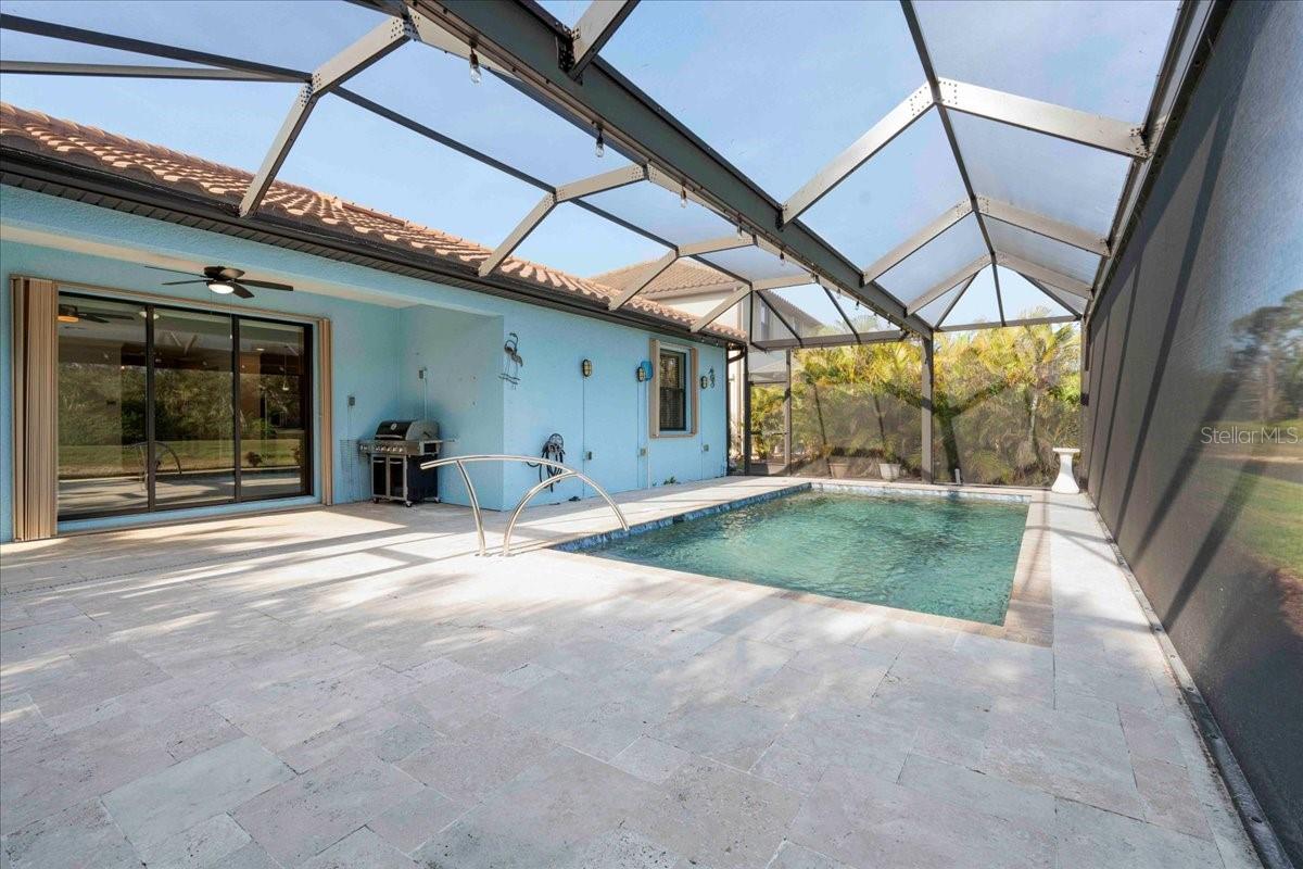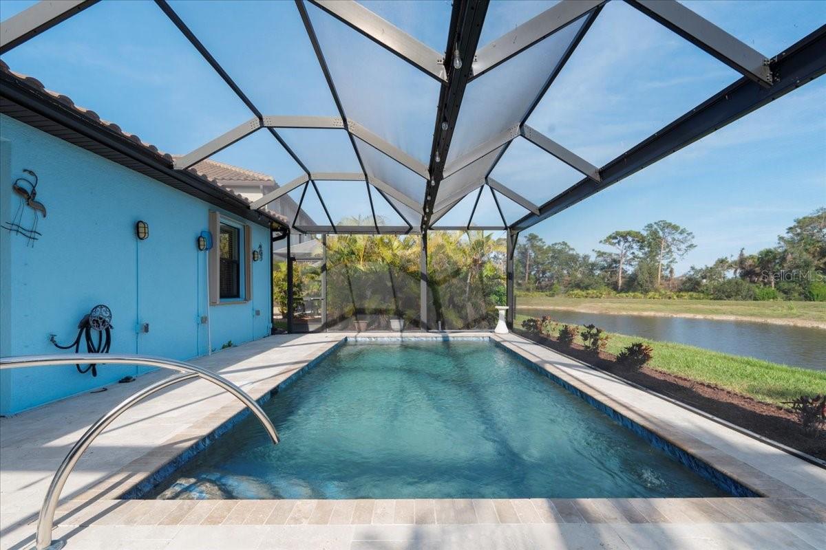 Welcome to your spectacular 4-bedroom, 3-bathroom home with more than 2,000 sq.ft. of living area, built in 2017, featuring a sparkling private SWIMMING POOL and a WATERFRONT PRESERVE VIEW! All this is situated within the desirable gated community of Gran Paradiso! Embrace the Florida lifestyle in the TREVI model, renowned for its open floor plan and thoughtful design. This particular model boasts numerous upgrades, with closets that have custom built-in shelving, GRANITE COUTERTOPS everywhere, custom designed wall cornice in the foyer/hallways, and the predominantly tiled floors throughout are both elegant and also easy to maintain! Your kitchen includes STAINLESS STEEL APPLIANCES, a WALK-IN PANTRY with custom built-in shelving, a granite countertop with a tile backsplash, AND an upgraded/extended kitchen island with QUARTZ COUNTERTOP along with a classy tile backsplash beneath the bar! Your primary suite includes a well appointed en-suite bathroom with a garden tub and glass enclosed shower! Your remaining 3 generously sized guest bedrooms and 2 guest bathrooms ensure privacy and comfort for you and any guests. Entertaining out-of-town visitors will be a delight, as the layout provides ample space and seclusion for extended stays. Living in paradise means friends and family will be eager to visit! Heading through the sliding glass doors you can relax and/or entertain with the heated two-year-old swimming pool which includes therapy jets, custom lighting, and a structurally reinforced cage with PANORAMIC screened enclosure for unobstructed views of the POND and PRESERVE! Step outside to the extended lanai with TRAVERTINE PAVERS imported from Italy and take in the wide-open view of the water and preserve beyond! The water view and preserve setting make for a highly sought-after living experience that is tranquil peaceful and beautiful! Your home has been meticulously maintained and just had a new water heater installed in 2024. Your garage has an attic vent fan installed for efficiency, an insulated garage door, and the garage floors have been epoxied. Putting up shutters is a breeze with your ACCORDION HURRICANE SHUTTERS and the electrical panel has been upgraded with surge protection! The gated entrance, staffed by friendly guards, ensures security along with a warm welcome every time you come home. Gran Paradiso is part of the Wellen Park planned master community, a vibrant hub of Sarasota County. Here, you'll find an array of activities to keep you engaged, including the Atlanta Braves ballpark for exciting spring training games, fireworks displays, dining options, tree lighting events, shopping, water activities, biking trails, and a splash park for the little ones. Within your own community, enjoy the resort-style amenities Gran Paradiso has to offer, including a resort pool, a state-of-the-art fitness center, sauna, basketball courts, tennis courts, pickleball courts, and a grand clubhouse! Stay informed with the monthly newsletter detailing all of the things to do and happenings in the community. Come and relax worry free—you are going to love it here in Gran Paradiso. This inviting home offers the perfect blend of comfort, luxury, and community. Don't miss the opportunity to make it yours!