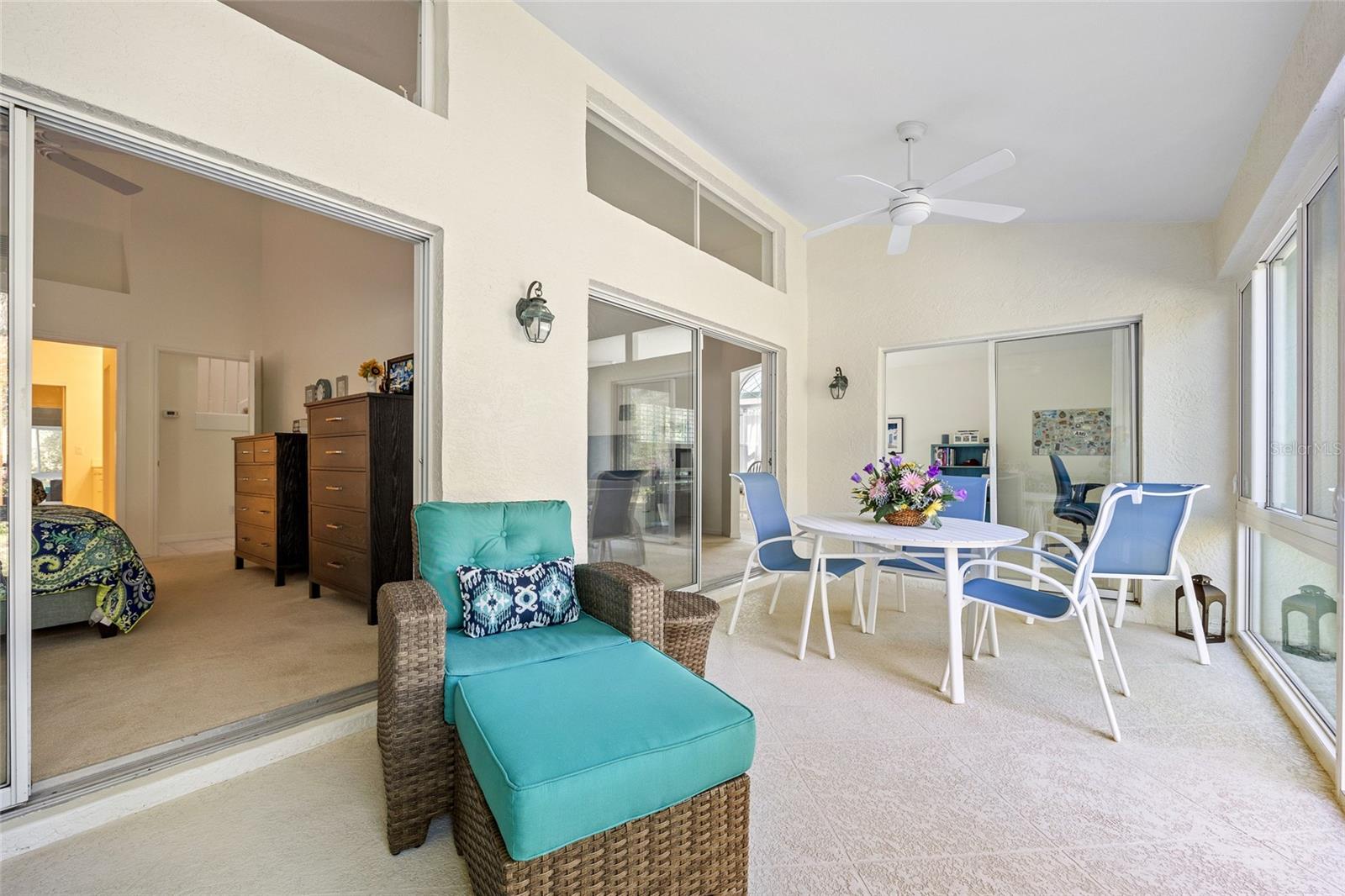 Amazing location in Venice! This spacious villa in beautiful Bridle Oaks has over 2,200 square feet of living space with storage galore! This stunning 3 bedroom, 2.5 bath, 2-car garage home is appointed with many upgrades, including hurricane impact windows and doors. This cheerful home feels light and bright thanks to the high ceilings and transom windows offering an abundance of natural light. The first floor features the main living areas and the primary suite with private bath, dual sinks, walk-in shower, and walk-in closet. The second floor is ideal for family or guests offering two bedrooms, Jack and Jill bath, and large flex room–perfect for a media or craft room. Step out to the covered, enclosed lanai with screened windows to enjoy the serene views year-round, rain or shine. Located in a quiet neighborhood with abundant, mature landscaping and situated next to a nature trail, Bridle Oaks amenities feature a heated community pool and hot tub plus meticulously maintained grounds. Tree-lined streets are ideal for walking, biking, or running. Easy access to I-75, US-41; close to Sarasota Memorial Hospital – Venice, restaurants, shopping, schools, championship golf; and just a short drive to historic downtown Venice and Venice Beach. This gorgeous villa won't last long. Schedule your private showing today!
