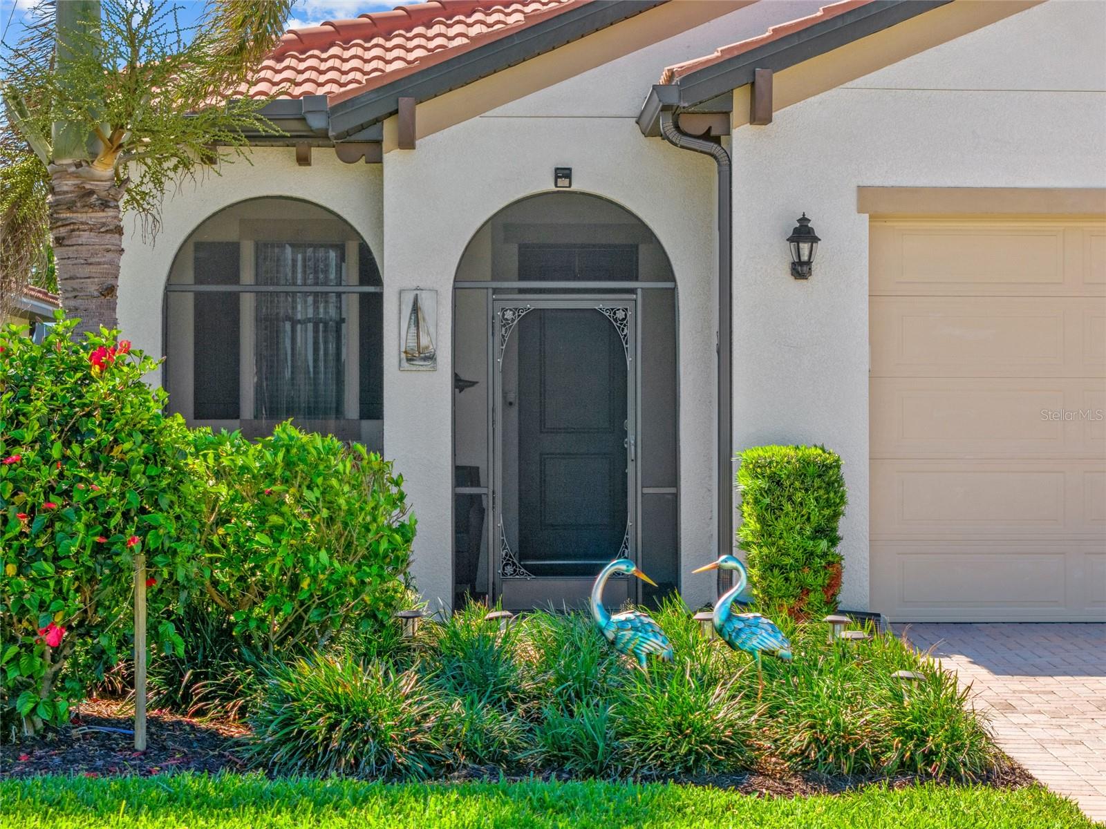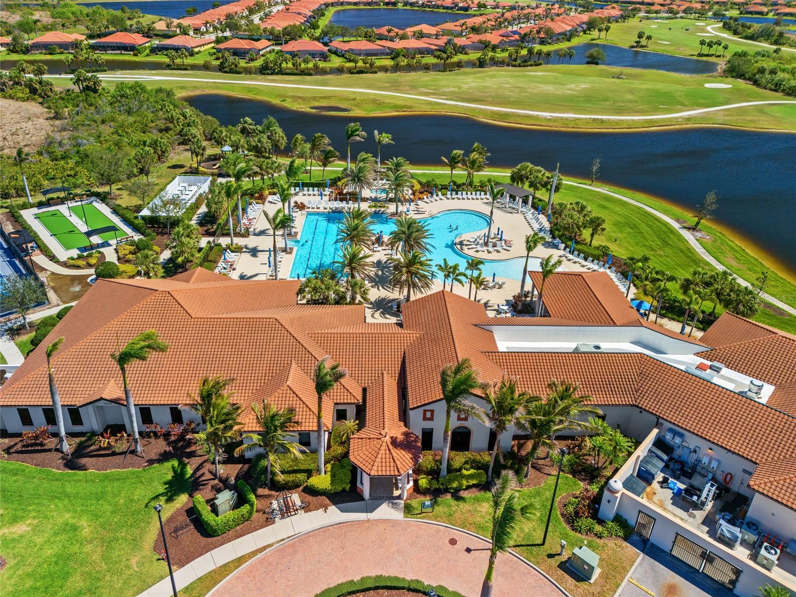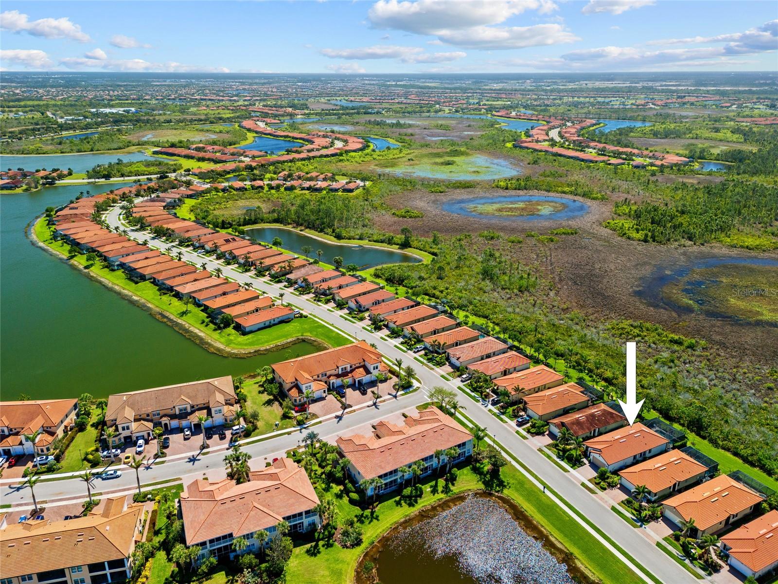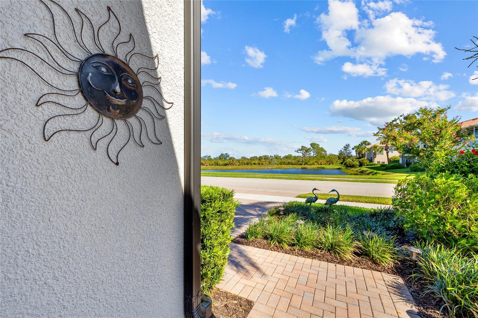 Gated golf community of Sarasota National! Just new to the market is this beautiful WCI-built home in Lake Village featuring 2 bedrooms and 2 baths with a den that can be used as a third bedroom. This home has one of the best views on Crooked Creek Dr. with an unobstructed lake view in front from the screened in Loggia, best preserve view from back lanai plus property is surrounded by upgraded landscaping. Inviting floor plan features high ceilings, arched entryway, neutral décor, an abundance of natural light, maintenance free tile flooring throughout most of home, formal living room, French door to den/dining room and open kitchen and family room with large slider to lanai. The well-equipped kitchen offers upgraded soft-close cabinetry, high-end granite, tile backsplash, stainless appliances and large center island with breakfast bar. The primary bedroom offers luxury vinyl tile, his and her closets customized by “Closets By Design” and private ensuite with dual sinks and glass walk-in shower. The outdoor entertaining area features covered lanai, screened custom saltwater pool with loads of upgrades-including sun shelf, waterfalls with bench, and upgraded pool tiles, plus an outdoor kitchen with sink and refrigerator. True southern exposure so guests from the north can enjoy plenty of Florida sunshine while relaxing by the pool. For storm protection, there is a motorized Storm Smart Shutter for lanai and accordion shutters for rest of home. Additional features include Verona stone counters in baths, guest full bath with glass shower doors, upgraded inside laundry and 2-car garage with ceiling rack storage. HOA fee includes lawn and landscape maintenance. Sarasota National features a host of fabulous amenities including resort style pool and spa, Tiki bar and restaurant, pickleball, bocce ball, tennis courts plus a host of social amenities to meet your neighbors. Great location close to US-41, restaurants, shopping, schools, parks and a short drive to fishing, boating, Manasota Key and Venice beaches. This beautiful home will not last long. Schedule your private showing today!