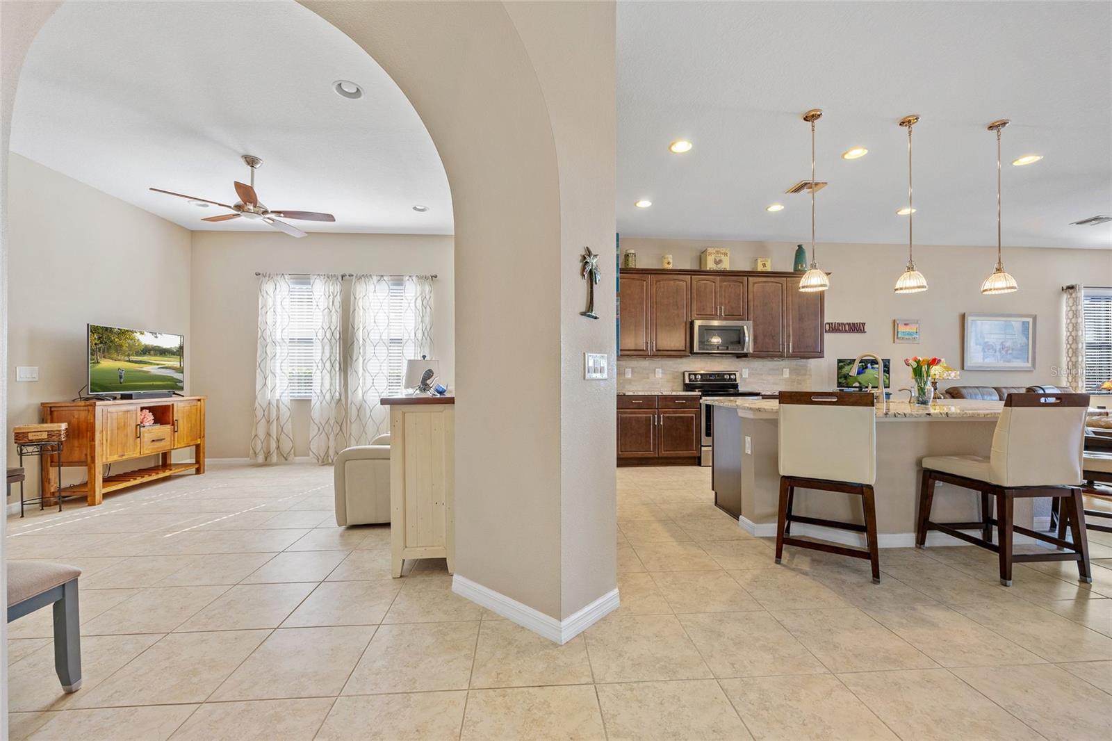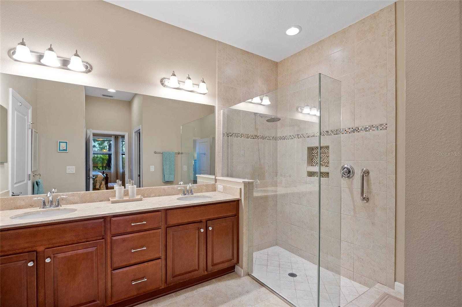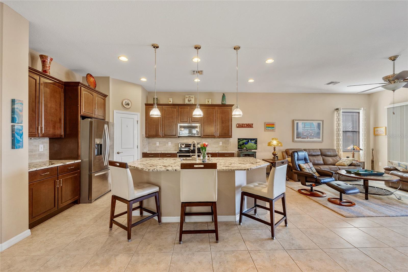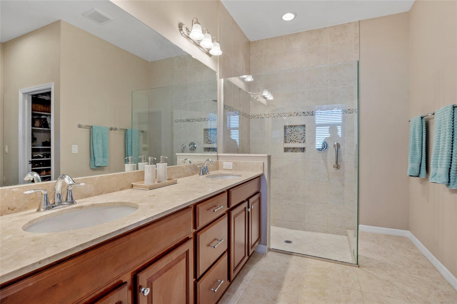 Gated golf community of Sarasota National! Just new to the market is this beautiful WCI-built home in Lake Village featuring 2 bedrooms and 2 baths with a den that can be used as a third bedroom. This home has one of the best views on Crooked Creek Dr. with an unobstructed lake view in front from the screened in Loggia, best preserve view from back lanai plus property is surrounded by upgraded landscaping. Inviting floor plan features high ceilings, arched entryway, neutral décor, an abundance of natural light, maintenance free tile flooring throughout most of home, formal living room, French door to den/dining room and open kitchen and family room with large slider to lanai. The well-equipped kitchen offers upgraded soft-close cabinetry, high-end granite, tile backsplash, stainless appliances and large center island with breakfast bar. The primary bedroom offers luxury vinyl tile, his and her closets customized by “Closets By Design” and private ensuite with dual sinks and glass walk-in shower. The outdoor entertaining area features covered lanai, screened custom saltwater pool with loads of upgrades-including sun shelf, waterfalls with bench, and upgraded pool tiles, plus an outdoor kitchen with sink and refrigerator. True southern exposure so guests from the north can enjoy plenty of Florida sunshine while relaxing by the pool. For storm protection, there is a motorized Storm Smart Shutter for lanai and accordion shutters for rest of home. Additional features include Verona stone counters in baths, guest full bath with glass shower doors, upgraded inside laundry and 2-car garage with ceiling rack storage. HOA fee includes lawn and landscape maintenance. Sarasota National features a host of fabulous amenities including resort style pool and spa, Tiki bar and restaurant, pickleball, bocce ball, tennis courts plus a host of social amenities to meet your neighbors. Great location close to US-41, restaurants, shopping, schools, parks and a short drive to fishing, boating, Manasota Key and Venice beaches. This beautiful home will not last long. Schedule your private showing today!