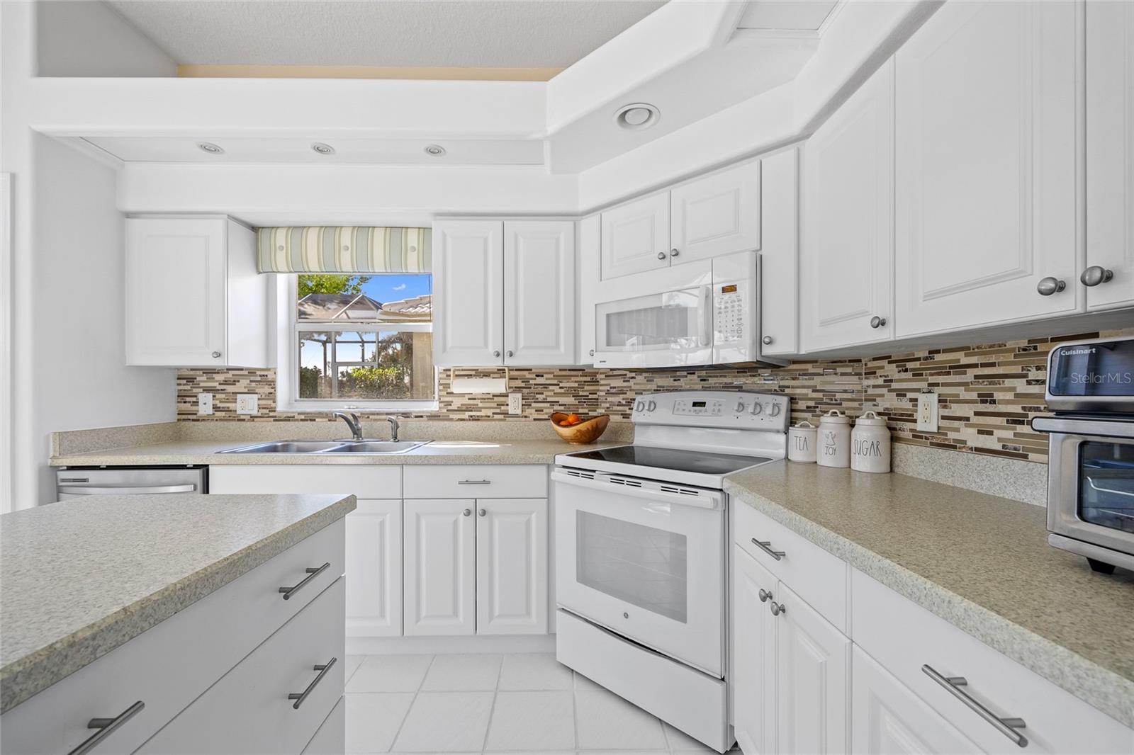 Wake up each morning and enjoy majestic sunrises from your lanai in this sun-drenched, immaculate, single-family home located in the popular Pelican Pointe Golf & Country Club community. This exceptionally bright, move-in ready home features 3 bedrooms, 2 full bathrooms, spacious lanai and a full 2-car garage. The bright kitchen offers a welcoming place to entertain and cook with abundant cabinet space, recently installed appliances, pull-outs and a large island. Livingroom glass sliding patio doors open out to the lanai. The lanai offers a scenic view of the nearby pond, private backyard with mature palms, creating a private space to relax and entertain. There is enough space in the lanai to envision a hot tub or pool. This three-bedroom home has two guest bedrooms with an adjacent full bathroom for when the kids and grandkids visit. In the primary suite, awaken to sunlight streaming through a large patio door and wrap around bay windows. The primary bathroom is bright with a spacious walk-in shower. This home has been thoroughly updated and well cared for featuring 30K+ in upgrades - specifically: recently replaced tile roof (2018), hot water tank (2024), refrigerator (2023), dishwasher (2024), washer and dryer (2024), electric, remotely controlled storm panels protecting the lanai patio doors and front entry (2024), remotely controlled electric metal shades protecting the primary and front bedroom (2024), ClearTek panels on many other windows (2024-2025), vertical blinds (2024), a hurricane-rated garage door (2023), repainted throughout (2023), duct and vent work cleaned throughout with a HVAC UV filter installed (2025). Pelican Pointe is regarded as one of the most popular and most picturesque communities in Venice. This home is located in the RESERVE community of Pelican Pointe. It is surrounded by an abundance of nature preserves with wildlife and wetlands throughout. Pelican Pointe is a welcoming, vibrant community that offers many opportunities for fitness and to enjoy social interactions. Pelican Pointe residents are automatically enrolled as a social member which allows for the use of the tennis courts, pickleball courts, community pool, fitness facility and a variety of other social activities and events. It is a dog-friendly community. There are no CDD fees with this HOA property. Pelican Pointe Golf & Country Club is a first class, award winning, Florida golf course community. Golf membership is OPTIONAL. Pelican Pointe is a short drive to downtown Venice to enjoy dining, theater, biking, shopping and the stunning Gulf beaches, including a unique dog-friendly beach. This home offers a wonderful lifestyle in the warm Florida sunshine. Call to schedule your private appointment to view this lovely, well-cared for home.