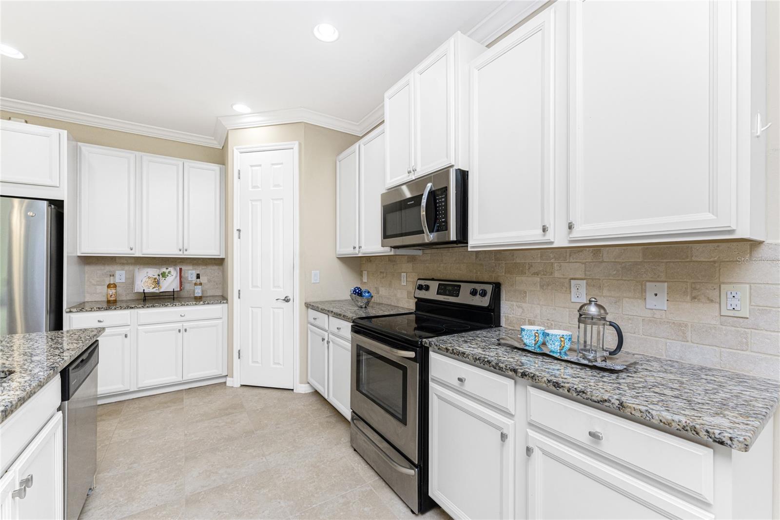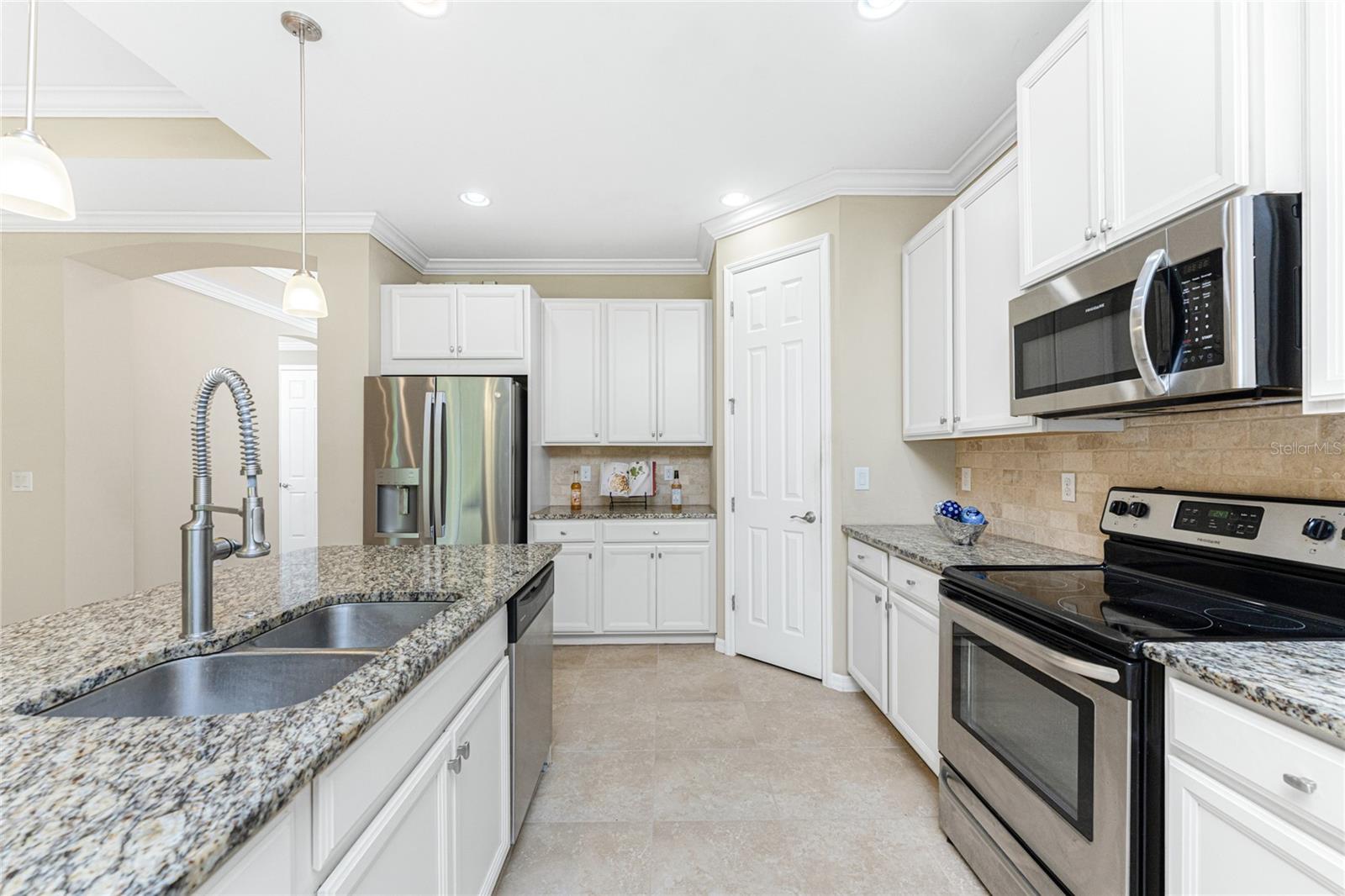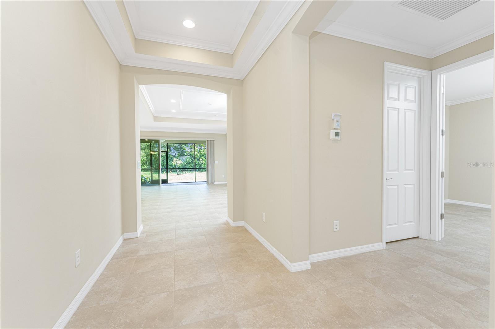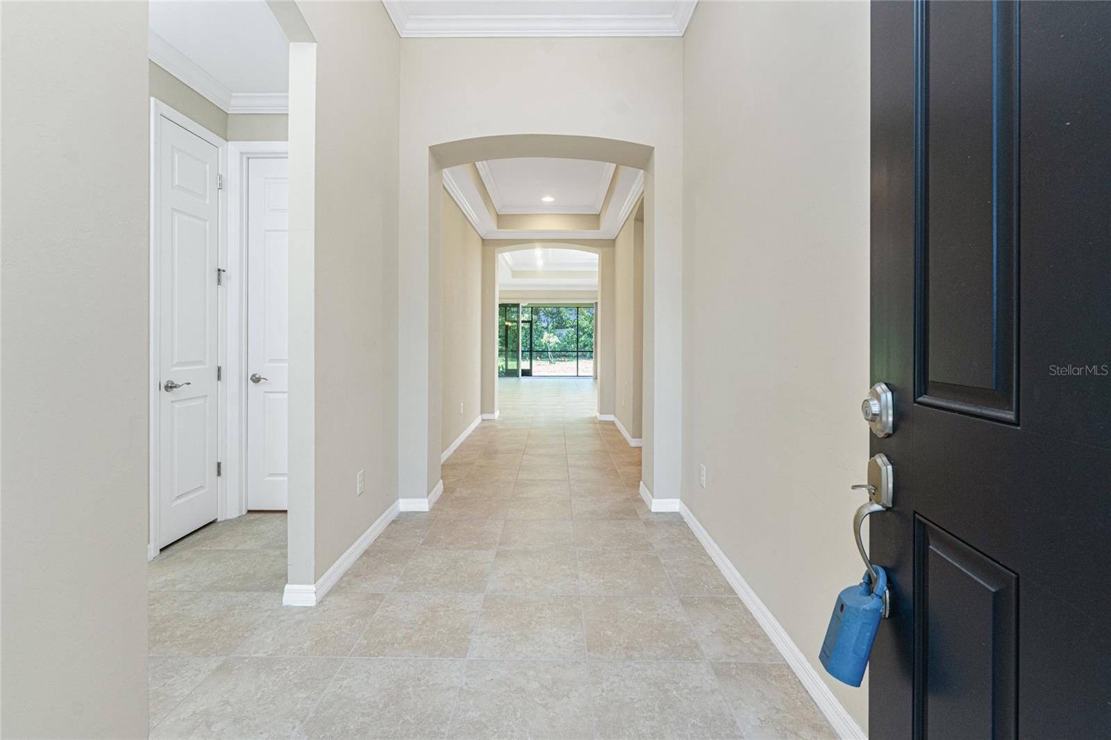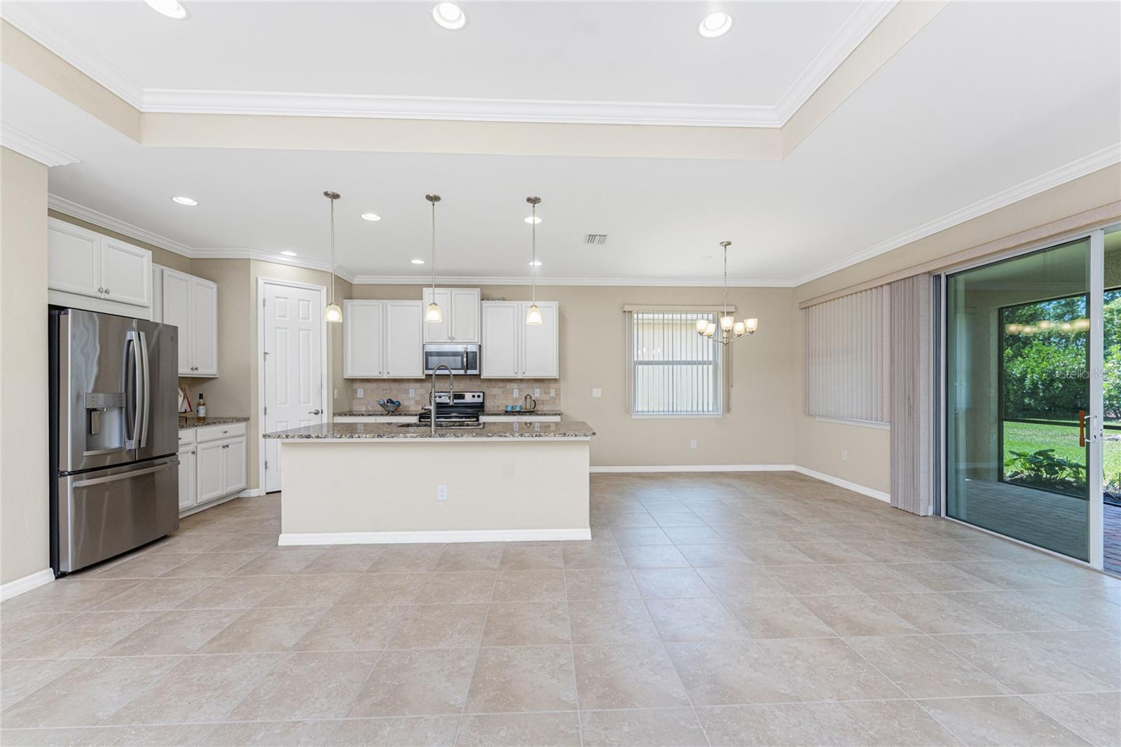Welcome to this beautifully upgraded custom Edison model by DR Horton, offering 1,984 square feet under air with 3 spacious bedrooms, a versatile office/den, and 2 full bathrooms. Located in a highly sought-after area of Venice in the gated community of Carribbean Village - just minutes from Wellen Park, world-class beaches, and charming downtown Venice with its vibrant restaurants and boutique shops. Step through the elegant double-arched entryway into a home that exudes style and sophistication. The soaring 9'4" tray ceilings in the entry hall, great room, primary suite, and both bathrooms create an airy, open feel, further elevated by custom crown molding throughout. Every detail has been carefully considered—from the brick-pavered driveway and front entry to the lovely brick-pavered lanai, perfect for relaxing with a serene private garden view. The home features tile flooring throughout, with laminate floors in the primary and guest bedrooms for added comfort and style. The spacious kitchen is a chef’s dream with wood cabinetry, granite countertops, tiled backsplash, and stainless steel appliances—including a 2023 refrigerator and 2024 microwave. The primary ensuite is a true retreat, featuring a double sink wood vanity, a luxurious garden tub, and a fabulous walk-in tiled shower. Enjoy year-round peace of mind with accordion hurricane protection on all windows and doors, providing both security and convenience. Additional upgrades and highlights include: 2024 Air Conditioner 2023 Washer & Dryer 2-Car Garage with 2025 Polyaspartic Epoxy Flooring. Situated near I-75 for convenient travel to Sarasota to the north and Naples to the south, this meticulously maintained home combines luxury, location, and lifestyle. A truly beautiful custom home—ready for you to move in and make it your own! JUST REDUCED ON 9/5/25 TO SELL - LOWEST AND BEST PRICED HOME IN CARIBBEAN VILLAGE!
