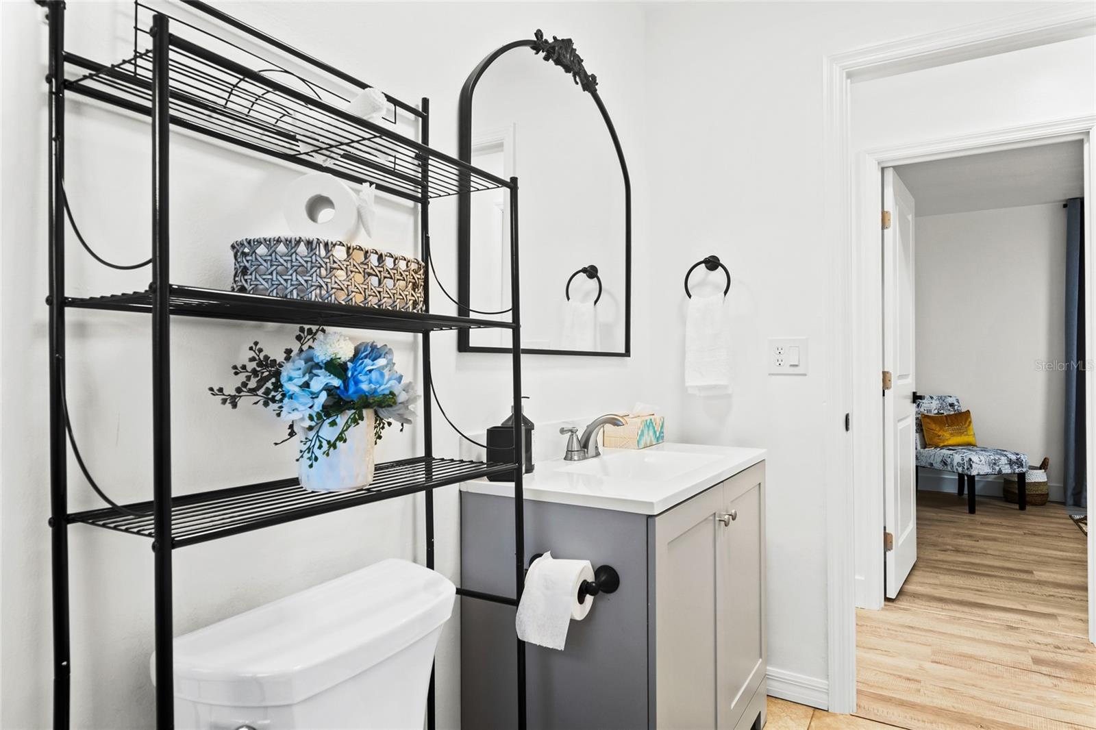 This beautifully updated two-bedroom, two-bathroom single-family home in the sought-after East Gate community of Venice offers a modern open layout and a versatile additional bonus room. Recently remodeled with stylish finishes and meticulous attention to detail, the home features spacious living areas bathed in natural light, perfect for both relaxing and entertaining. The flexible bonus Florida room includes its own private exterior side entry, making it an ideal space for a third bedroom, home office, or guest suite. The heart of the home is a chef-inspired kitchen equipped with top-of-the-line Maytag appliances, solid surface counters, and a functional closet pantry. The interior transitions seamlessly to a private outdoor oasis, centered around a 10x20 in-ground gunite pool with custom lighting. The large, 14x26 screened and covered lanai allows for year-round enjoyment of the Florida sunshine, overlooking a fully fenced backyard that provides excellent privacy. Practical features abound, including two spacious bedrooms with large walk-in closets, an attached one-car garage, and the added protection of hurricane shutters. This move-in-ready residence is situated in Flood Zone X and is located just 8 minutes from the stunning coastline of Venice Beach, offering easy access to sun, sand, and surf with no HOA or CDD fees.