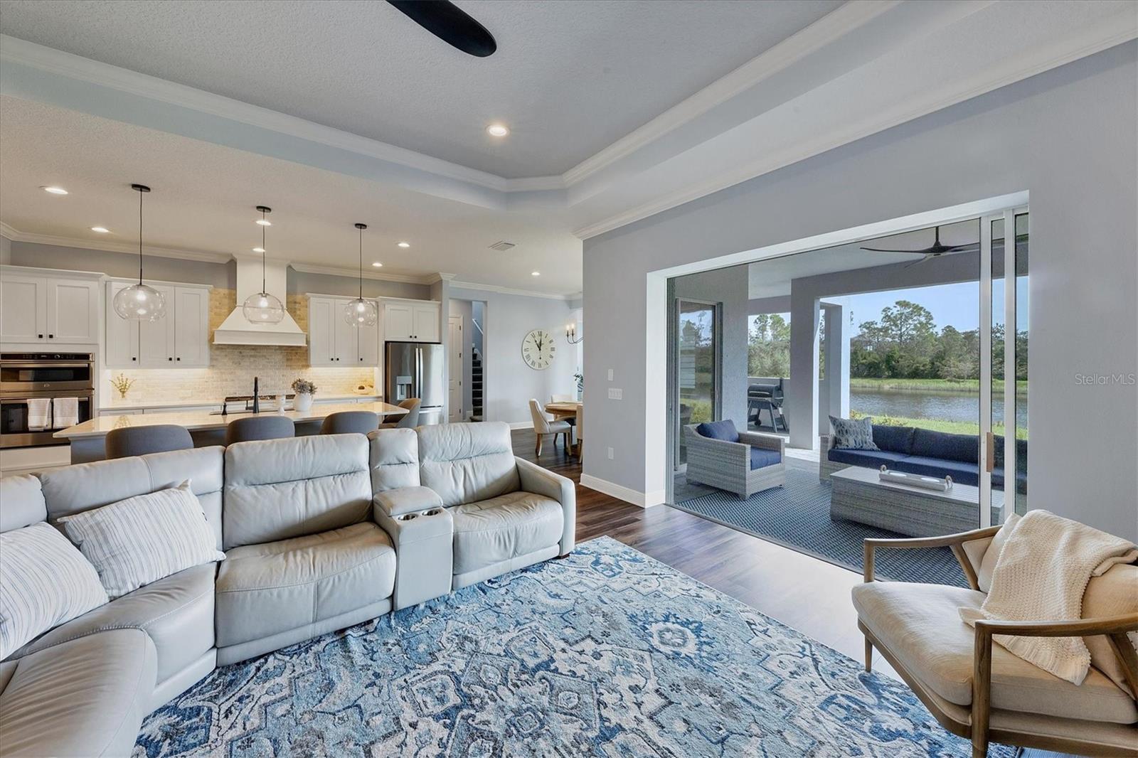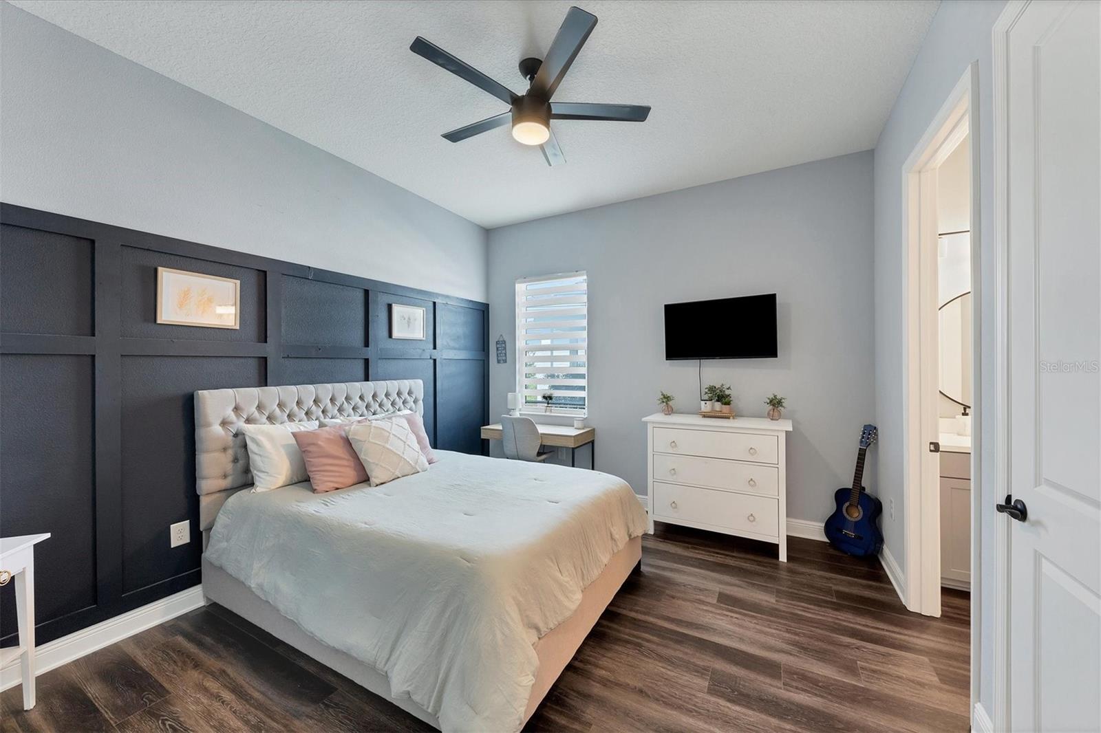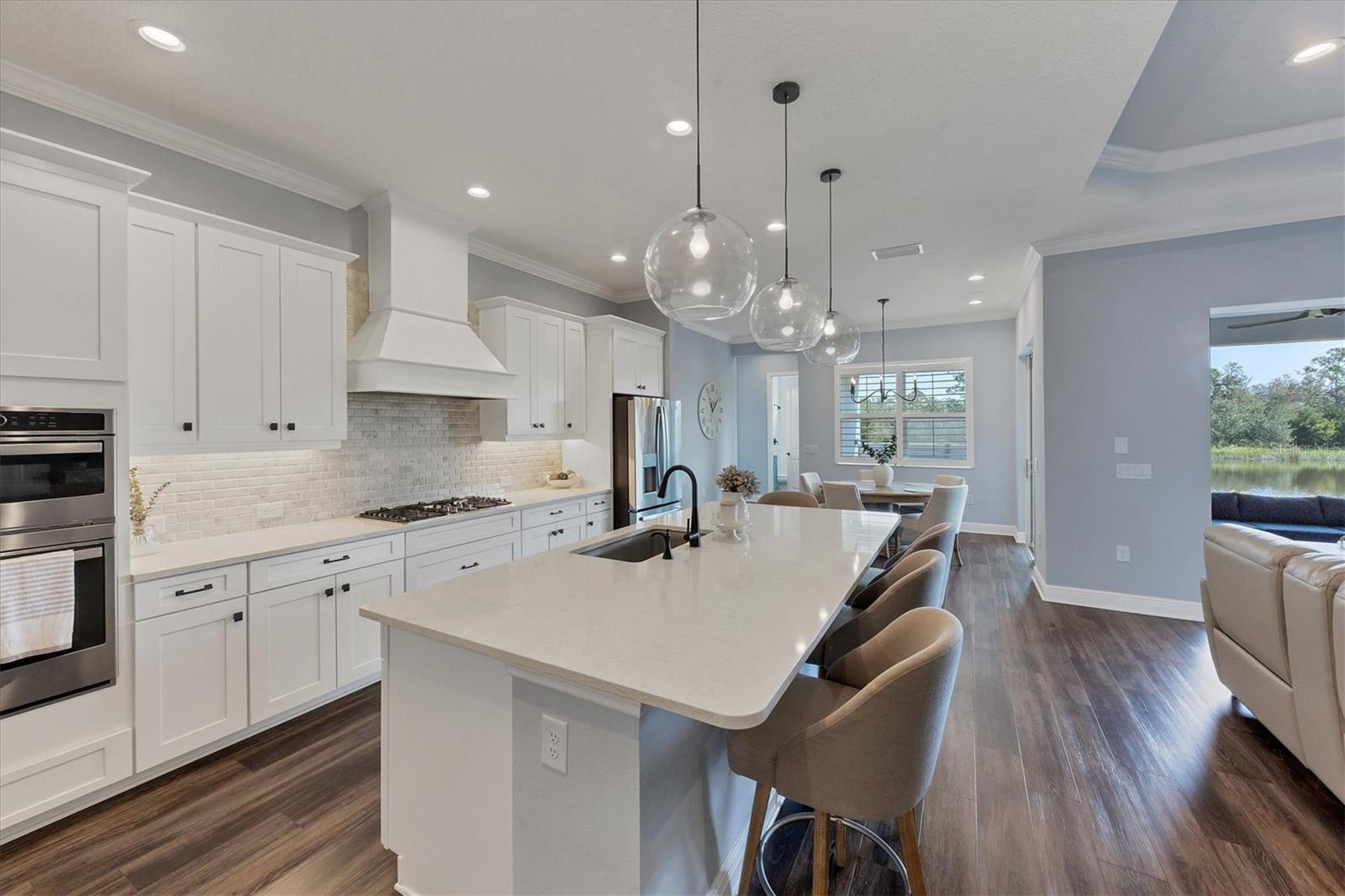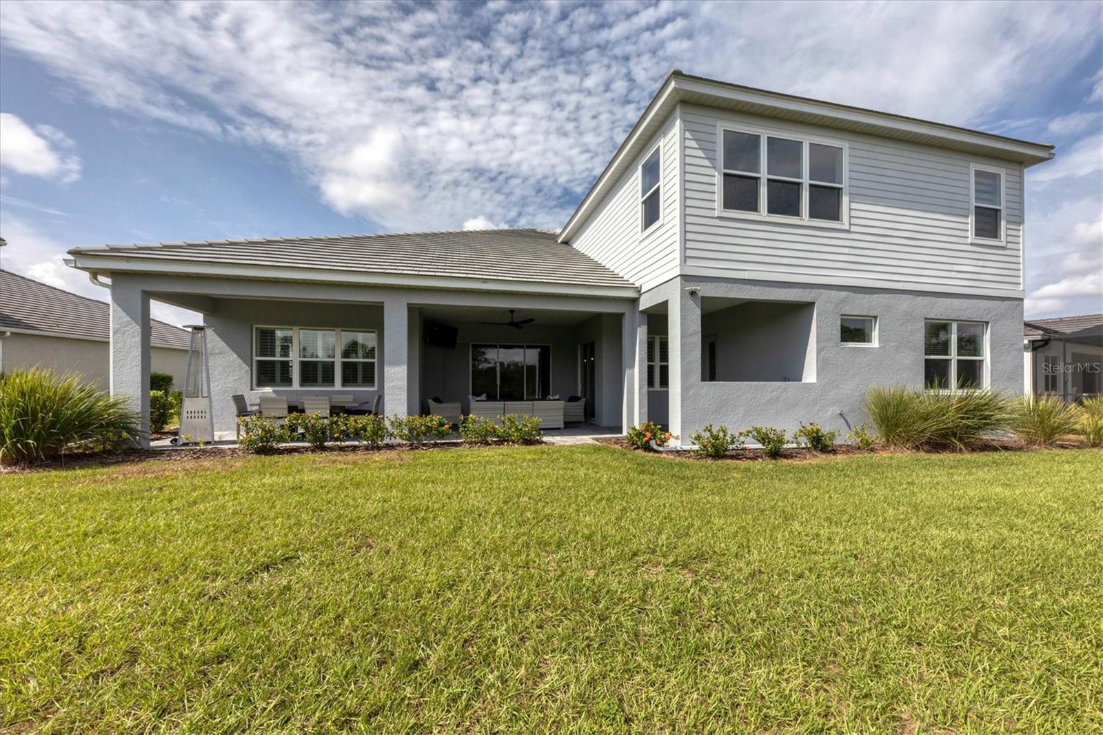 Welcome to your dream home in the luxurious gated community of Grand Palm! This stunning two-story home boasts a multitude of impressive features that are sure to take your breath away. Step inside and marvel at the high ceilings, luxury vinyl flooring, and open floor plan that create a spacious and inviting atmosphere throughout. The gourmet kitchen boasts tons of upgrades such as quartz countertops, a gas range, and a chef’s exhaust hood just to name a few. The backyard and lanai overlook a beautiful lake making the perfect backdrop for your future pool. The lanai is also prewired with gas and water lines to create the ultimate outdoor kitchen. This incredible home features 5 bedrooms and 4 full bathrooms, along with a bonus room and office with large double doors perfect for a work from home office setup. The master bedroom boasts large windows that let in plenty of natural light and oversized walk-in closet. The ensuite bathroom is equally impressive, with dual vanities, a walk-in shower, a soaking tub, and plenty of storage. All bathrooms are tiled, giving the home a stylish and modern feel. Enjoy plenty of room for all your toys in the 3-car garage and have peace of mind knowing the high impact glass windows on the second floor will help to keep you safe and secure. Schedule a showing to see just how perfect this home is for your family!