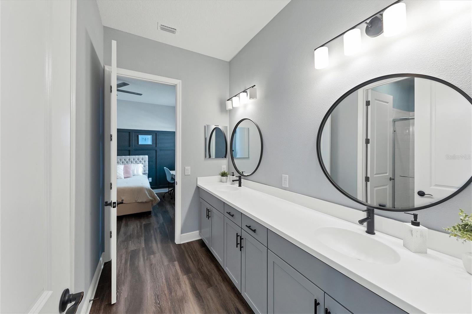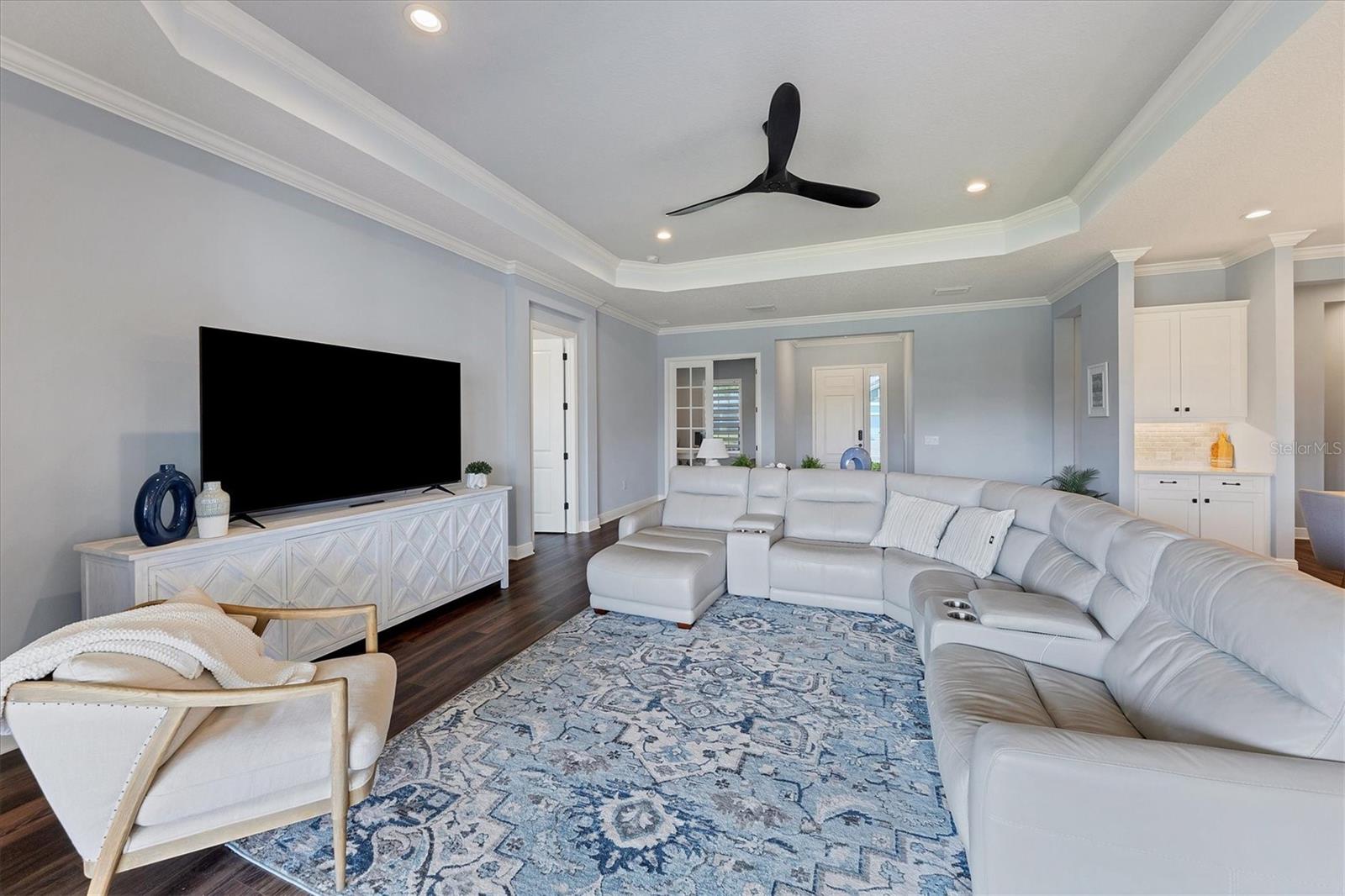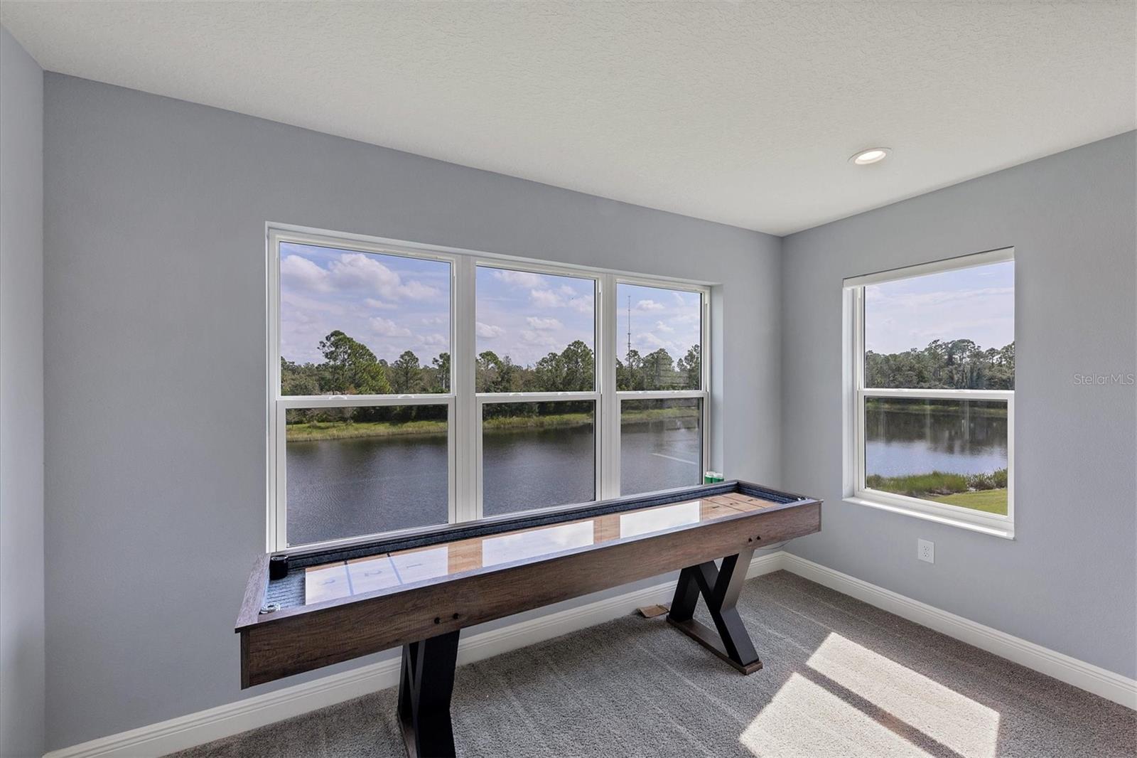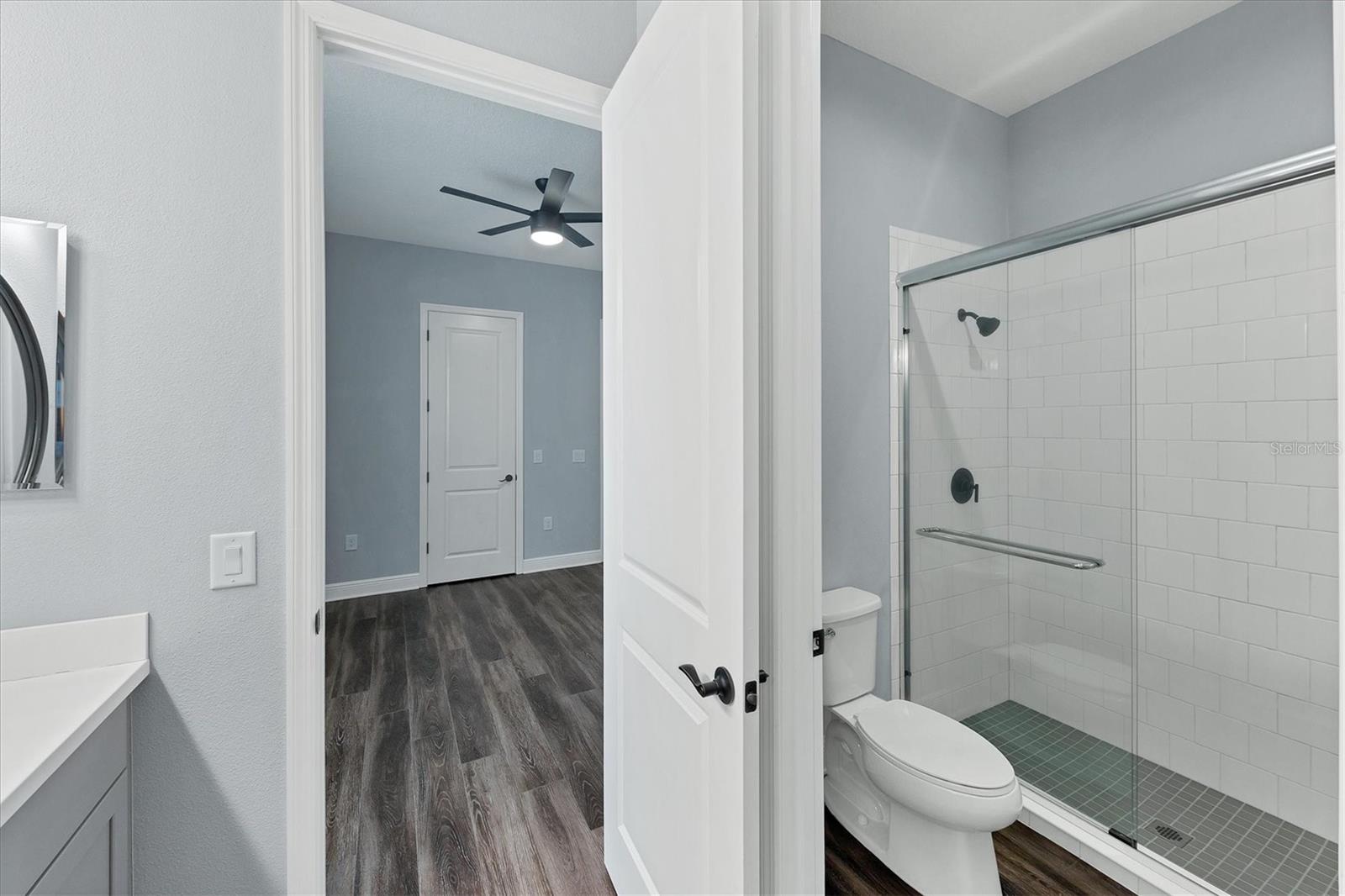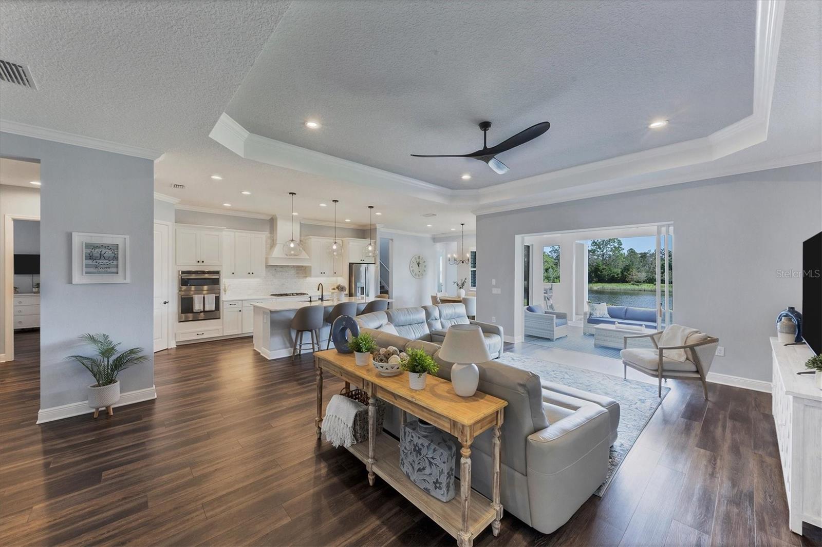 Welcome to your dream home in the luxurious gated community of Grand Palm! This stunning two-story home boasts a multitude of impressive features that are sure to take your breath away. Step inside and marvel at the high ceilings, luxury vinyl flooring, and open floor plan that create a spacious and inviting atmosphere throughout. The gourmet kitchen boasts tons of upgrades such as quartz countertops, a gas range, and a chef’s exhaust hood just to name a few. The backyard and lanai overlook a beautiful lake making the perfect backdrop for your future pool. The lanai is also prewired with gas and water lines to create the ultimate outdoor kitchen. This incredible home features 5 bedrooms and 4 full bathrooms, along with a bonus room and office with large double doors perfect for a work from home office setup. The master bedroom boasts large windows that let in plenty of natural light and oversized walk-in closet. The ensuite bathroom is equally impressive, with dual vanities, a walk-in shower, a soaking tub, and plenty of storage. All bathrooms are tiled, giving the home a stylish and modern feel. Enjoy plenty of room for all your toys in the 3-car garage and have peace of mind knowing the high impact glass windows on the second floor will help to keep you safe and secure. Schedule a showing to see just how perfect this home is for your family!