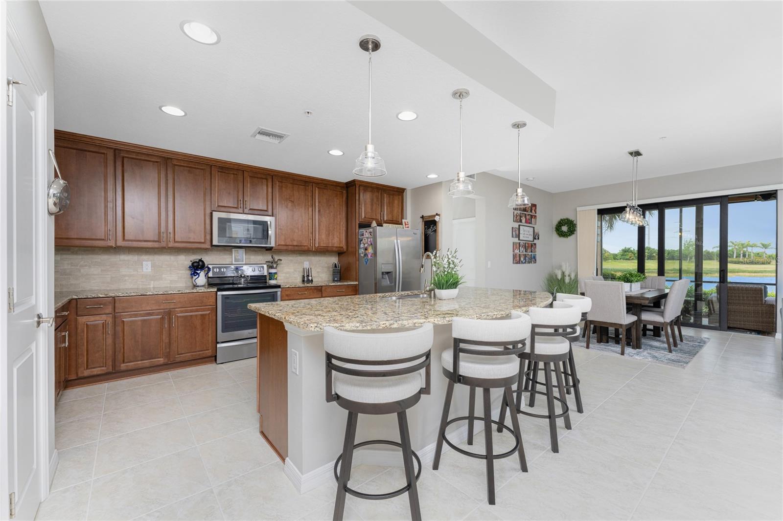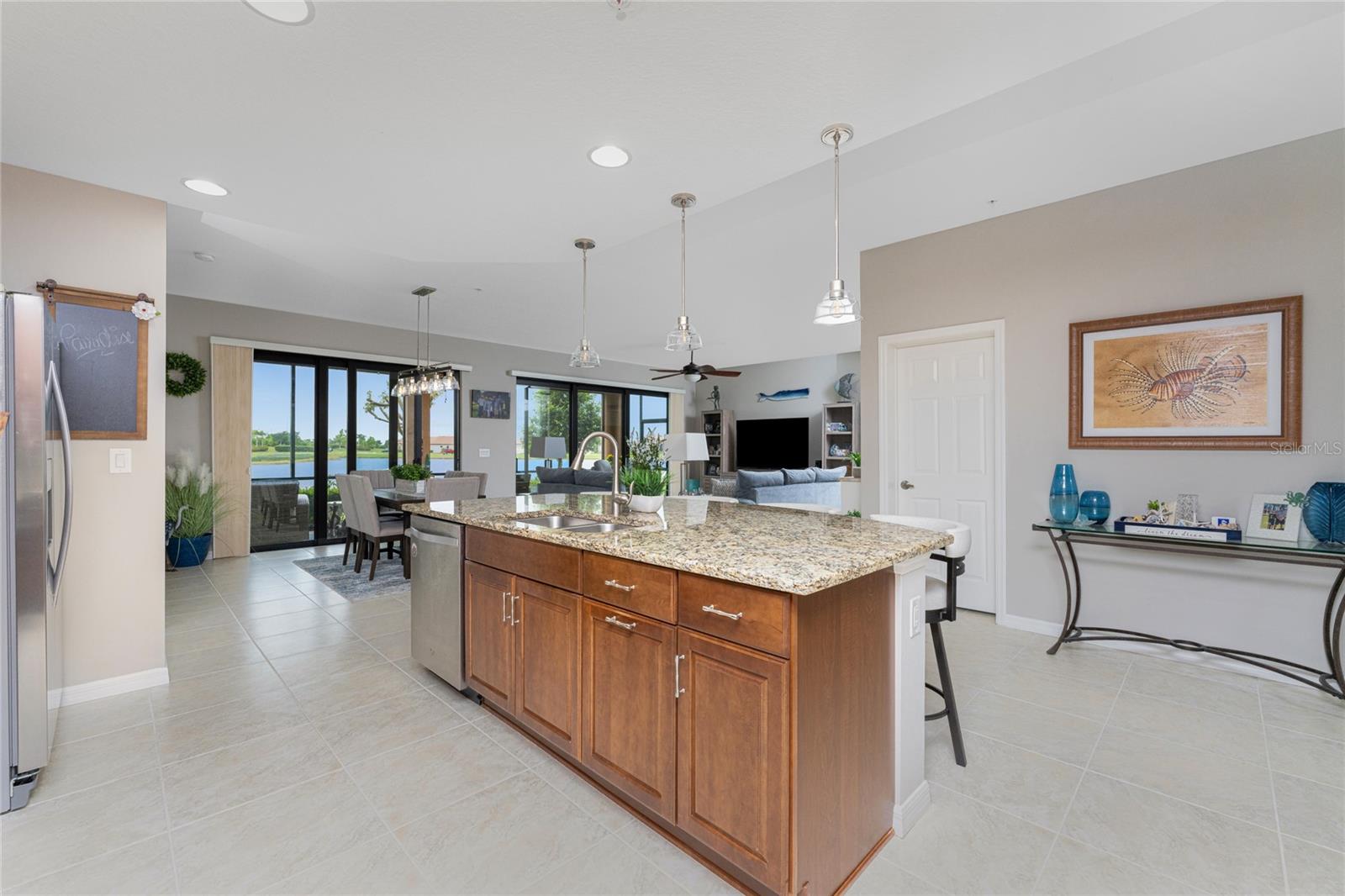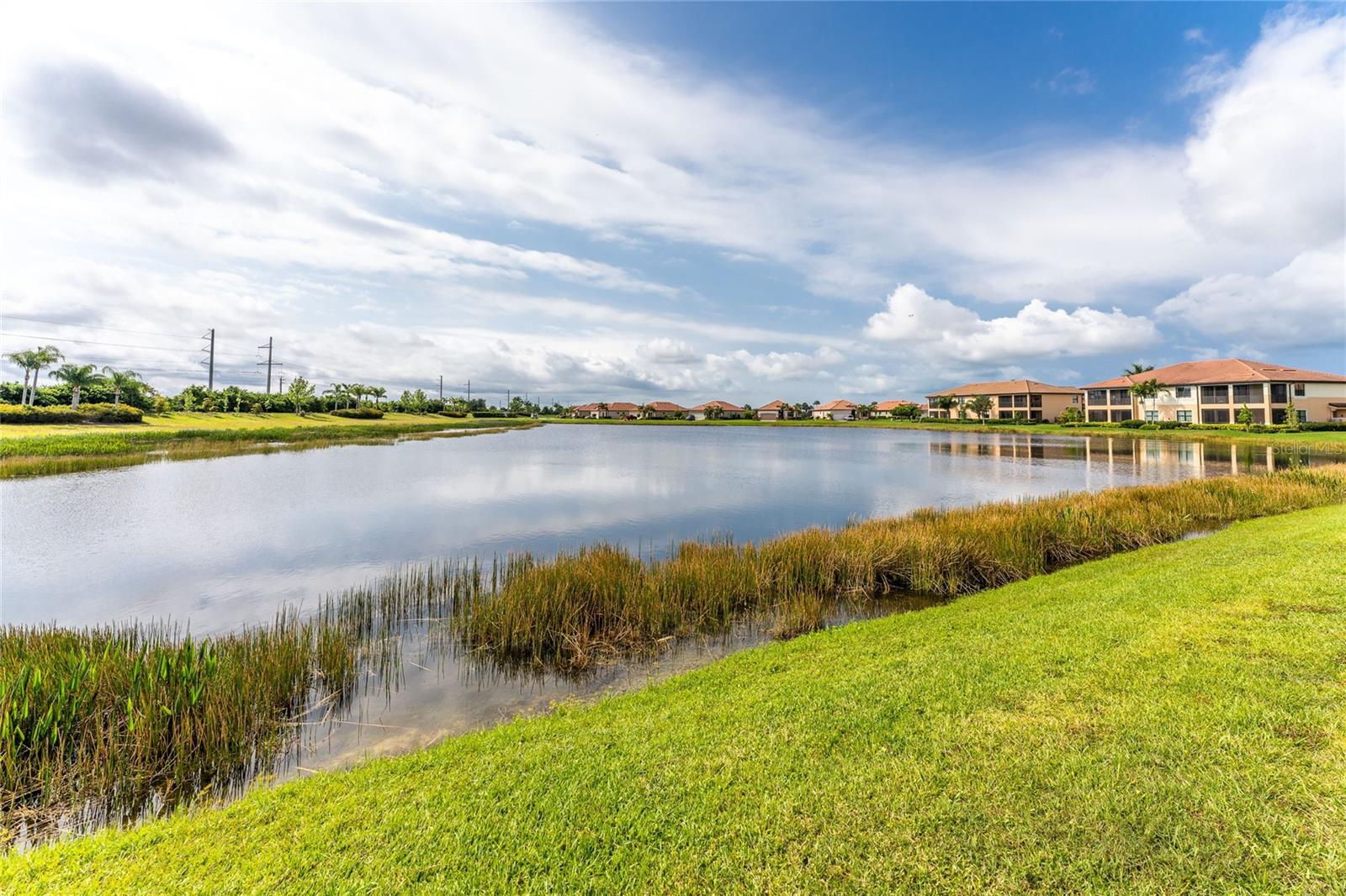 Price correction on this beautiful waterfront villa. Calling all golf aficionados! Prepare to be enchanted by this exquisite residence nestled within the esteemed Sarasota National community in Venice. Step into a world of luxury living where your golfing dreams come true with an exclusive bundled golf membership for two at the prestigious 18-hole championship golf course. Indulge in a resort-like lifestyle boasting an array of amenities including delectable dining options, a charming tiki bar, cozy coffee room, state-of-the-art fitness center, tennis courts, pickleball, bocce ball, and even a dedicated dog park for your furry companions. Elegance meets functionality in this meticulously crafted home spanning over 1800 square feet of meticulously designed space adorned with sleek tile flooring throughout—no carpets in sight! Rest easy knowing you're safeguarded against stormy weather with hurricane impact doors and windows, complemented by a recently upgraded front door featuring stunning hurricane-impact decorative glass and a convenient retractable screen door. Inside, discover a haven of comfort with plantation shutters, cooling ceiling fans, and a fresh coat of paint lending a contemporary touch. Enjoy the versatile 5x7 flex room ideal for a cozy sitting area or additional storage, while the expansive laundry room offers ample cabinet space for utmost convenience. The heart of the home beckons with a chef's dream kitchen boasting a sprawling granite island, 48" wood soft-close cabinets, and cleverly designed pull-out racks. Step outside to your sprawling lanai and soak in breathtaking views of the serene lake—a perfect setting for leisurely mornings with coffee or evening soirees with cocktails. Rest assured, this home stands strong against the elements with no hurricane damage and resides in a secure X500 flood zone, eliminating the need for flood insurance. Ideally situated near Wellen Park's vibrant array of restaurants, shopping destinations, top-tier hospitals, and sun-kissed beaches, this is more than just a home—it's a lifestyle statement.