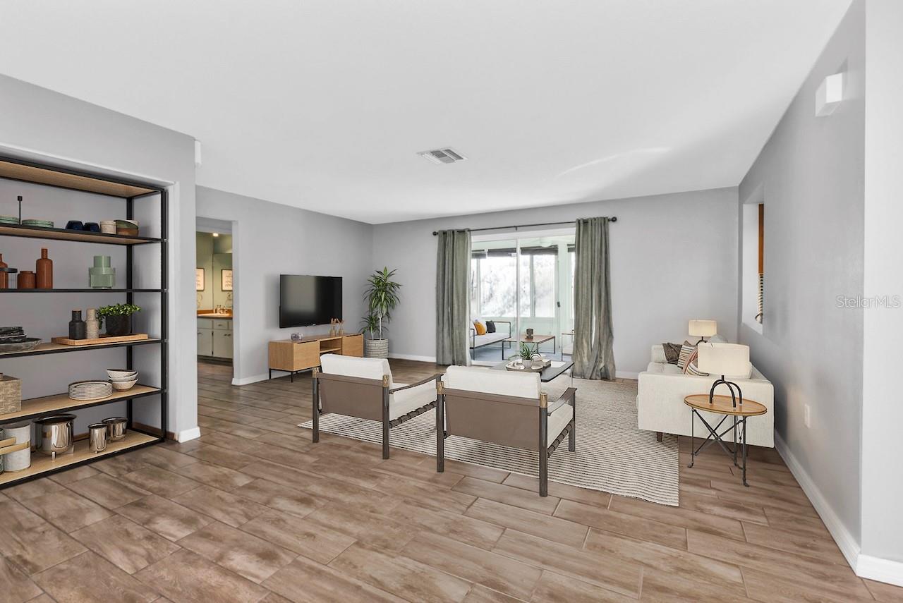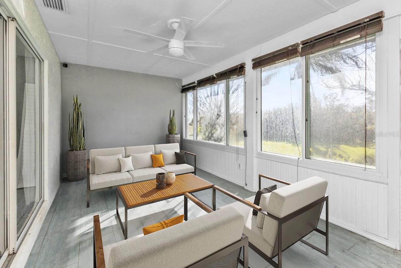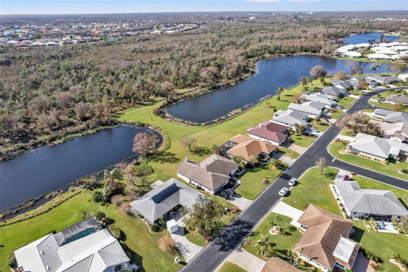 One or more photo(s) has been virtually staged. If you are looking for a home with an amazing backyard WATERFRONT LAKE VIEW, this one is a must see! NEW HURRICANE IMPACT WINDOWS were installed in 2022 and the roof was replaced in 2018 to add to your piece of mind. NEW wood look plank tile flooring was just installed that flows through the living, dining, kitchen, guest bath and primary bedroom so NO CARPET. The desirable split bedroom floor plan will provide the privacy for everyone to have their own space. Enjoy your morning coffee on the 10 x 18 back enclosed lanai while looking out onto the tranquil water view with nature on full display! The kitchen features granite countertops and a breakfast nook that opens onto the enclosed lanai. Nice sized 22 x 23 deep garage to provide the extra storage or workbench space. The backyard boasts a large paver patio overlooking the lake, the perfect place to host gatherings for friends and family. The location of the home is so convenient to all your needs and wants. The LOW HOA FEES include the community pool, fitness center and tennis courts. UNDER 6 MILES to everything including the beautiful beaches along the Gulf of Mexico, Historic Venice Downtown with many little boutique shops, restaurants and the Venice Performing Arts Theatre, and the new upcoming Wellen Park with concerts and community activities. Spend the day golfing, fishing, boating, or relaxing in the community pool, then head out to the many shopping and dining options just a short drive away. Everything is so close but yet you feel a world away in this tranquil spot for your own piece of paradise. NO HURRICANE DAMAGE!