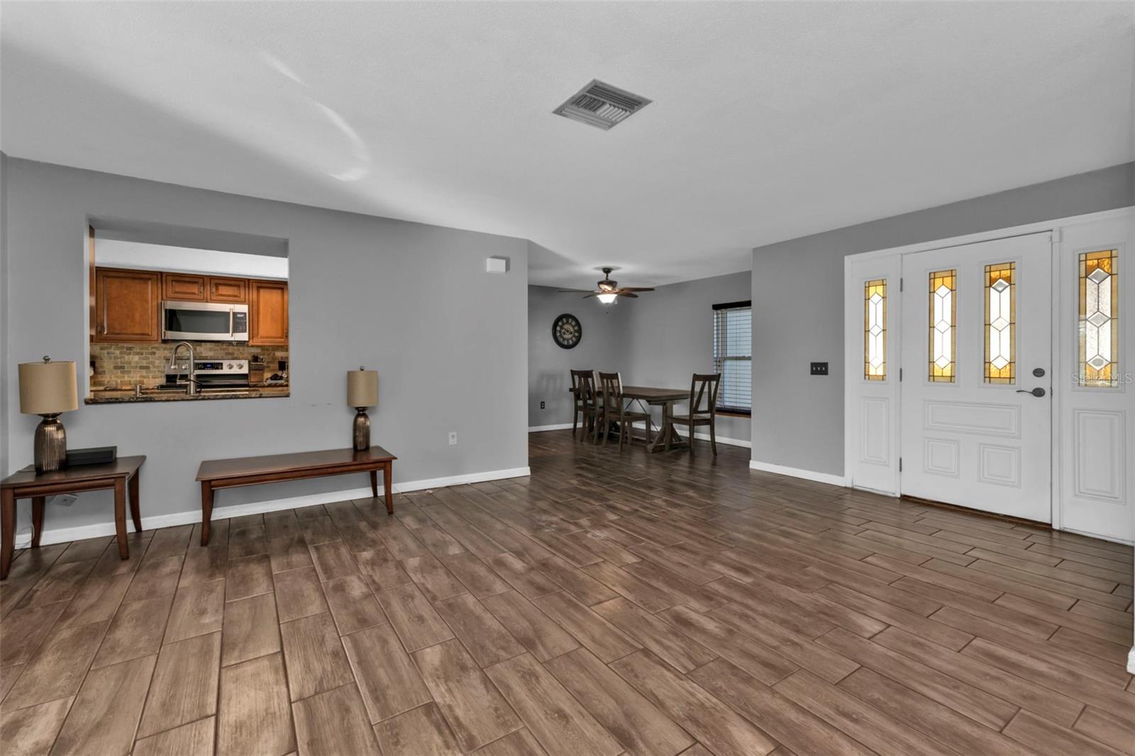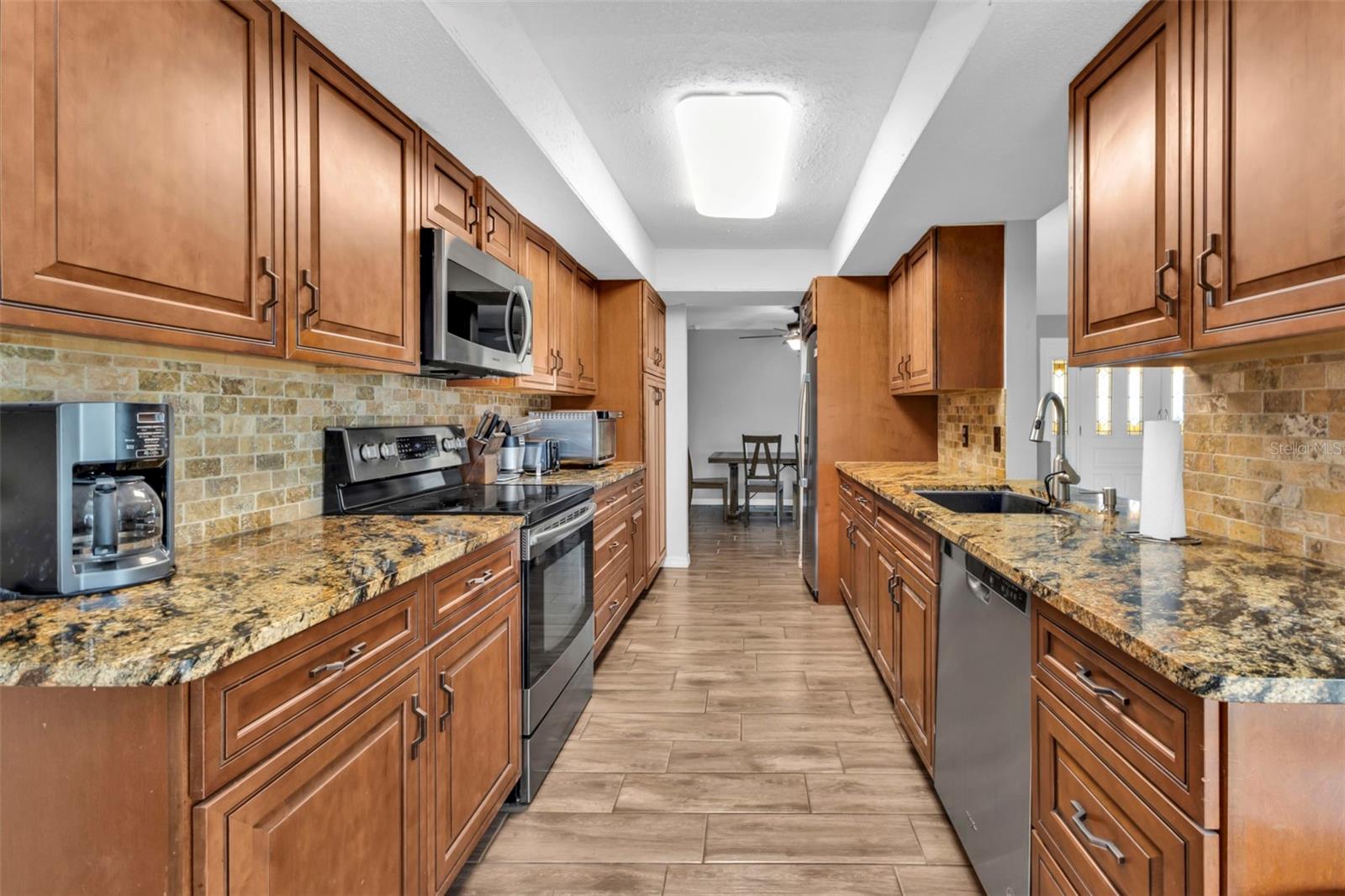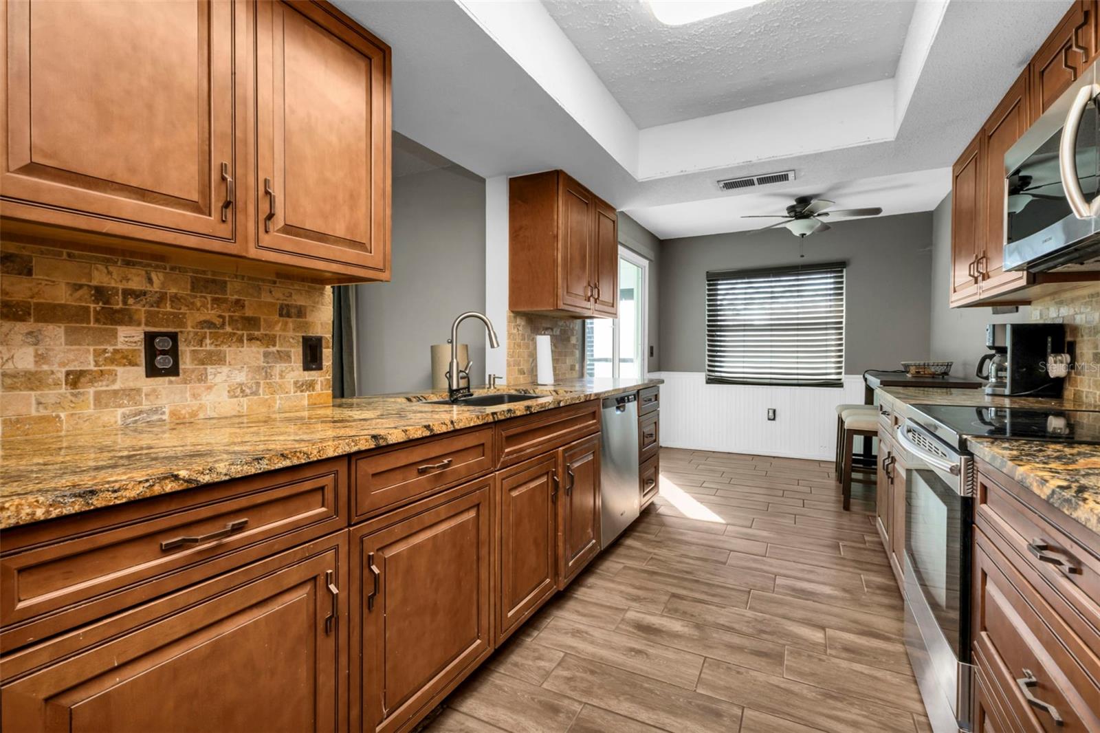 One or more photo(s) has been virtually staged. If you are looking for a home with an amazing backyard WATERFRONT LAKE VIEW, this one is a must see! NEW HURRICANE IMPACT WINDOWS were installed in 2022 and the roof was replaced in 2018 to add to your piece of mind. NEW wood look plank tile flooring was just installed that flows through the living, dining, kitchen, guest bath and primary bedroom so NO CARPET. The desirable split bedroom floor plan will provide the privacy for everyone to have their own space. Enjoy your morning coffee on the 10 x 18 back enclosed lanai while looking out onto the tranquil water view with nature on full display! The kitchen features granite countertops and a breakfast nook that opens onto the enclosed lanai. Nice sized 22 x 23 deep garage to provide the extra storage or workbench space. The backyard boasts a large paver patio overlooking the lake, the perfect place to host gatherings for friends and family. The location of the home is so convenient to all your needs and wants. The LOW HOA FEES include the community pool, fitness center and tennis courts. UNDER 6 MILES to everything including the beautiful beaches along the Gulf of Mexico, Historic Venice Downtown with many little boutique shops, restaurants and the Venice Performing Arts Theatre, and the new upcoming Wellen Park with concerts and community activities. Spend the day golfing, fishing, boating, or relaxing in the community pool, then head out to the many shopping and dining options just a short drive away. Everything is so close but yet you feel a world away in this tranquil spot for your own piece of paradise. NO HURRICANE DAMAGE!