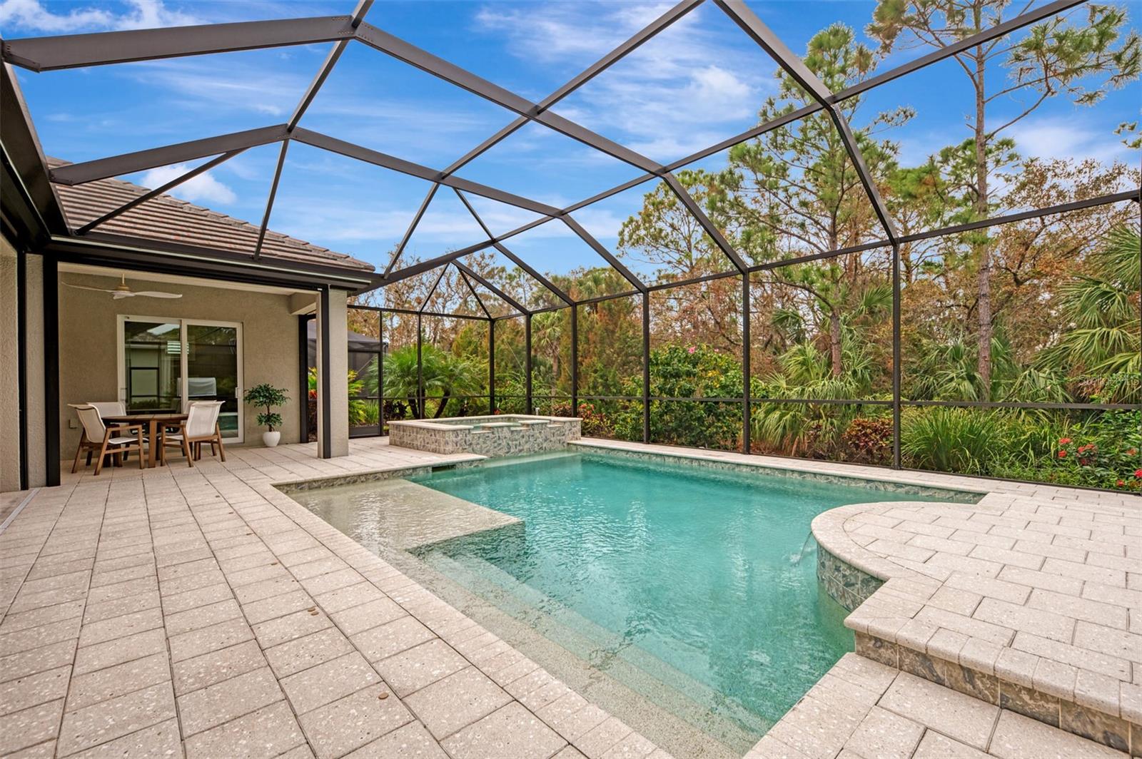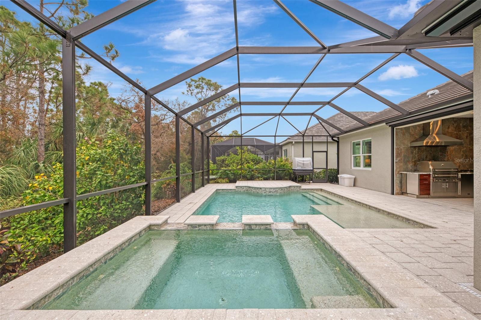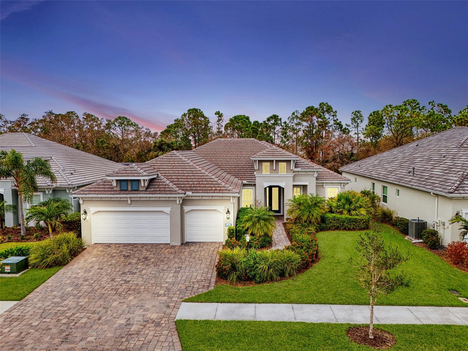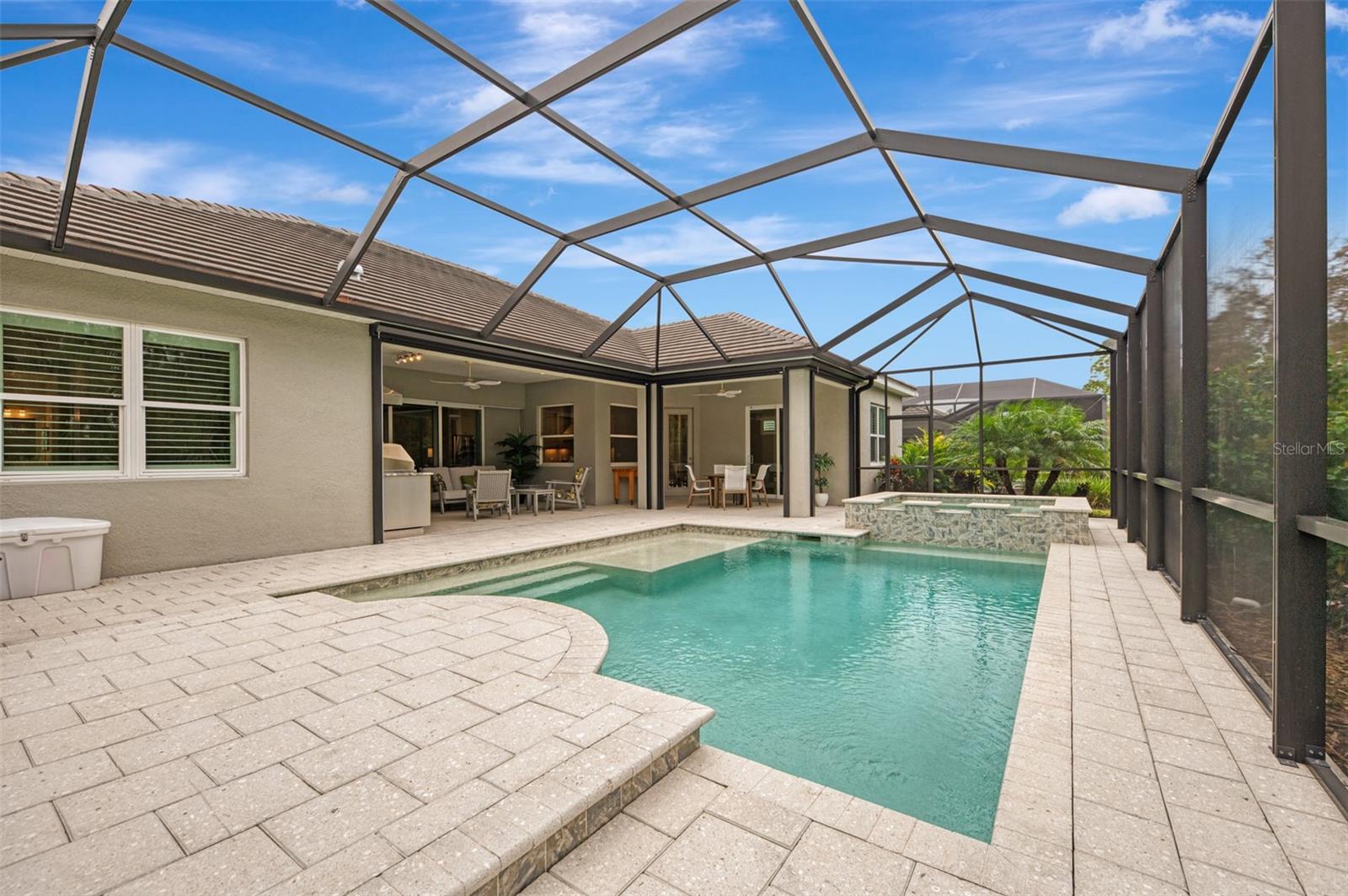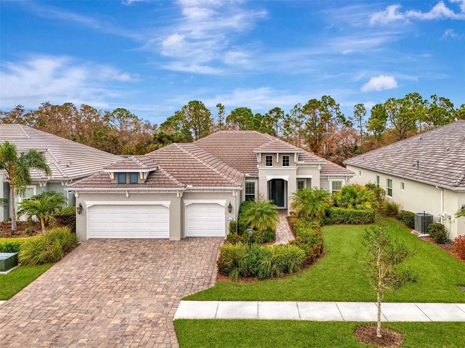 This is the house you have been waiting for in Grand Palm! Built in 2020, this nearly New Sanibel model offers a split floor plan with an open concept living area, impact windows and doors, high ceilings, real wood plantation shutters and designer wood look tile floors throughout. Add to your culinary adventures with ease in your chef’s kitchen that includes upgraded GE Cafe Stainless Steel appliances; gas cooktop, built-in double oven with convection, double stacked custom cabinets and matching range hood that vents outside, elegant natural Quartzite Stone countertops, shiny gray Ceramic Backsplash and a Composite Sink. The walk-in pantry provides a place for all your kitchen essentials with real wood shelving. Steps away, enjoy your perfectly prepared meal in your oversized dining room open to the Great Room, over looking the lanai. Pocket sliding glass doors lead out to the covered, screened lanai with electric roll down, hurricane protection, wifi operational! This exquisite heated salt water pool with raised spa is certainly a WOW factor! Custom built and designed with water features and sun shelf surrounded by Shelllock Pavers. The lanai features a high end Natural Gas Kalamazoo, Automatic Feed Kalamazoo Gourmet Smoker, a Kalamazoo Outdoor Beverage Center Refrigerator, Stainless Steel Ventilation Hood, Tilt Backsplash and Solid Stone Countertop. A full pool bath, with enclosed glass shower with tile to the ceiling, accessible from the lanai is steps away! The spacious master suite, situated towards the back of your home, gives you maximum peace and privacy. Double master closets, complete with custom closet organizers, provide easy storage for all your warm weather clothing. The spa like master bath is adored with an over sized, full glass enclosed walk-in shower, a relaxing garden tub surrounded by accent tile, dual vanities and a private toilet room. Guests can enjoy their stay in one of two bedrooms located in the guest wing with the second bathroom between. Need a little more space? The french door, enclosed Club Room has many useful options with a sliding glass door leading out to the extended covered lanai. Make it your home office, a quiet sitting room or can double as an extra bedroom. You will want to write home about this custom built and designed laundry room! The LG front loading washer and gas dryer are built in with Quartzite countertop, a Composite sink and 42” upper cabinets. This Sanibel offers a 3 car garage with a 4’ extension and full coverage epoxy flooring. Plenty of room to house your vehicles and golf cart with additional overhead storage space . Throughout the home you will find 8’ interior doors and upgraded base boards. Patio furniture, Kitchen Bar Stools and secondary bedroom set are included! Take advantage of the resort style heated pools, participate in social gatherings, pickle ball, tennis, bocce ball and a fitness center right in the community with no additional fees. Want to enjoy the Gulf beaches? Venice Beach is less than 20 minutes away! Come live the Florida dream. Schedule your showing today!