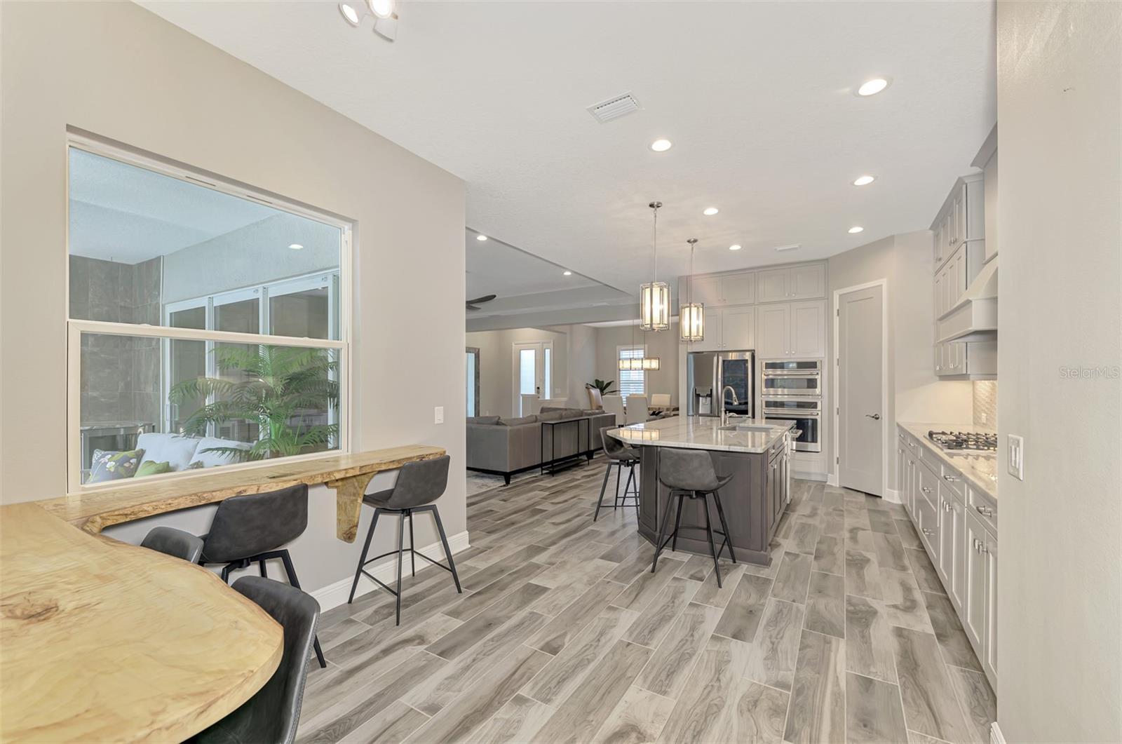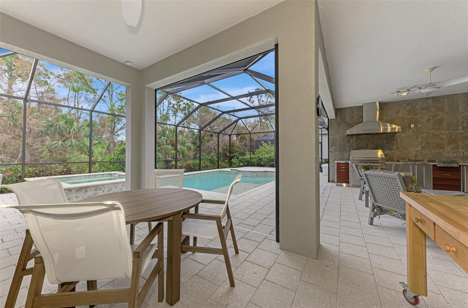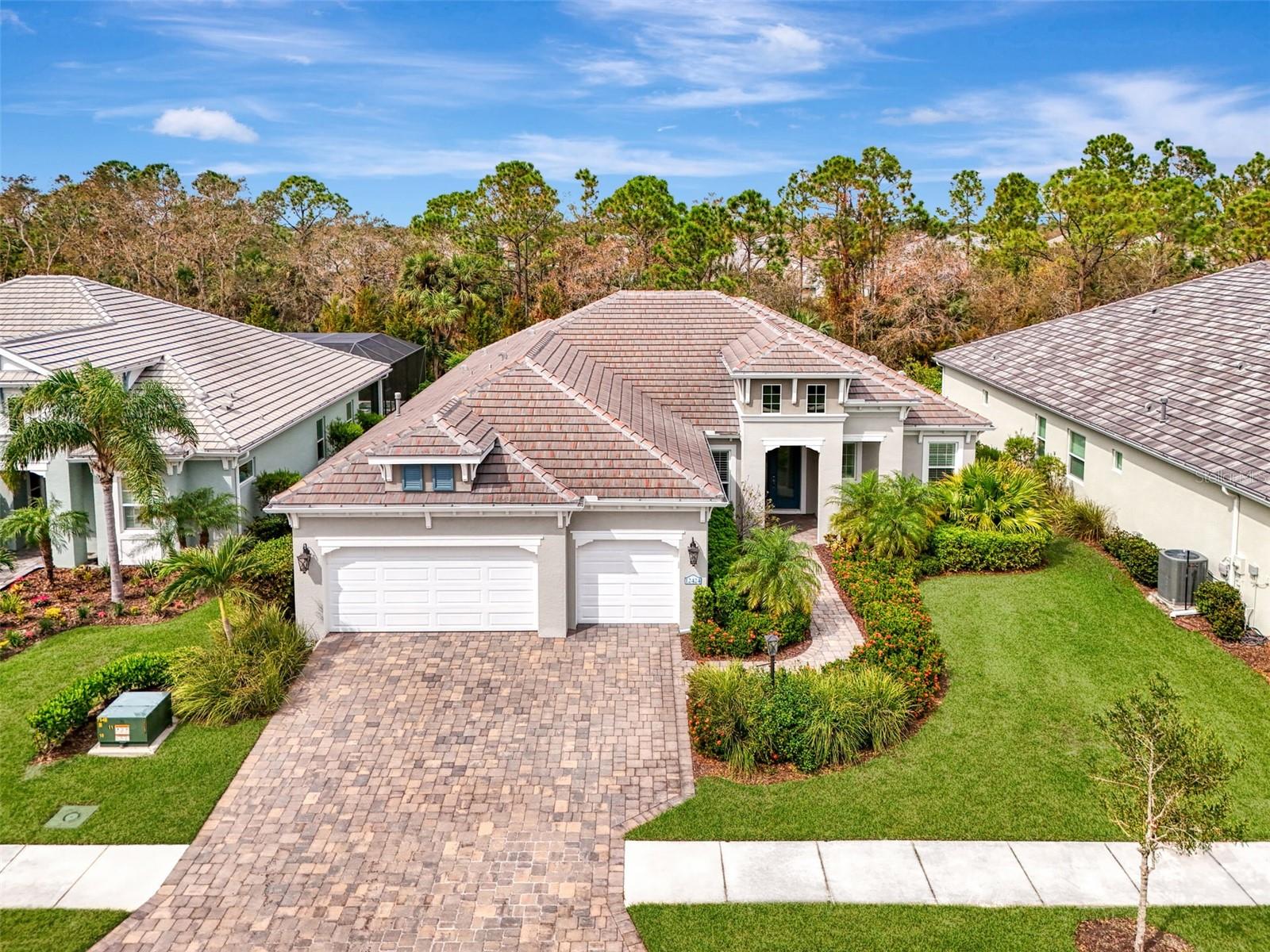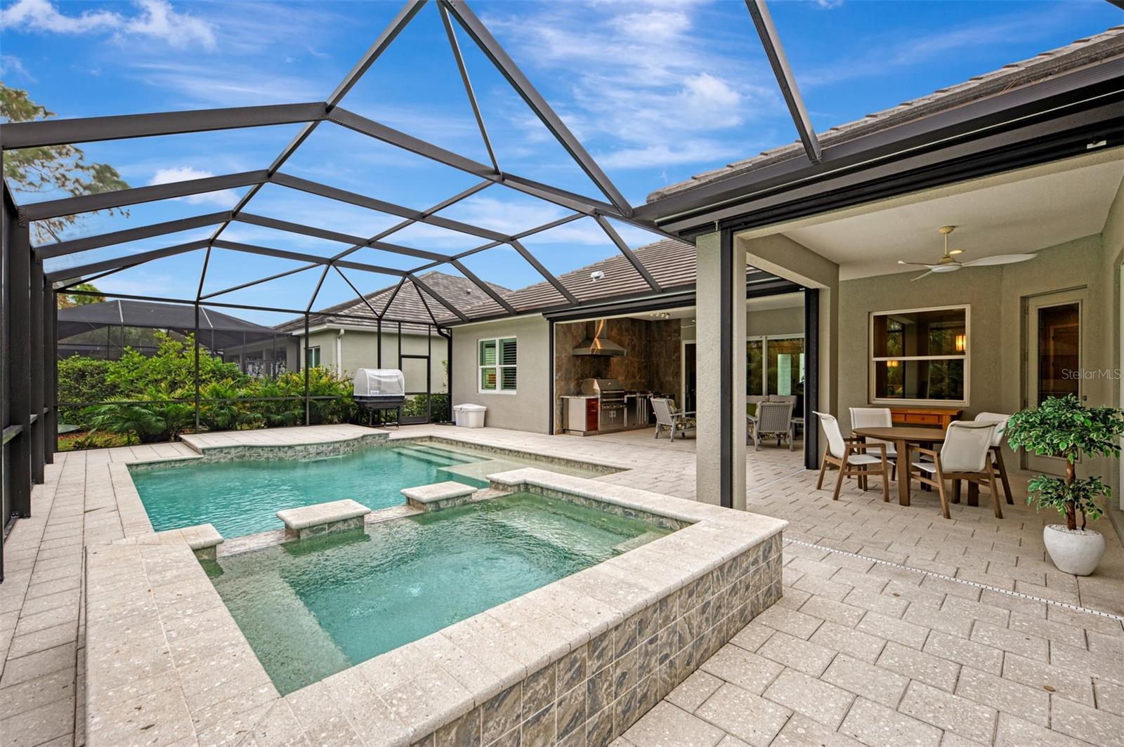 This is the house you have been waiting for in Grand Palm! Built in 2020, this nearly New Sanibel model offers a split floor plan with an open concept living area, impact windows and doors, high ceilings, real wood plantation shutters and designer wood look tile floors throughout. Add to your culinary adventures with ease in your chef’s kitchen that includes upgraded GE Cafe Stainless Steel appliances; gas cooktop, built-in double oven with convection, double stacked custom cabinets and matching range hood that vents outside, elegant natural Quartzite Stone countertops, shiny gray Ceramic Backsplash and a Composite Sink. The walk-in pantry provides a place for all your kitchen essentials with real wood shelving. Steps away, enjoy your perfectly prepared meal in your oversized dining room open to the Great Room, over looking the lanai. Pocket sliding glass doors lead out to the covered, screened lanai with electric roll down, hurricane protection, wifi operational! This exquisite heated salt water pool with raised spa is certainly a WOW factor! Custom built and designed with water features and sun shelf surrounded by Shelllock Pavers. The lanai features a high end Natural Gas Kalamazoo, Automatic Feed Kalamazoo Gourmet Smoker, a Kalamazoo Outdoor Beverage Center Refrigerator, Stainless Steel Ventilation Hood, Tilt Backsplash and Solid Stone Countertop. A full pool bath, with enclosed glass shower with tile to the ceiling, accessible from the lanai is steps away! The spacious master suite, situated towards the back of your home, gives you maximum peace and privacy. Double master closets, complete with custom closet organizers, provide easy storage for all your warm weather clothing. The spa like master bath is adored with an over sized, full glass enclosed walk-in shower, a relaxing garden tub surrounded by accent tile, dual vanities and a private toilet room. Guests can enjoy their stay in one of two bedrooms located in the guest wing with the second bathroom between. Need a little more space? The french door, enclosed Club Room has many useful options with a sliding glass door leading out to the extended covered lanai. Make it your home office, a quiet sitting room or can double as an extra bedroom. You will want to write home about this custom built and designed laundry room! The LG front loading washer and gas dryer are built in with Quartzite countertop, a Composite sink and 42” upper cabinets. This Sanibel offers a 3 car garage with a 4’ extension and full coverage epoxy flooring. Plenty of room to house your vehicles and golf cart with additional overhead storage space . Throughout the home you will find 8’ interior doors and upgraded base boards. Patio furniture, Kitchen Bar Stools and secondary bedroom set are included! Take advantage of the resort style heated pools, participate in social gatherings, pickle ball, tennis, bocce ball and a fitness center right in the community with no additional fees. Want to enjoy the Gulf beaches? Venice Beach is less than 20 minutes away! Come live the Florida dream. Schedule your showing today!