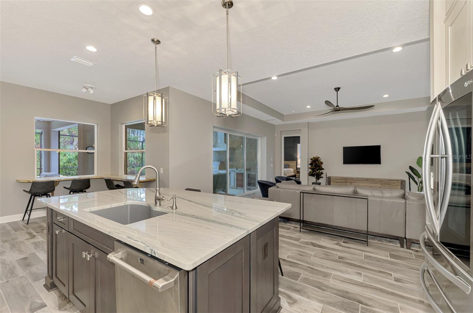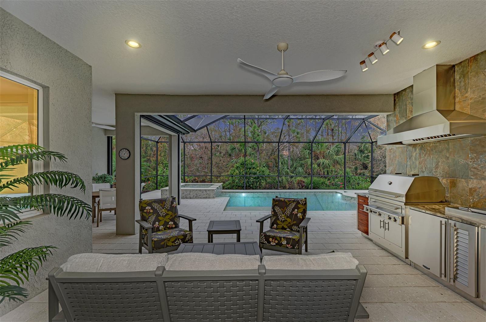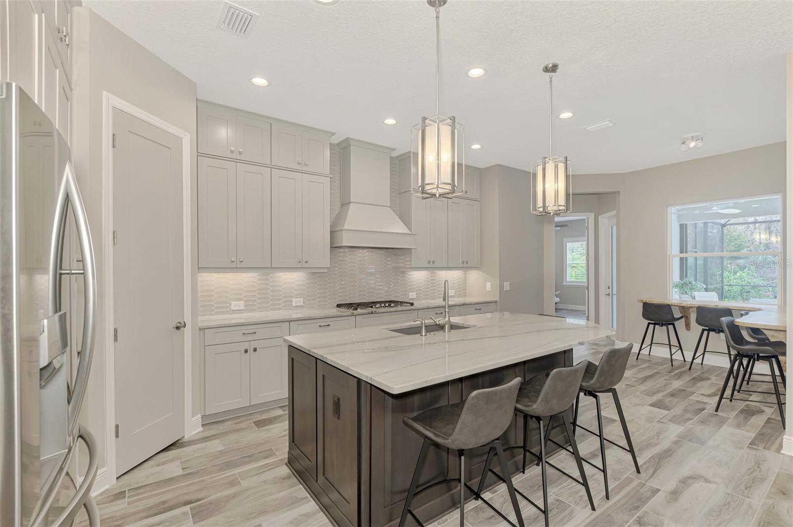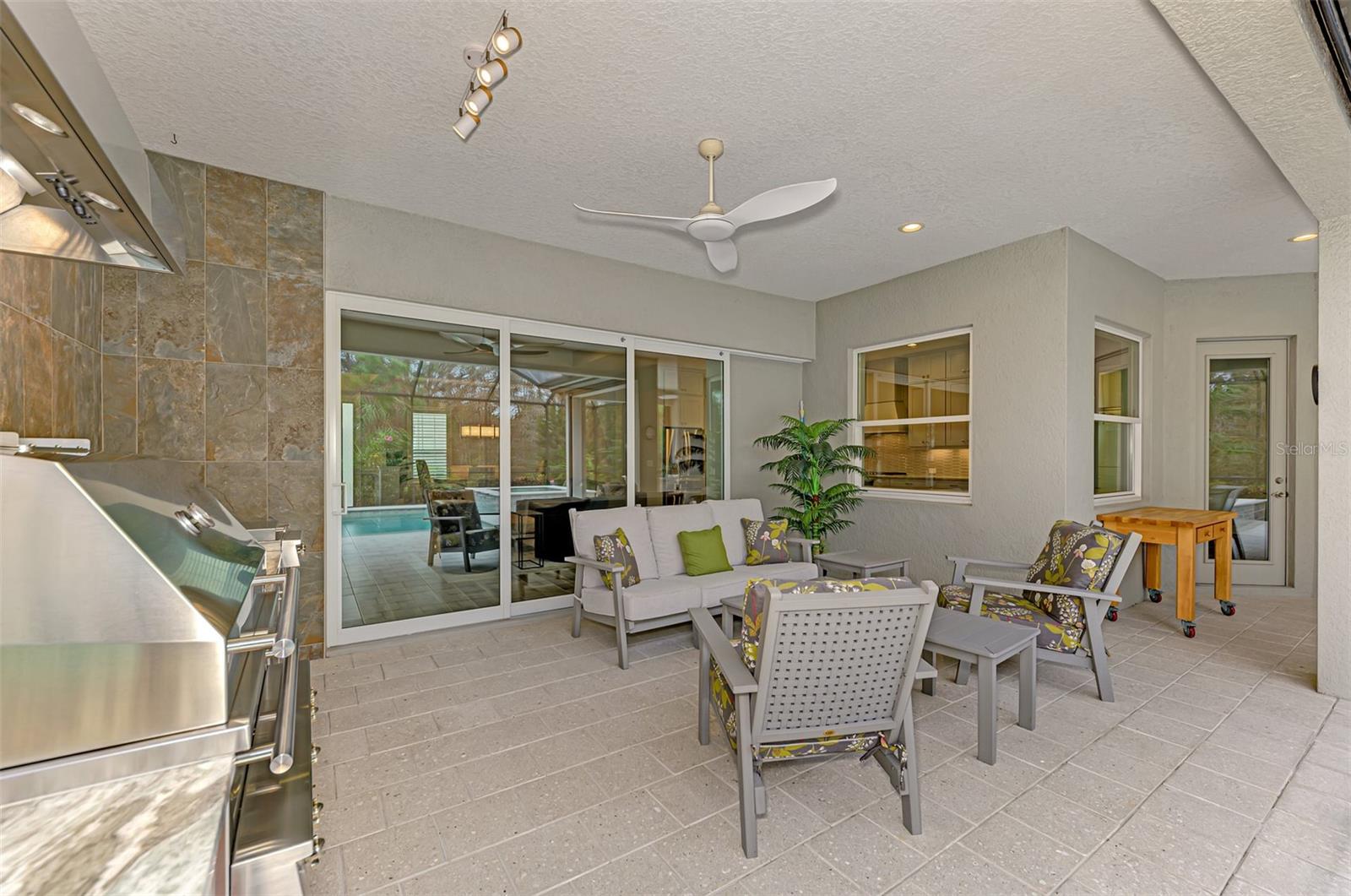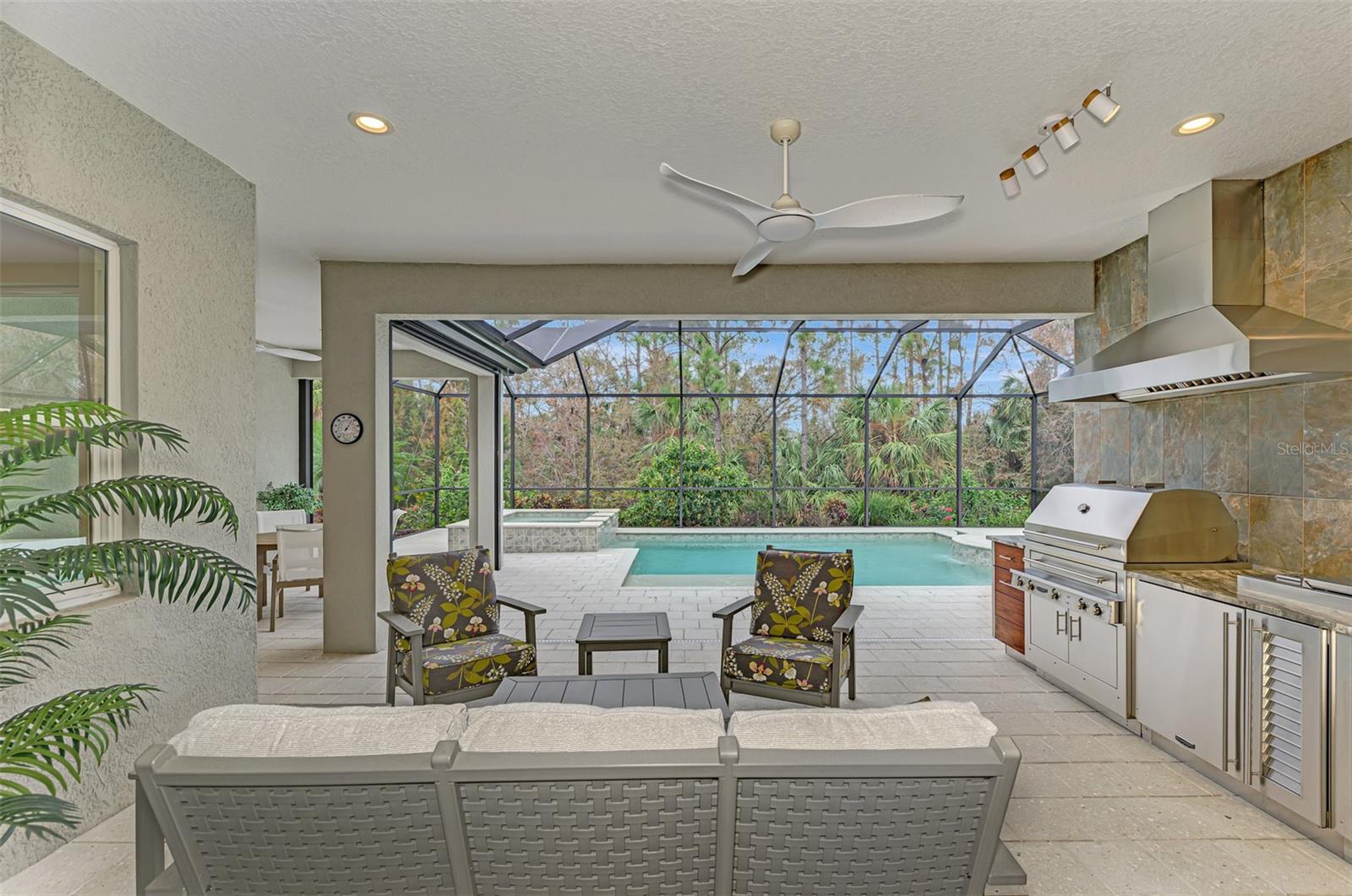 This is the house you have been waiting for in Grand Palm! Built in 2020, this nearly New Sanibel model offers a split floor plan with an open concept living area, impact windows and doors, high ceilings, real wood plantation shutters and designer wood look tile floors throughout. Add to your culinary adventures with ease in your chef’s kitchen that includes upgraded GE Cafe Stainless Steel appliances; gas cooktop, built-in double oven with convection, double stacked custom cabinets and matching range hood that vents outside, elegant natural Quartzite Stone countertops, shiny gray Ceramic Backsplash and a Composite Sink. The walk-in pantry provides a place for all your kitchen essentials with real wood shelving. Steps away, enjoy your perfectly prepared meal in your oversized dining room open to the Great Room, over looking the lanai. Pocket sliding glass doors lead out to the covered, screened lanai with electric roll down, hurricane protection, wifi operational! This exquisite heated salt water pool with raised spa is certainly a WOW factor! Custom built and designed with water features and sun shelf surrounded by Shelllock Pavers. The lanai features a high end Natural Gas Kalamazoo, Automatic Feed Kalamazoo Gourmet Smoker, a Kalamazoo Outdoor Beverage Center Refrigerator, Stainless Steel Ventilation Hood, Tilt Backsplash and Solid Stone Countertop. A full pool bath, with enclosed glass shower with tile to the ceiling, accessible from the lanai is steps away! The spacious master suite, situated towards the back of your home, gives you maximum peace and privacy. Double master closets, complete with custom closet organizers, provide easy storage for all your warm weather clothing. The spa like master bath is adored with an over sized, full glass enclosed walk-in shower, a relaxing garden tub surrounded by accent tile, dual vanities and a private toilet room. Guests can enjoy their stay in one of two bedrooms located in the guest wing with the second bathroom between. Need a little more space? The french door, enclosed Club Room has many useful options with a sliding glass door leading out to the extended covered lanai. Make it your home office, a quiet sitting room or can double as an extra bedroom. You will want to write home about this custom built and designed laundry room! The LG front loading washer and gas dryer are built in with Quartzite countertop, a Composite sink and 42” upper cabinets. This Sanibel offers a 3 car garage with a 4’ extension and full coverage epoxy flooring. Plenty of room to house your vehicles and golf cart with additional overhead storage space . Throughout the home you will find 8’ interior doors and upgraded base boards. Patio furniture, Kitchen Bar Stools and secondary bedroom set are included! Take advantage of the resort style heated pools, participate in social gatherings, pickle ball, tennis, bocce ball and a fitness center right in the community with no additional fees. Want to enjoy the Gulf beaches? Venice Beach is less than 20 minutes away! Come live the Florida dream. Schedule your showing today!