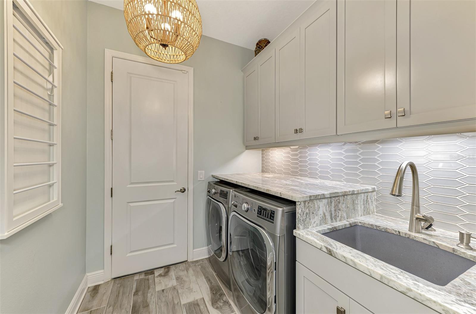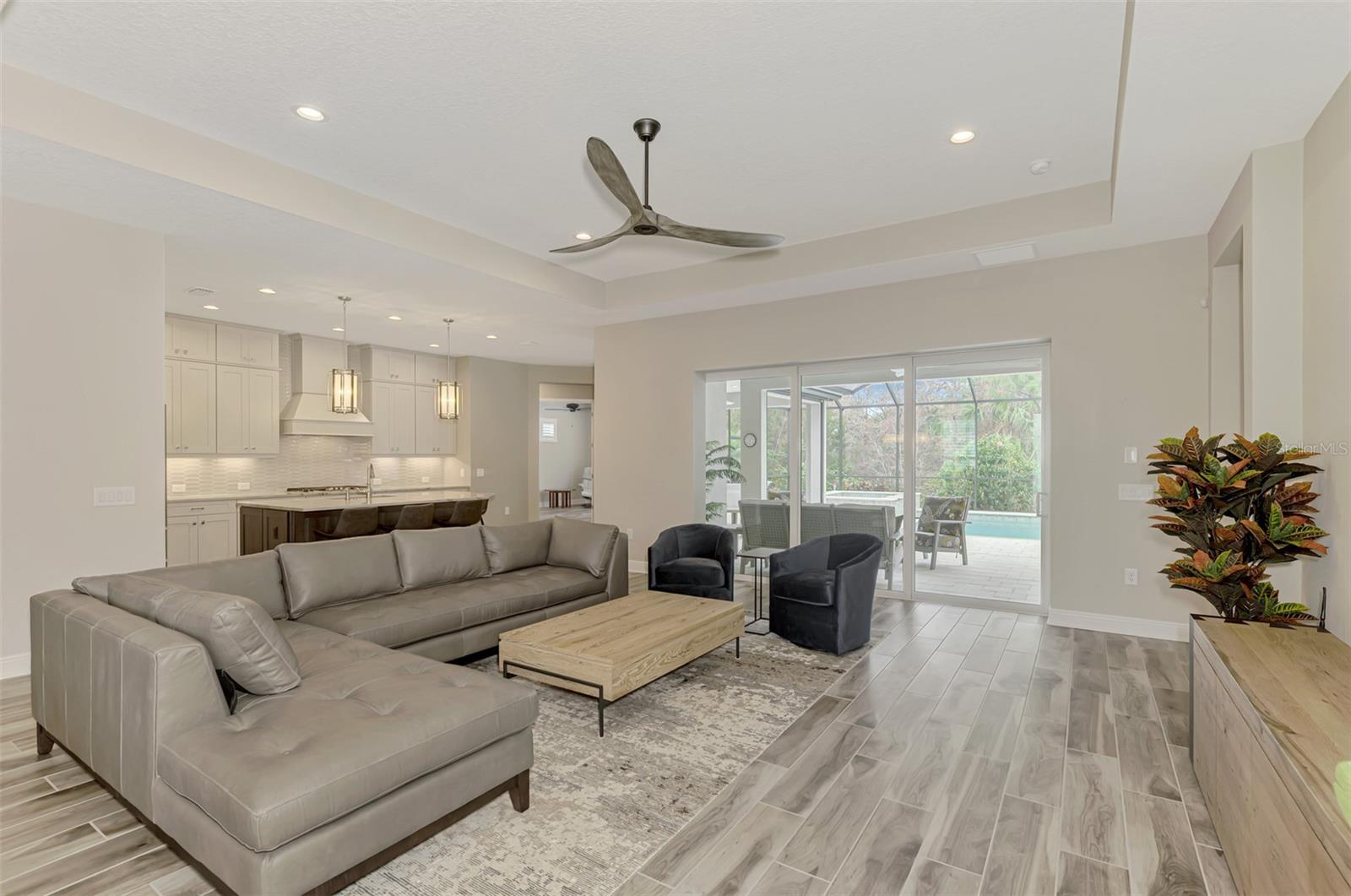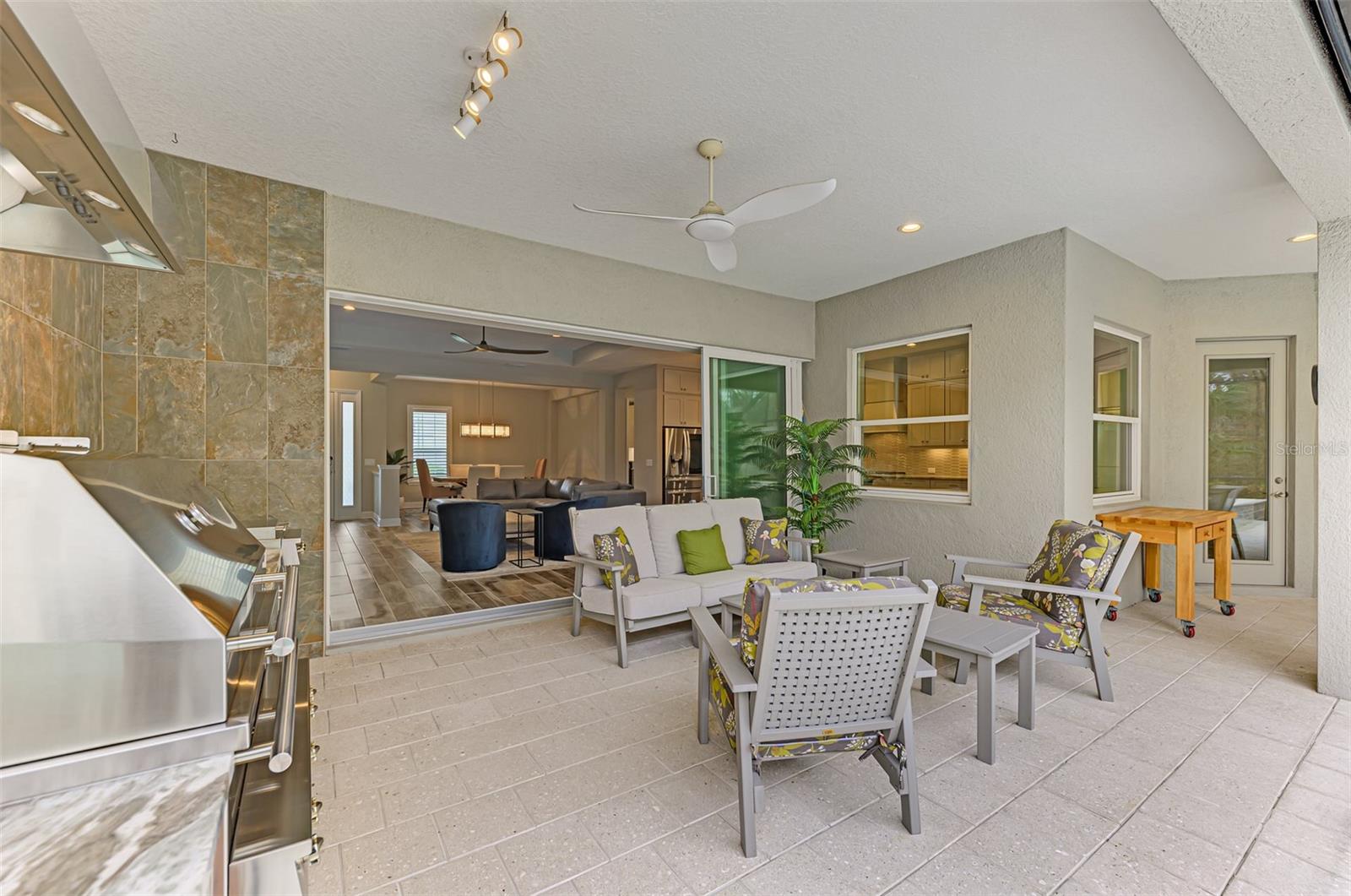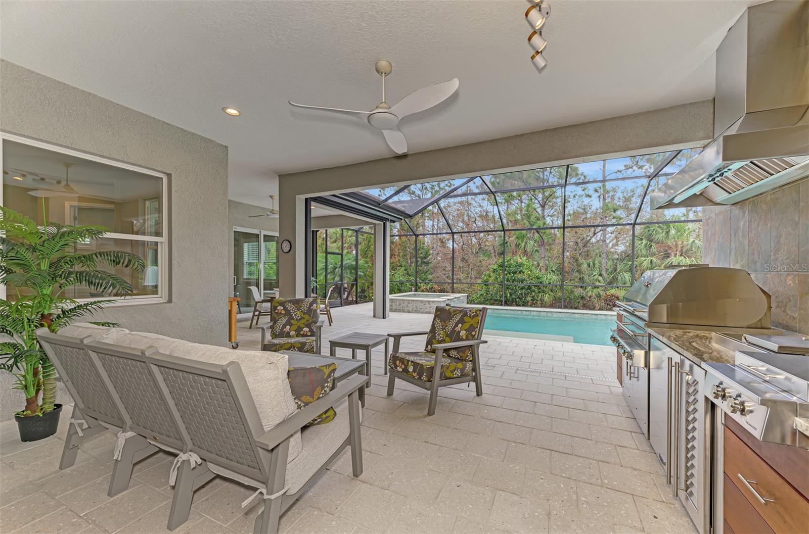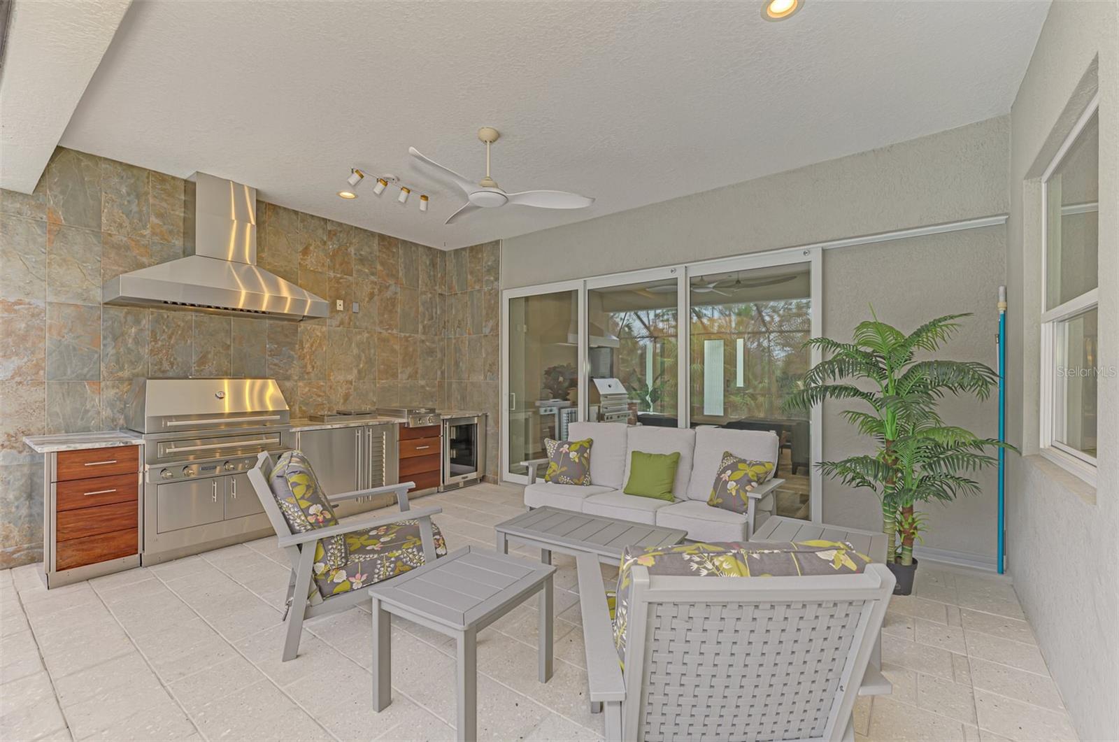 This is the house you have been waiting for in Grand Palm! Built in 2020, this nearly New Sanibel model offers a split floor plan with an open concept living area, impact windows and doors, high ceilings, real wood plantation shutters and designer wood look tile floors throughout. Add to your culinary adventures with ease in your chef’s kitchen that includes upgraded GE Cafe Stainless Steel appliances; gas cooktop, built-in double oven with convection, double stacked custom cabinets and matching range hood that vents outside, elegant natural Quartzite Stone countertops, shiny gray Ceramic Backsplash and a Composite Sink. The walk-in pantry provides a place for all your kitchen essentials with real wood shelving. Steps away, enjoy your perfectly prepared meal in your oversized dining room open to the Great Room, over looking the lanai. Pocket sliding glass doors lead out to the covered, screened lanai with electric roll down, hurricane protection, wifi operational! This exquisite heated salt water pool with raised spa is certainly a WOW factor! Custom built and designed with water features and sun shelf surrounded by Shelllock Pavers. The lanai features a high end Natural Gas Kalamazoo, Automatic Feed Kalamazoo Gourmet Smoker, a Kalamazoo Outdoor Beverage Center Refrigerator, Stainless Steel Ventilation Hood, Tilt Backsplash and Solid Stone Countertop. A full pool bath, with enclosed glass shower with tile to the ceiling, accessible from the lanai is steps away! The spacious master suite, situated towards the back of your home, gives you maximum peace and privacy. Double master closets, complete with custom closet organizers, provide easy storage for all your warm weather clothing. The spa like master bath is adored with an over sized, full glass enclosed walk-in shower, a relaxing garden tub surrounded by accent tile, dual vanities and a private toilet room. Guests can enjoy their stay in one of two bedrooms located in the guest wing with the second bathroom between. Need a little more space? The french door, enclosed Club Room has many useful options with a sliding glass door leading out to the extended covered lanai. Make it your home office, a quiet sitting room or can double as an extra bedroom. You will want to write home about this custom built and designed laundry room! The LG front loading washer and gas dryer are built in with Quartzite countertop, a Composite sink and 42” upper cabinets. This Sanibel offers a 3 car garage with a 4’ extension and full coverage epoxy flooring. Plenty of room to house your vehicles and golf cart with additional overhead storage space . Throughout the home you will find 8’ interior doors and upgraded base boards. Patio furniture, Kitchen Bar Stools and secondary bedroom set are included! Take advantage of the resort style heated pools, participate in social gatherings, pickle ball, tennis, bocce ball and a fitness center right in the community with no additional fees. Want to enjoy the Gulf beaches? Venice Beach is less than 20 minutes away! Come live the Florida dream. Schedule your showing today!