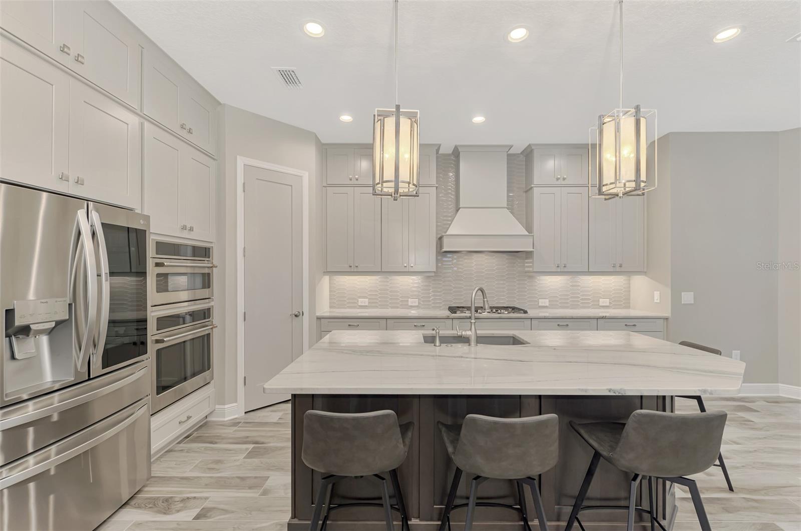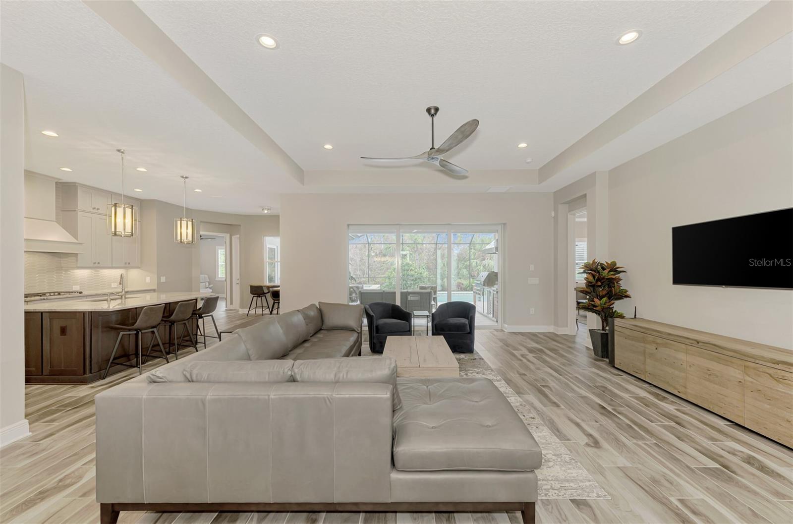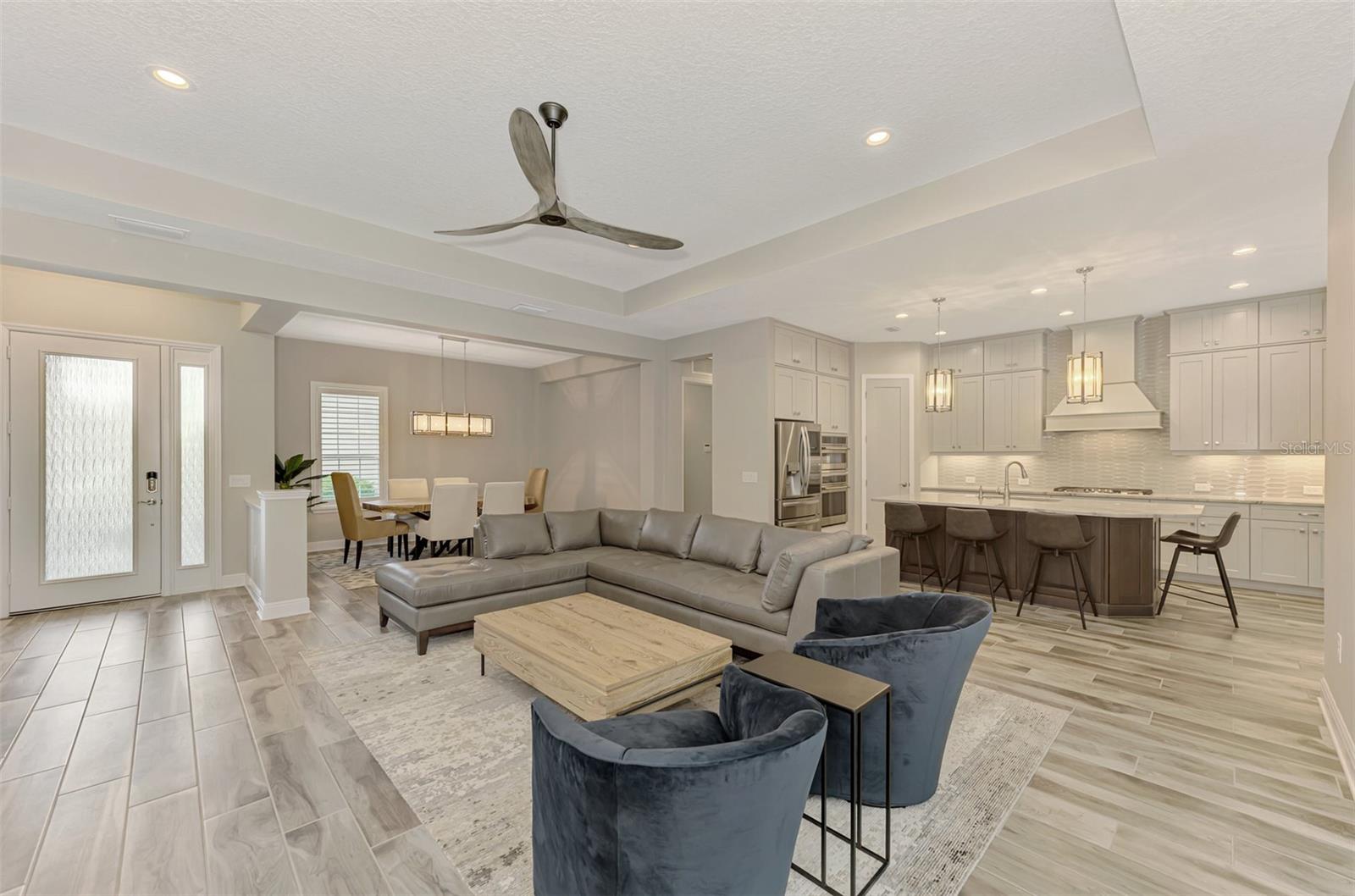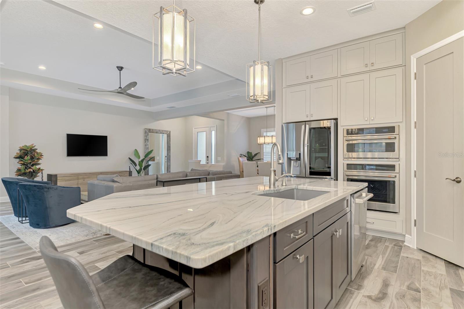 This is the house you have been waiting for in Grand Palm! Built in 2020, this nearly New Sanibel model offers a split floor plan with an open concept living area, impact windows and doors, high ceilings, real wood plantation shutters and designer wood look tile floors throughout. Add to your culinary adventures with ease in your chef’s kitchen that includes upgraded GE Cafe Stainless Steel appliances; gas cooktop, built-in double oven with convection, double stacked custom cabinets and matching range hood that vents outside, elegant natural Quartzite Stone countertops, shiny gray Ceramic Backsplash and a Composite Sink. The walk-in pantry provides a place for all your kitchen essentials with real wood shelving. Steps away, enjoy your perfectly prepared meal in your oversized dining room open to the Great Room, over looking the lanai. Pocket sliding glass doors lead out to the covered, screened lanai with electric roll down, hurricane protection, wifi operational! This exquisite heated salt water pool with raised spa is certainly a WOW factor! Custom built and designed with water features and sun shelf surrounded by Shelllock Pavers. The lanai features a high end Natural Gas Kalamazoo, Automatic Feed Kalamazoo Gourmet Smoker, a Kalamazoo Outdoor Beverage Center Refrigerator, Stainless Steel Ventilation Hood, Tilt Backsplash and Solid Stone Countertop. A full pool bath, with enclosed glass shower with tile to the ceiling, accessible from the lanai is steps away! The spacious master suite, situated towards the back of your home, gives you maximum peace and privacy. Double master closets, complete with custom closet organizers, provide easy storage for all your warm weather clothing. The spa like master bath is adored with an over sized, full glass enclosed walk-in shower, a relaxing garden tub surrounded by accent tile, dual vanities and a private toilet room. Guests can enjoy their stay in one of two bedrooms located in the guest wing with the second bathroom between. Need a little more space? The french door, enclosed Club Room has many useful options with a sliding glass door leading out to the extended covered lanai. Make it your home office, a quiet sitting room or can double as an extra bedroom. You will want to write home about this custom built and designed laundry room! The LG front loading washer and gas dryer are built in with Quartzite countertop, a Composite sink and 42” upper cabinets. This Sanibel offers a 3 car garage with a 4’ extension and full coverage epoxy flooring. Plenty of room to house your vehicles and golf cart with additional overhead storage space . Throughout the home you will find 8’ interior doors and upgraded base boards. Patio furniture, Kitchen Bar Stools and secondary bedroom set are included! Take advantage of the resort style heated pools, participate in social gatherings, pickle ball, tennis, bocce ball and a fitness center right in the community with no additional fees. Want to enjoy the Gulf beaches? Venice Beach is less than 20 minutes away! Come live the Florida dream. Schedule your showing today!