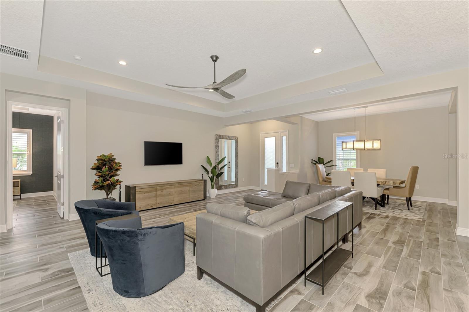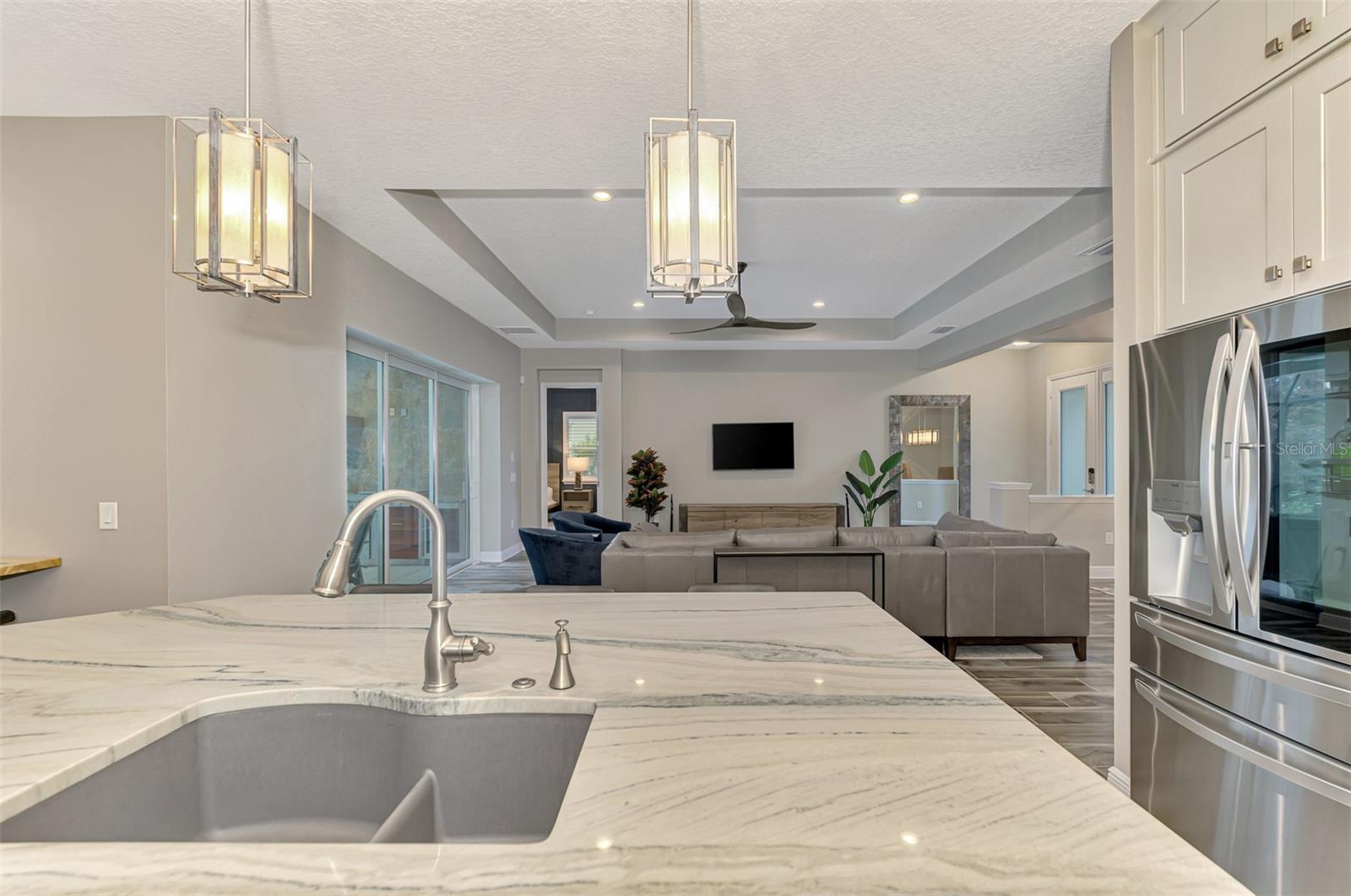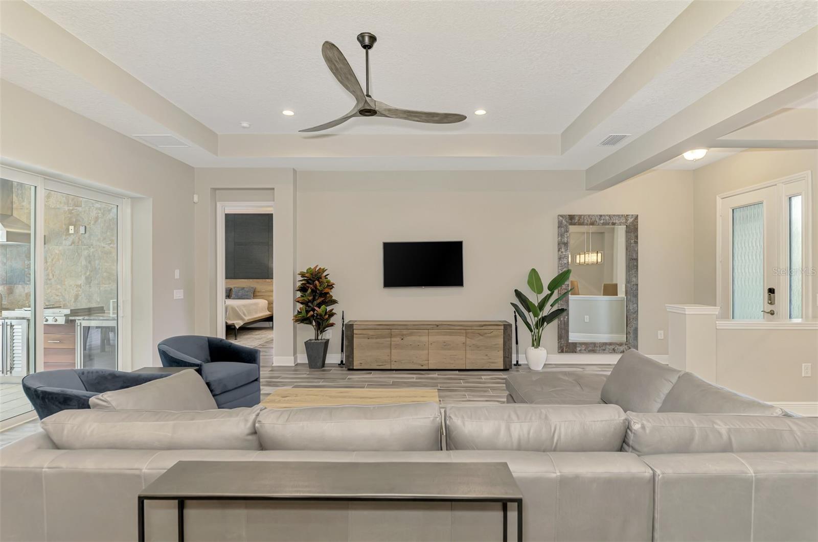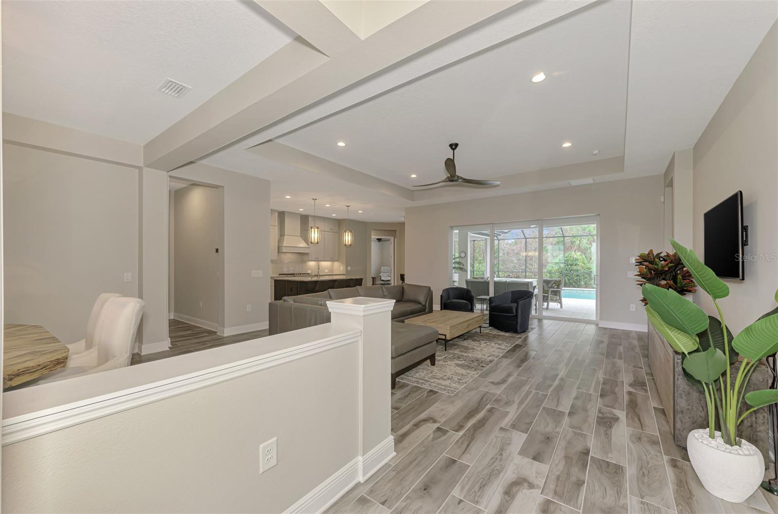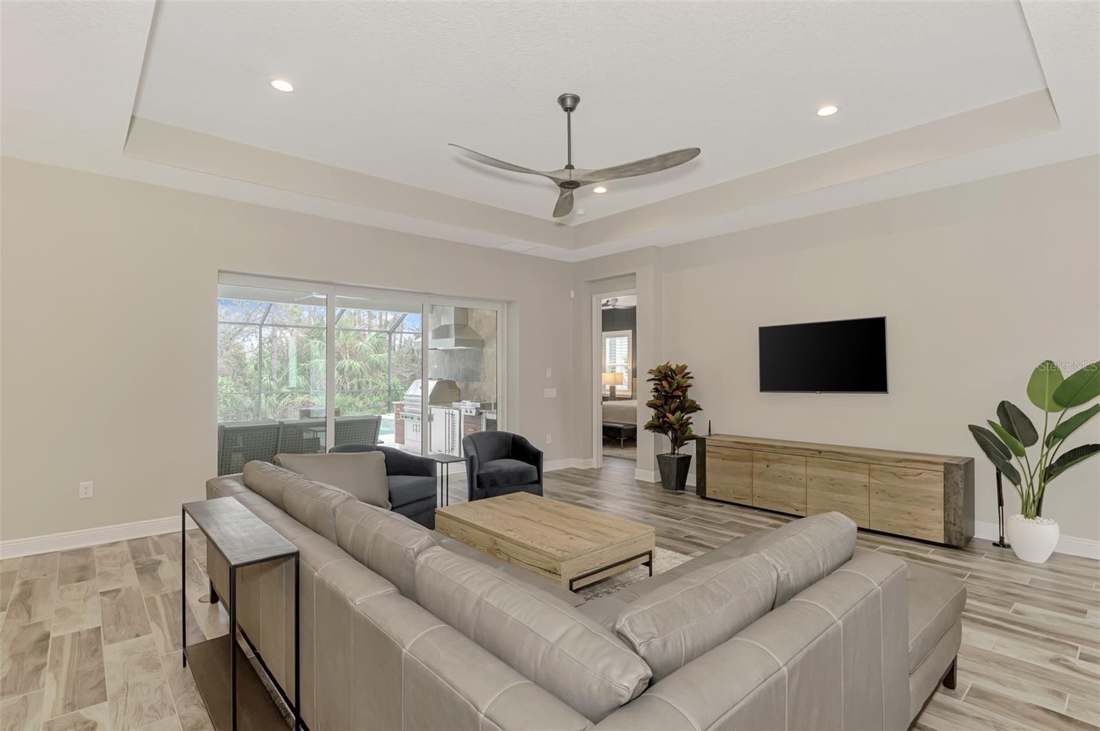 This is the house you have been waiting for in Grand Palm! Built in 2020, this nearly New Sanibel model offers a split floor plan with an open concept living area, impact windows and doors, high ceilings, real wood plantation shutters and designer wood look tile floors throughout. Add to your culinary adventures with ease in your chef’s kitchen that includes upgraded GE Cafe Stainless Steel appliances; gas cooktop, built-in double oven with convection, double stacked custom cabinets and matching range hood that vents outside, elegant natural Quartzite Stone countertops, shiny gray Ceramic Backsplash and a Composite Sink. The walk-in pantry provides a place for all your kitchen essentials with real wood shelving. Steps away, enjoy your perfectly prepared meal in your oversized dining room open to the Great Room, over looking the lanai. Pocket sliding glass doors lead out to the covered, screened lanai with electric roll down, hurricane protection, wifi operational! This exquisite heated salt water pool with raised spa is certainly a WOW factor! Custom built and designed with water features and sun shelf surrounded by Shelllock Pavers. The lanai features a high end Natural Gas Kalamazoo, Automatic Feed Kalamazoo Gourmet Smoker, a Kalamazoo Outdoor Beverage Center Refrigerator, Stainless Steel Ventilation Hood, Tilt Backsplash and Solid Stone Countertop. A full pool bath, with enclosed glass shower with tile to the ceiling, accessible from the lanai is steps away! The spacious master suite, situated towards the back of your home, gives you maximum peace and privacy. Double master closets, complete with custom closet organizers, provide easy storage for all your warm weather clothing. The spa like master bath is adored with an over sized, full glass enclosed walk-in shower, a relaxing garden tub surrounded by accent tile, dual vanities and a private toilet room. Guests can enjoy their stay in one of two bedrooms located in the guest wing with the second bathroom between. Need a little more space? The french door, enclosed Club Room has many useful options with a sliding glass door leading out to the extended covered lanai. Make it your home office, a quiet sitting room or can double as an extra bedroom. You will want to write home about this custom built and designed laundry room! The LG front loading washer and gas dryer are built in with Quartzite countertop, a Composite sink and 42” upper cabinets. This Sanibel offers a 3 car garage with a 4’ extension and full coverage epoxy flooring. Plenty of room to house your vehicles and golf cart with additional overhead storage space . Throughout the home you will find 8’ interior doors and upgraded base boards. Patio furniture, Kitchen Bar Stools and secondary bedroom set are included! Take advantage of the resort style heated pools, participate in social gatherings, pickle ball, tennis, bocce ball and a fitness center right in the community with no additional fees. Want to enjoy the Gulf beaches? Venice Beach is less than 20 minutes away! Come live the Florida dream. Schedule your showing today!